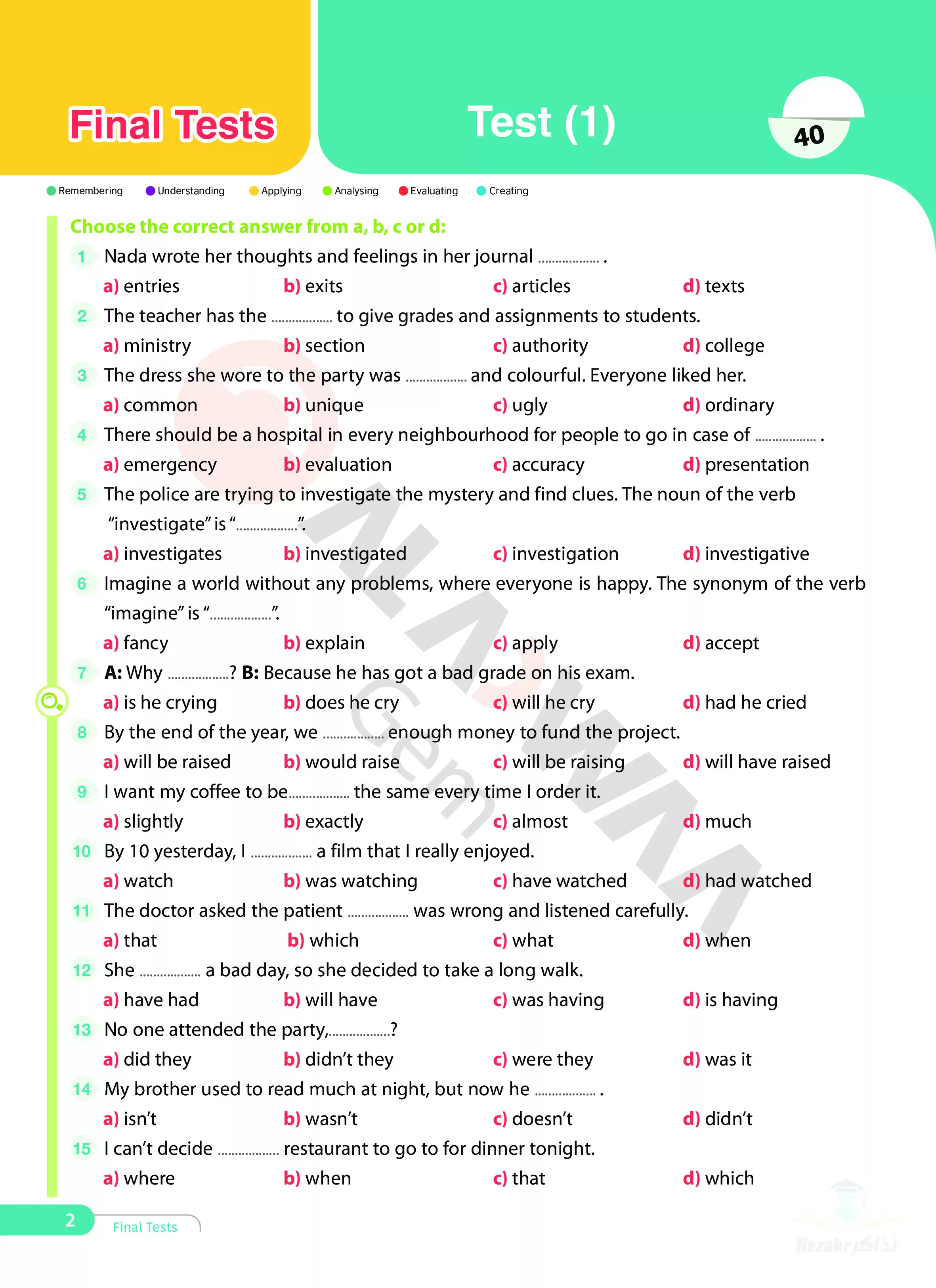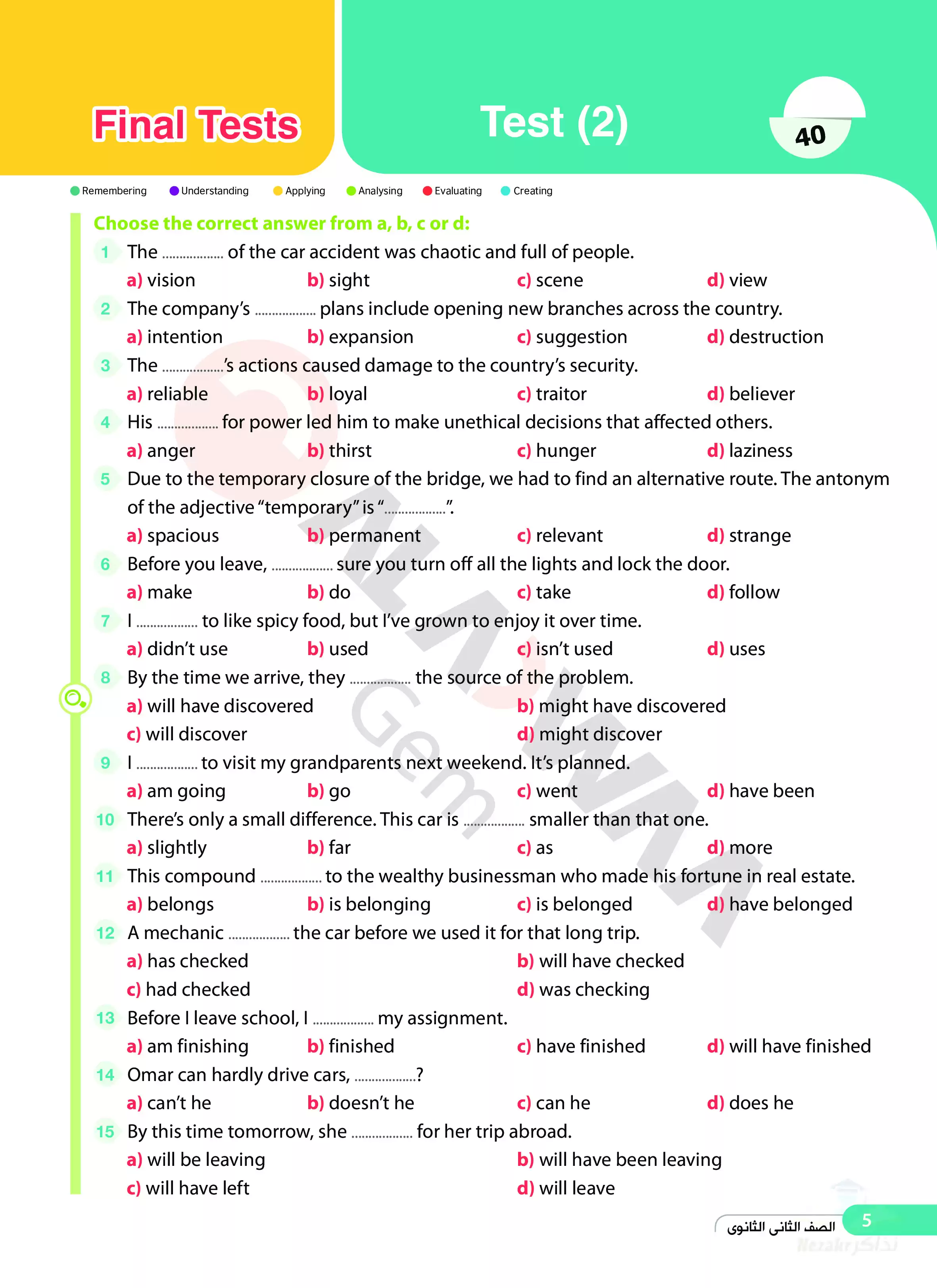 | بيانات الملف: (نماذج امتحانات اللغة الإنجليزية للصف الثاني الثانوي الترم الثاني من الأضواء - Nezakr) | |