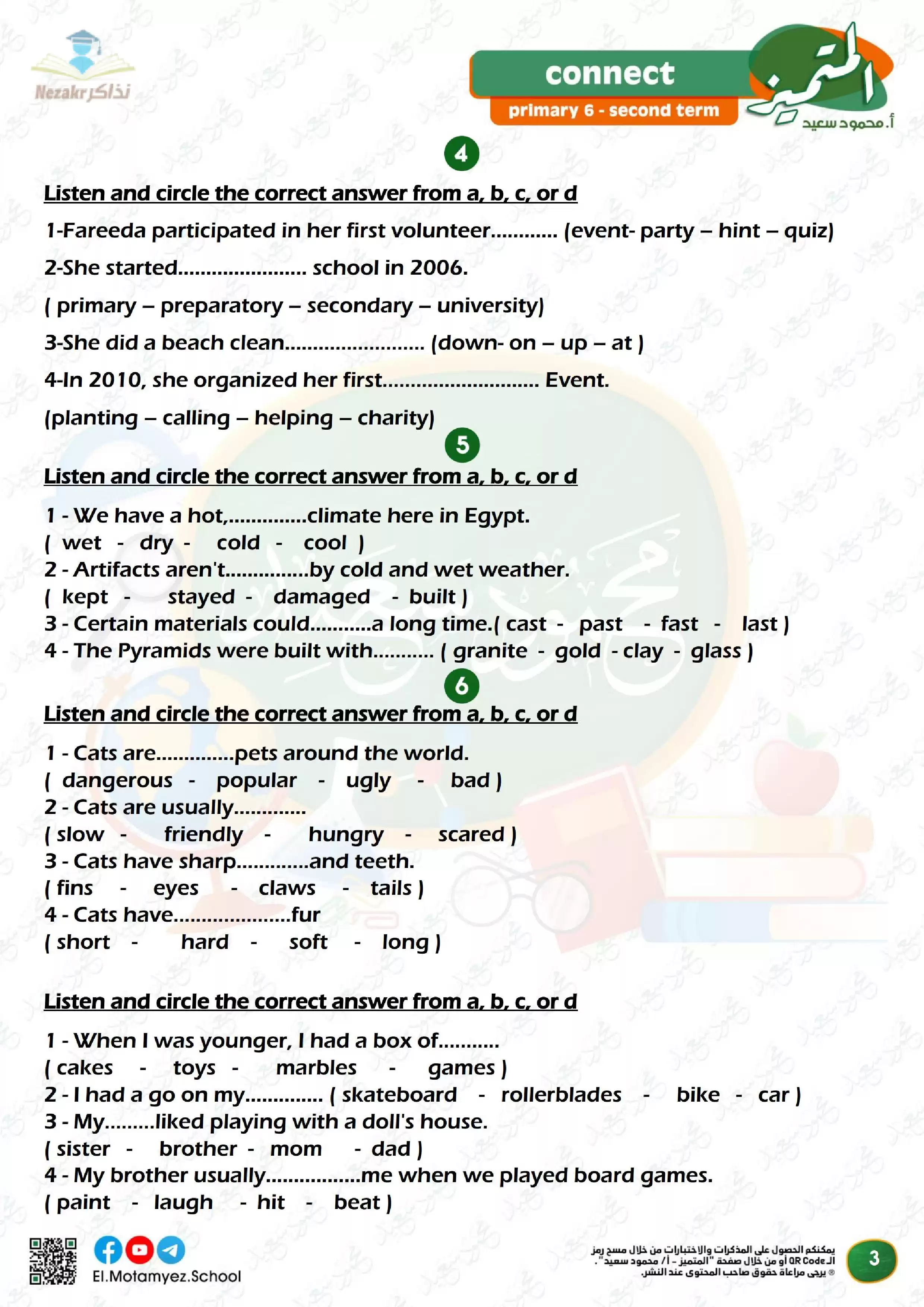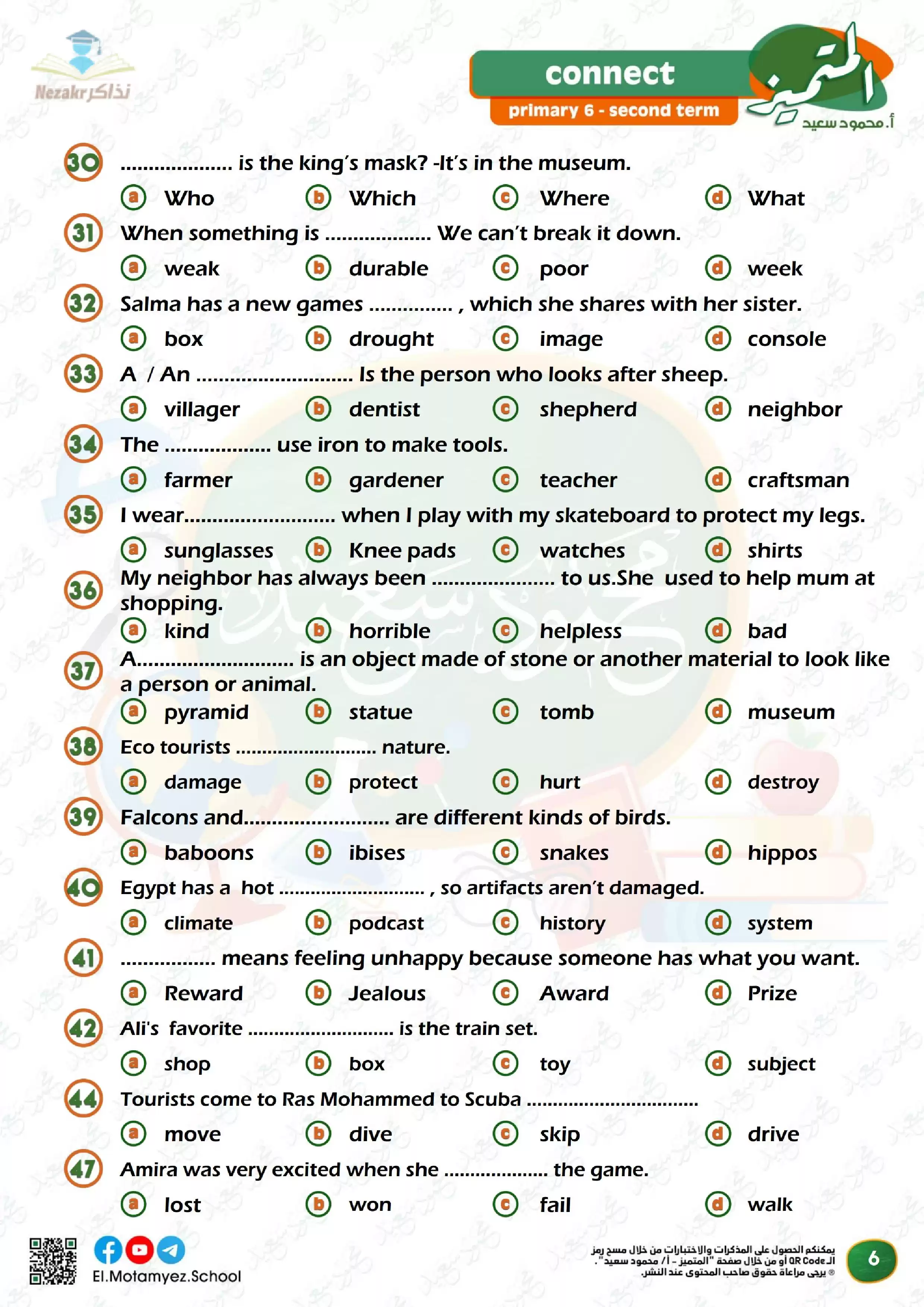يحتوى الملف المرفق في المقال على ملف المراجعة النهائية في مادة االلغة الإنجليزية connect 6 من المتميز والخاصة بالصف السادس الابتدائي الفصل الدراسي الثاني, مراجعة وبنك أسئلة المتميز على منهج الفصل الدراسي الثاني ساتة ابتدائي كاملاً في الانجليزي, وذلك لتتمكن من تشغيله على جهاز الموبايل أو من خلال جهاز الكمبيوتر أو عبر اللابتوب أو التابلت لضمان سهولة الوصول الى الكتاب والمذاكرة عليه.