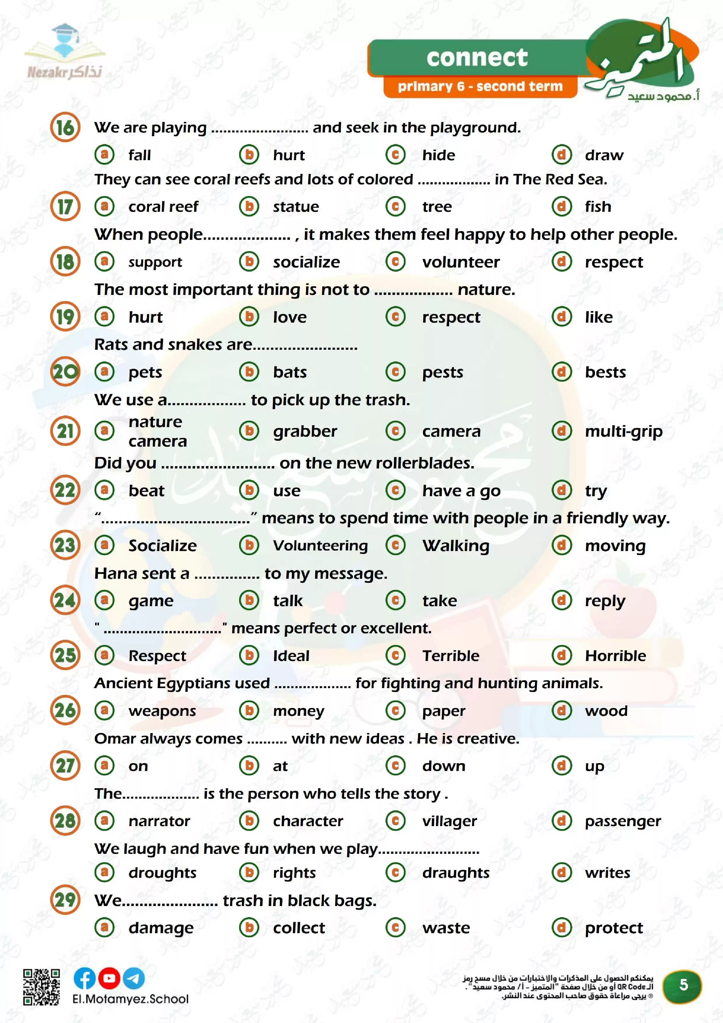 | بيانات الملف: (مراجعة المتميز النهائية في مادة اللغة الإنجليزية للصف السادس الابتدائي الترم الثاني - Nezakr) | |