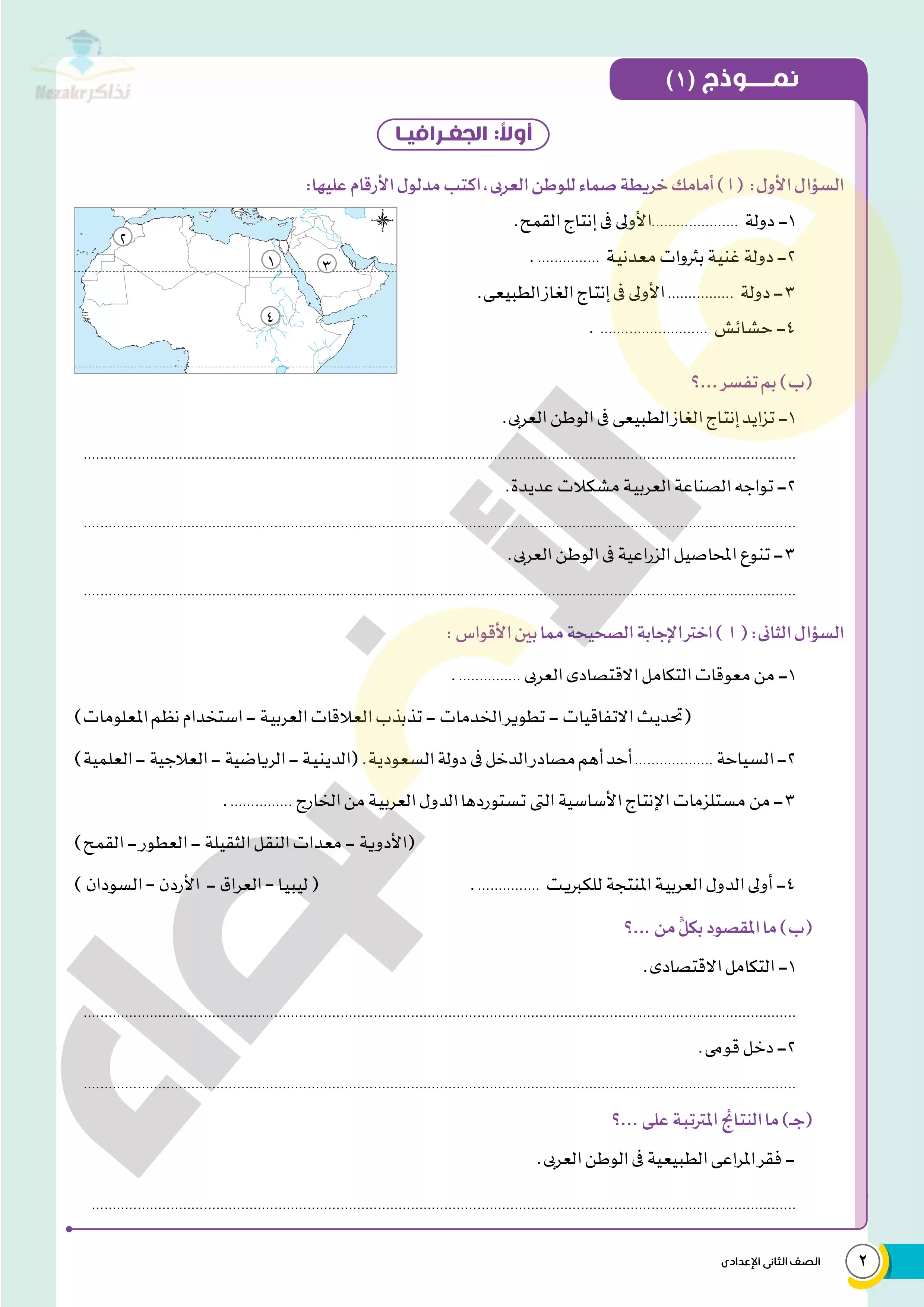 | بيانات الملف: (نماذج اختبارات ومراجعة الأضواء النهائية في مادة الدراسات الاجتماعية للصف الثاني الإعدادي الترم الثاني - Nezakr) | |