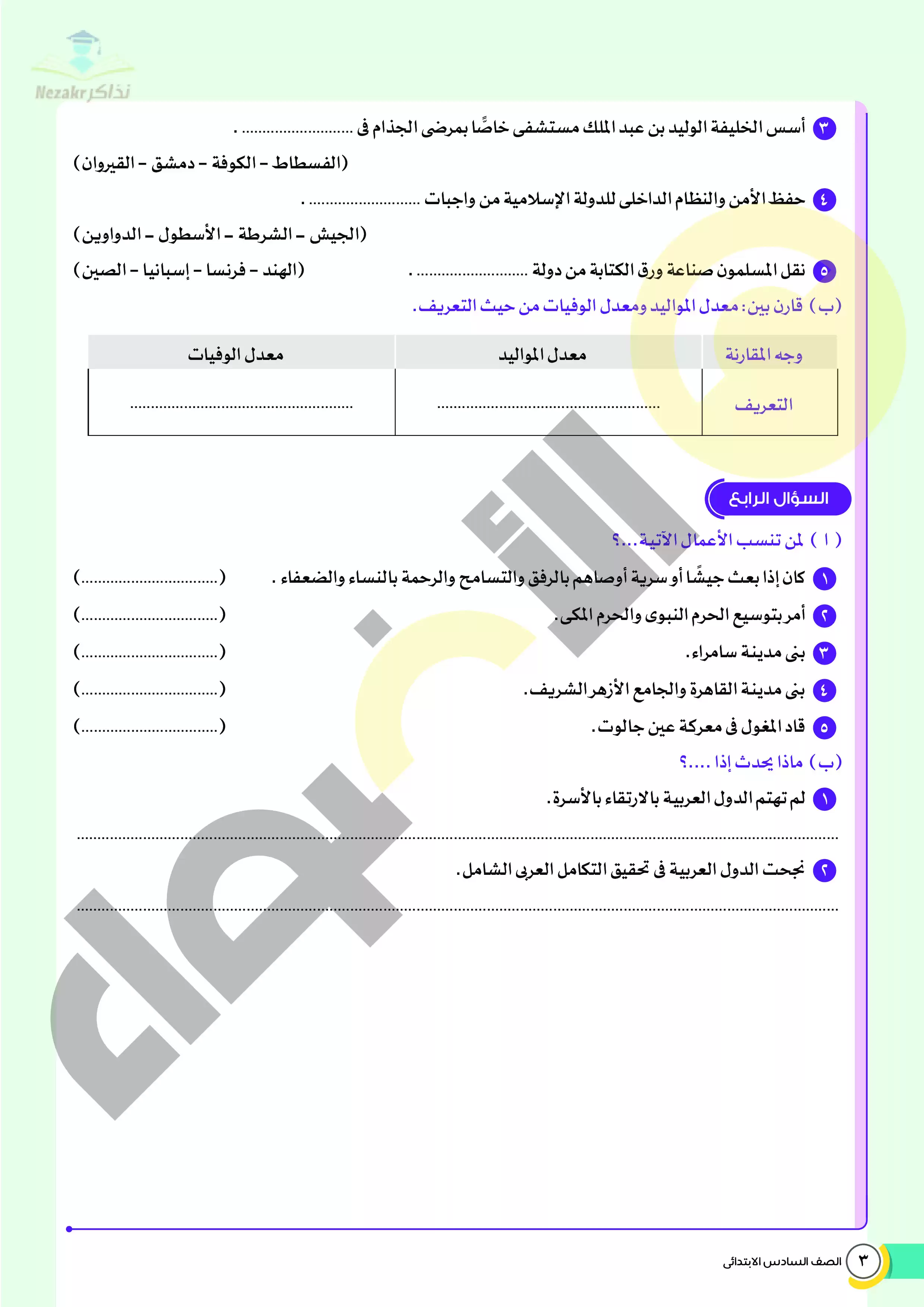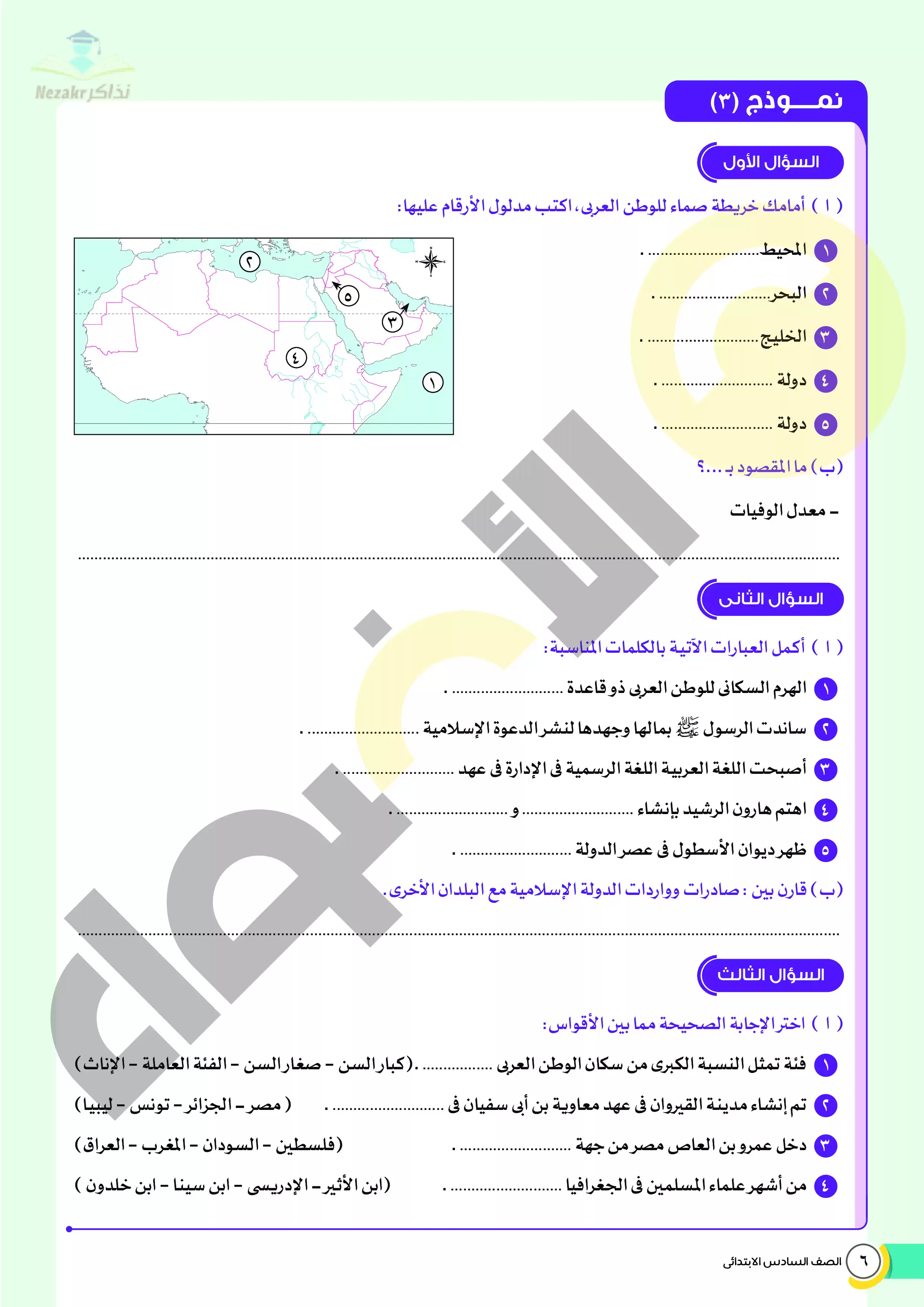 صفحة 3 من 20 صفحة من ملف: نماذج اختبارات ومراجعة الأضواء النهائية في مادة الدراسات الاجتماعية للصف السادس الابتدائي الترم الثاني - Nezakr