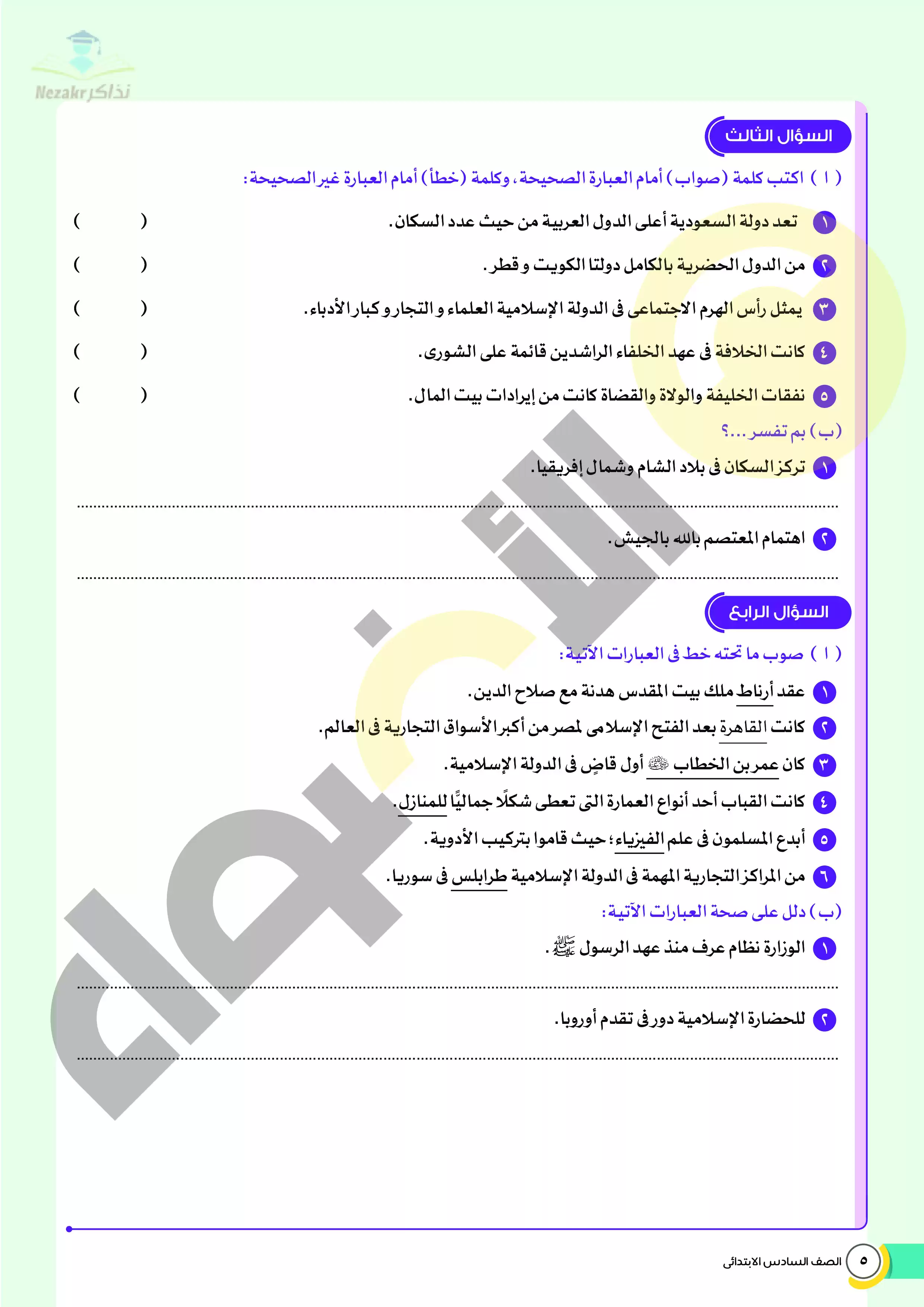 صفحة 5 من 20 صفحة من ملف: نماذج اختبارات ومراجعة الأضواء النهائية في مادة الدراسات الاجتماعية للصف السادس الابتدائي الترم الثاني - Nezakr