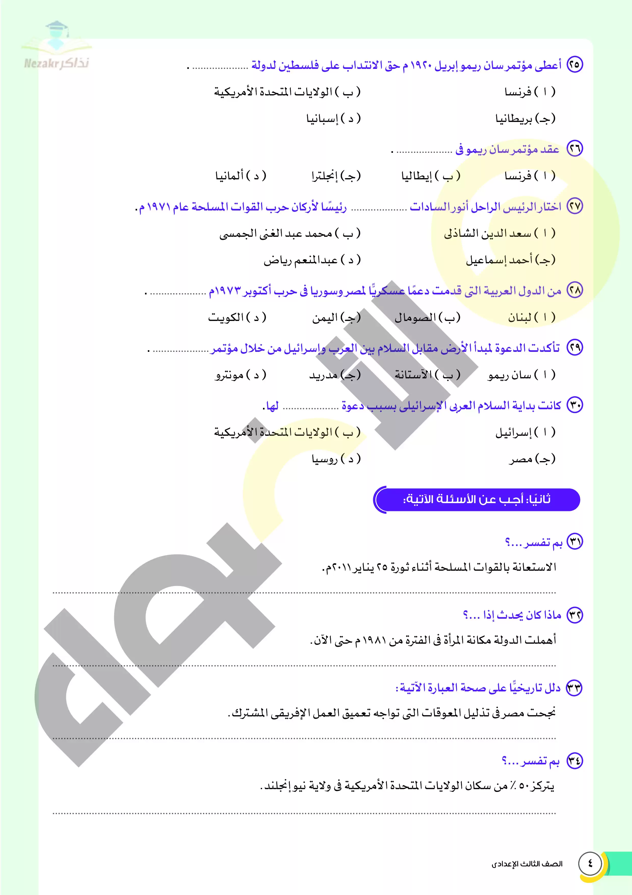 صفحة 4 من 46 صفحة من ملف: نماذج اختبارات ومراجعة الأضواء النهائية في مادة الدراسات الاجتماعية للصف الثالث الإعدادي الترم الثاني - Nezakr