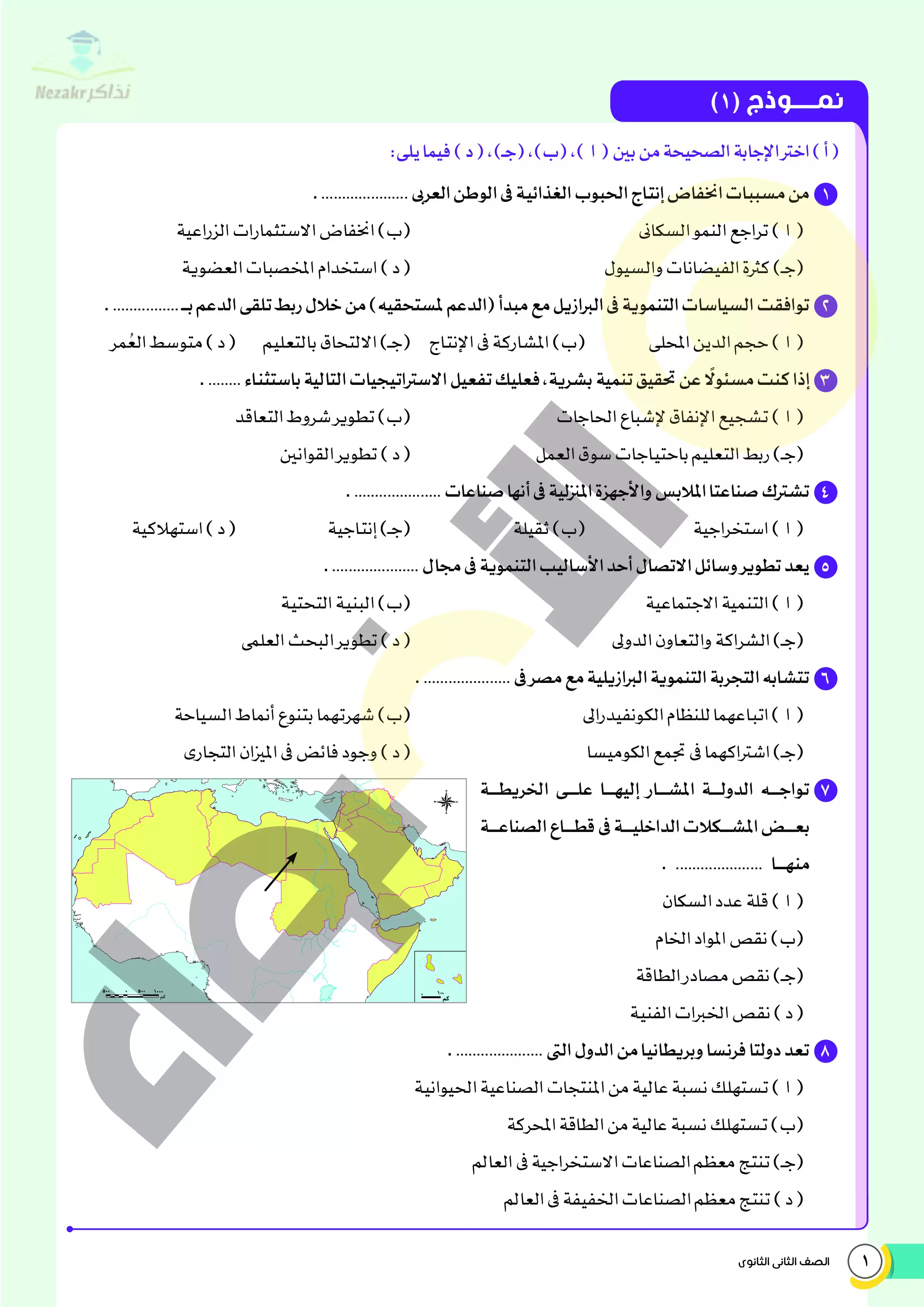 سكرين شوت من الملف: نماذج امتحانات الأضواء النهائية في مادة الجغرافيا للصف الثاني الثانوي الترم الثاني - Nezakr