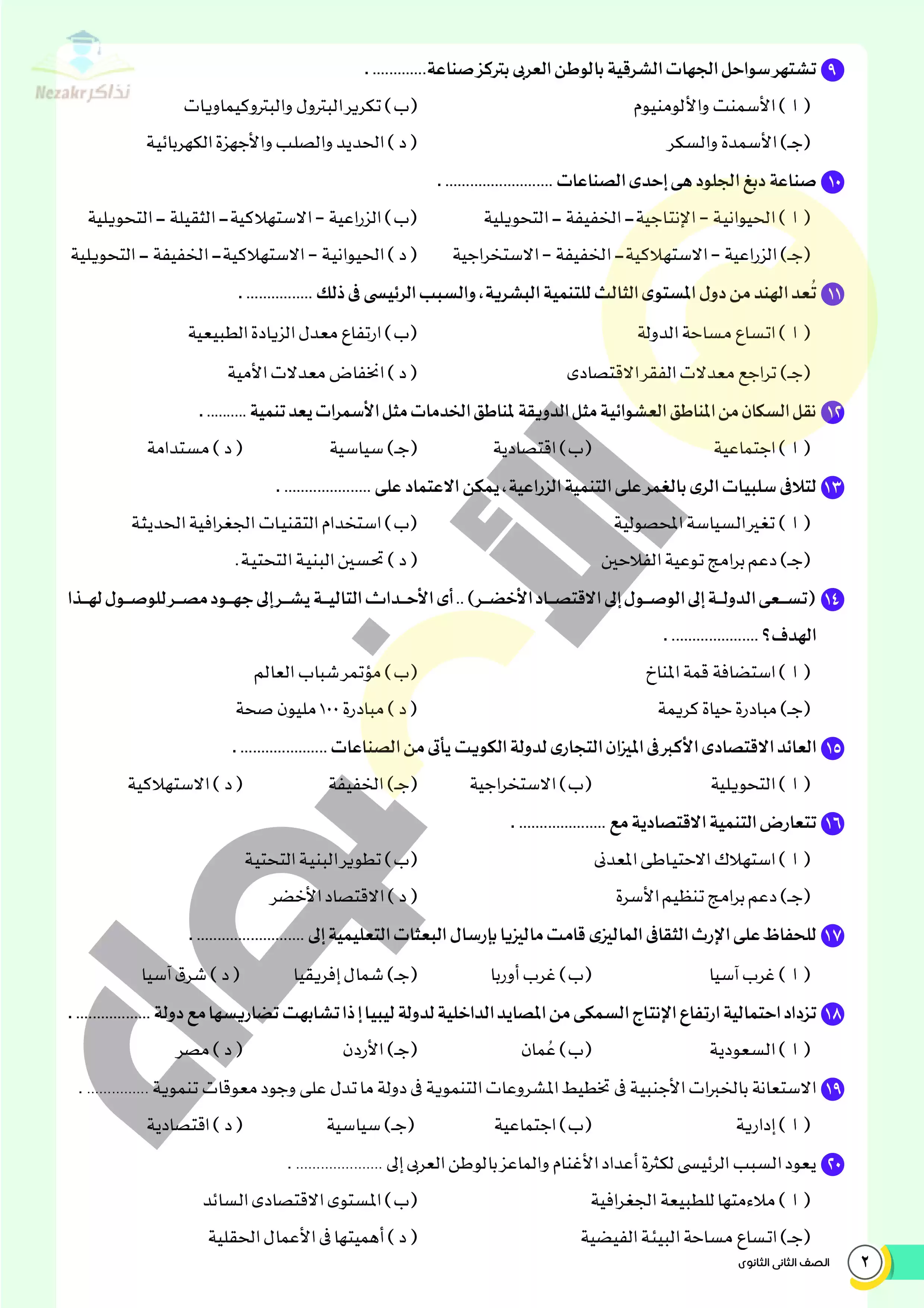 صفحة 2 من 19 صفحة من ملف: نماذج امتحانات الأضواء النهائية في مادة الجغرافيا للصف الثاني الثانوي الترم الثاني - Nezakr