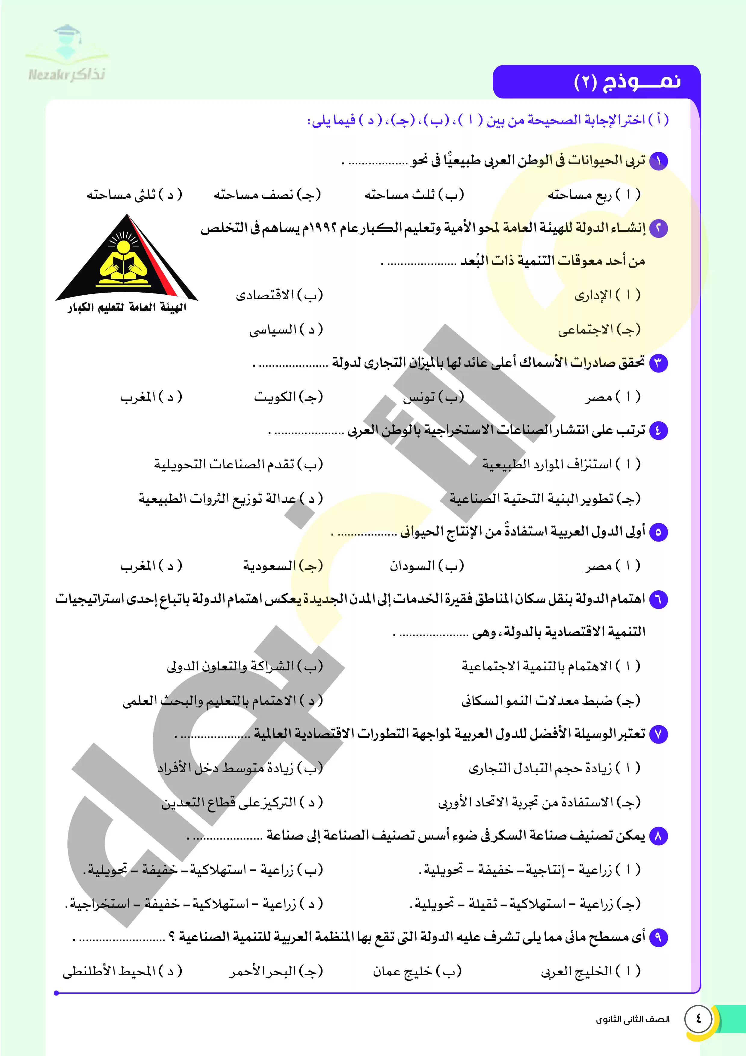 صفحة 4 من 19 صفحة من ملف: نماذج امتحانات الأضواء النهائية في مادة الجغرافيا للصف الثاني الثانوي الترم الثاني - Nezakr