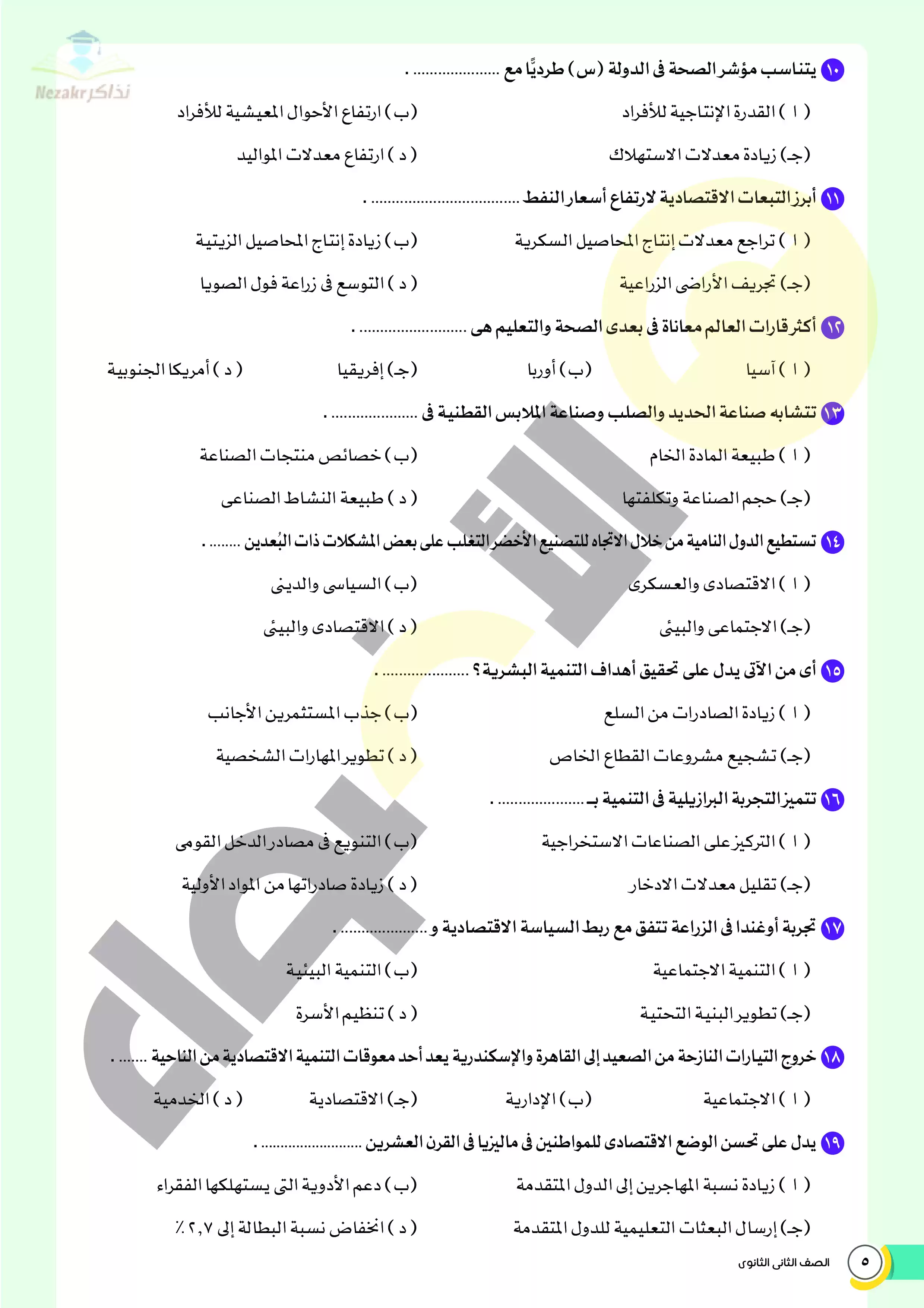 صفحة 5 من 19 صفحة من ملف: نماذج امتحانات الأضواء النهائية في مادة الجغرافيا للصف الثاني الثانوي الترم الثاني - Nezakr