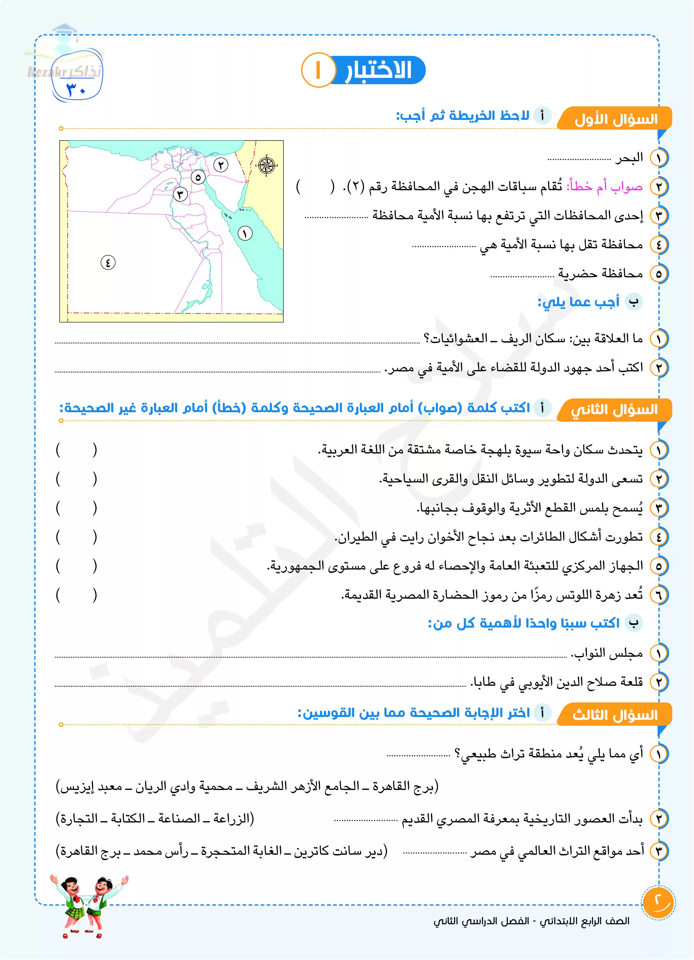تحميل نماذج اختبارات سلاح التلميذ في الدراسات الاجتماعية للصف الرابع الابتدائي مع إجاباتها النموذجية