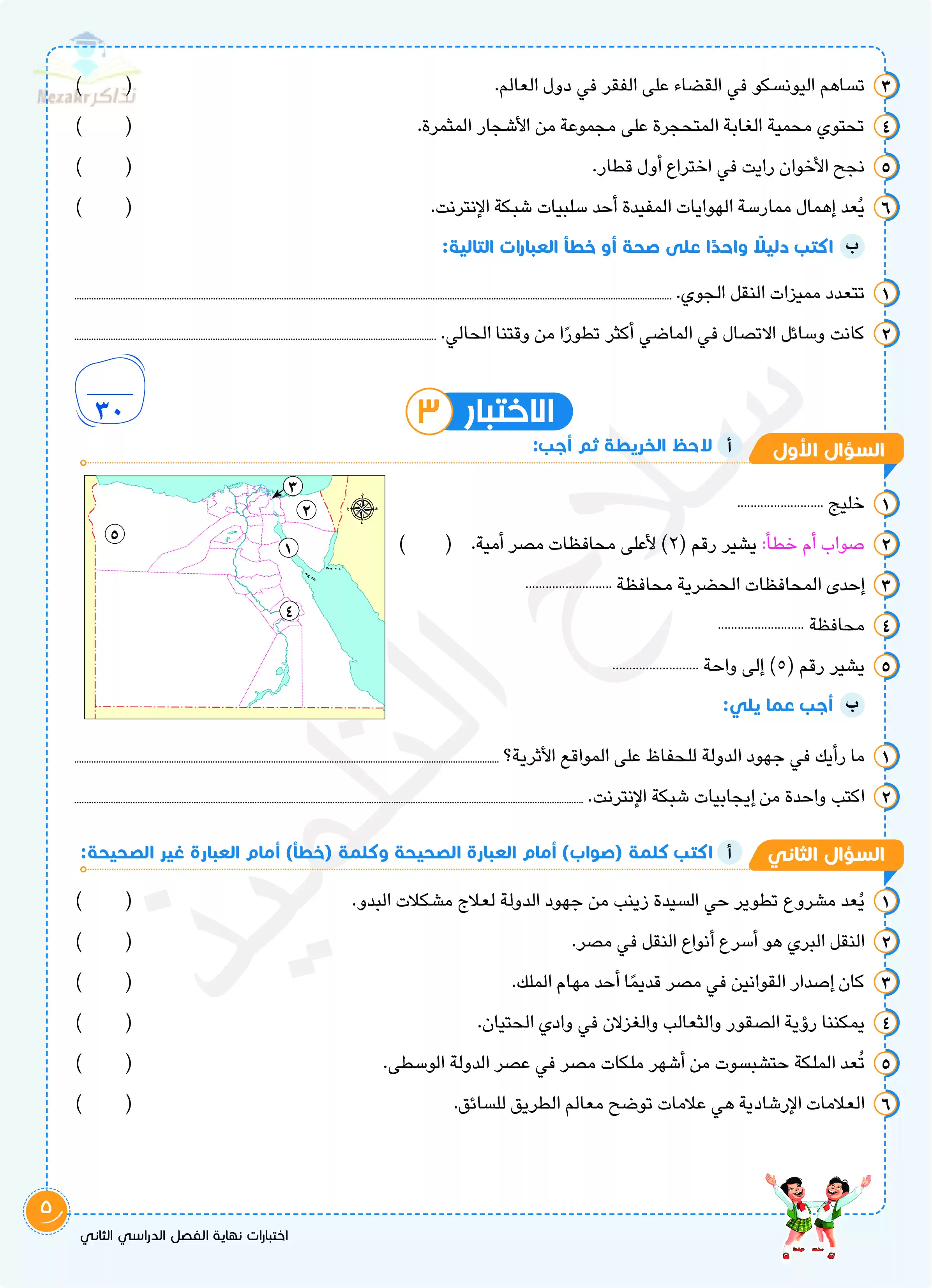 صفحة 5 من 16 صفحة من ملف: اختبارات سلاح التلميذ في مادة الدراسات الاجتماعية الفصل الدراسي الثاني الصف الرابع الابتدائي بالإجابات النموذجية - Nezakr