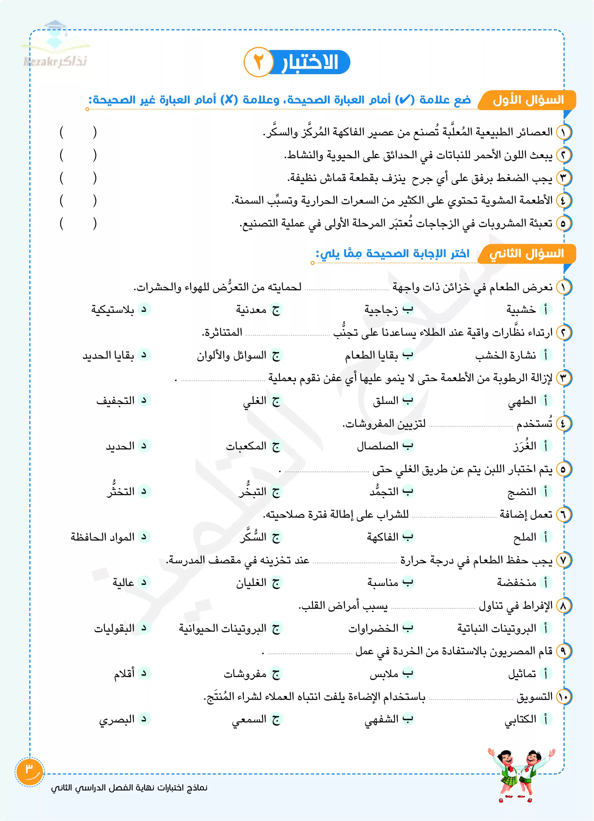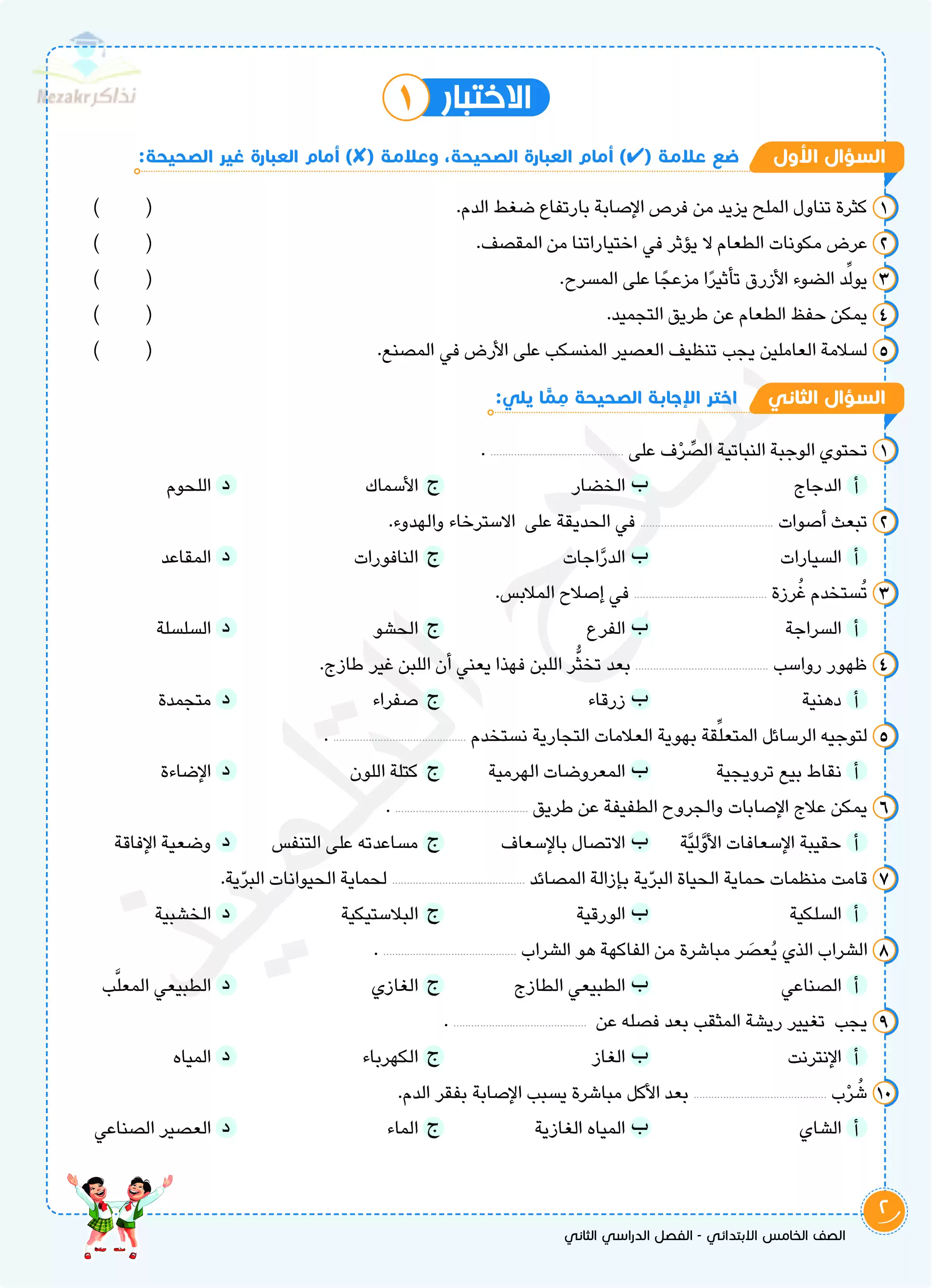 صفحة 2 من 9 صفحة من ملف: اختبارات سلاح التلميذ في مادة المهارات المهنية الفصل الدراسي الثاني الصف الخامس الابتدائي بالإجابات النموذجية - Nezakr