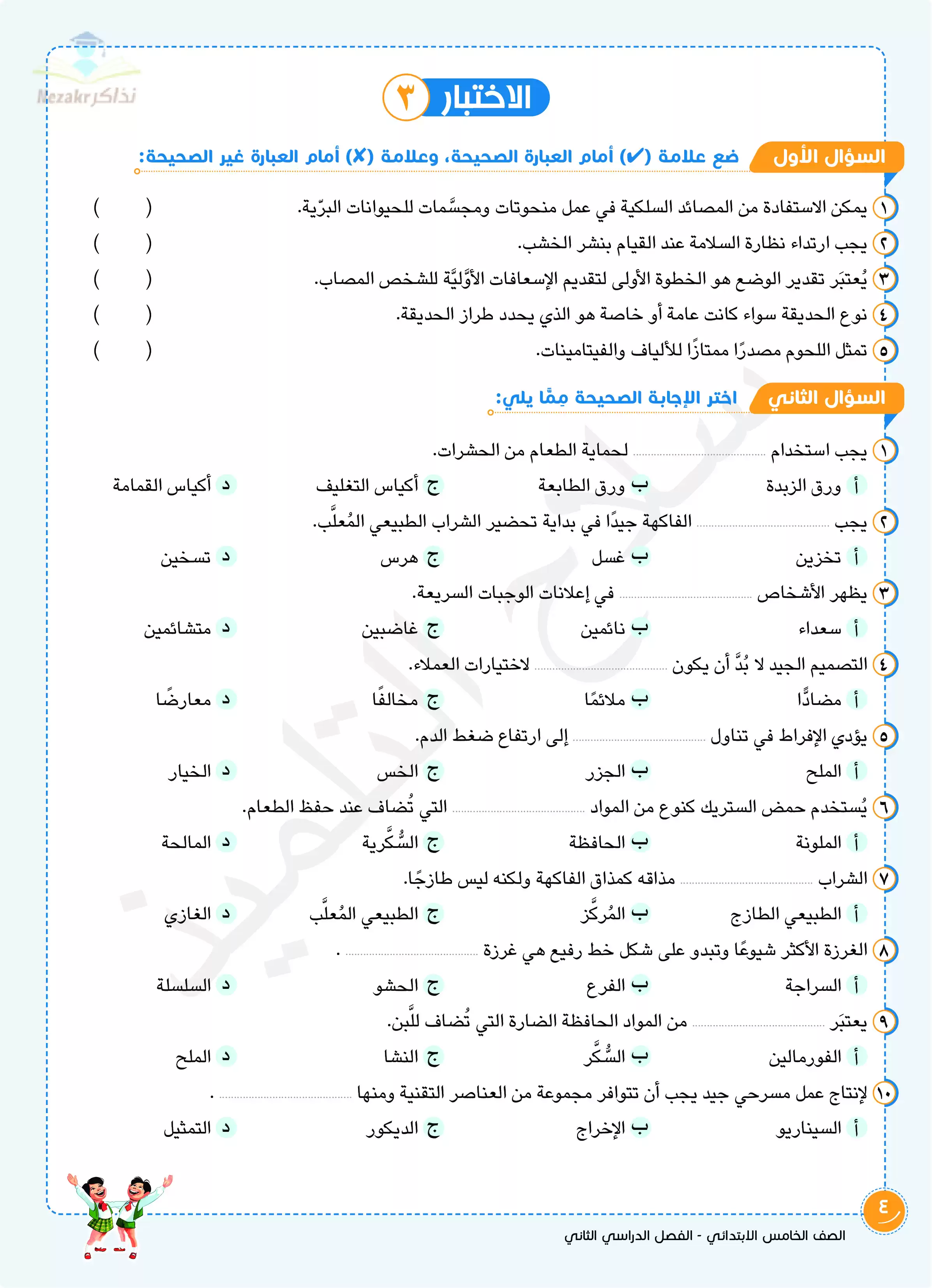 صفحة 4 من 9 صفحة من ملف: اختبارات سلاح التلميذ في مادة المهارات المهنية الفصل الدراسي الثاني الصف الخامس الابتدائي بالإجابات النموذجية - Nezakr