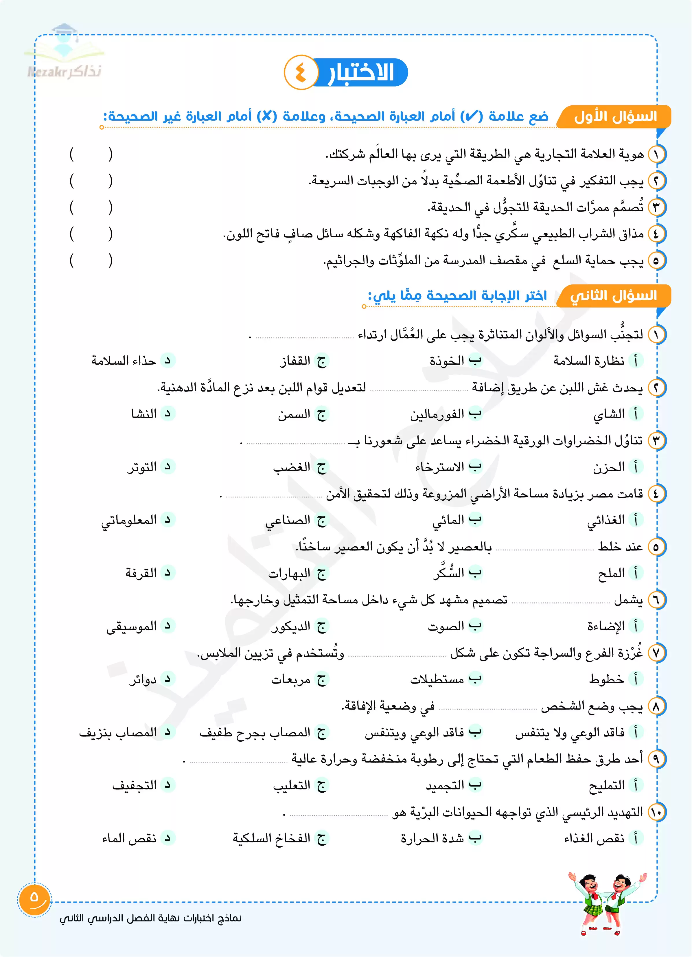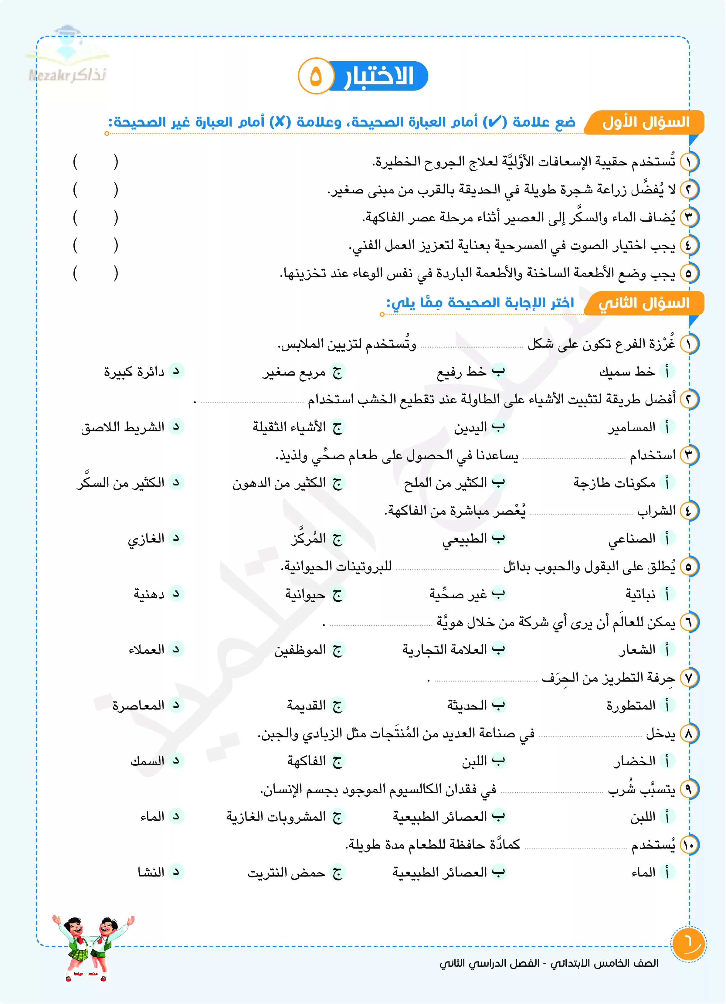 صفحة 5 من 9 صفحة من ملف: اختبارات سلاح التلميذ في مادة المهارات المهنية الفصل الدراسي الثاني الصف الخامس الابتدائي بالإجابات النموذجية - Nezakr