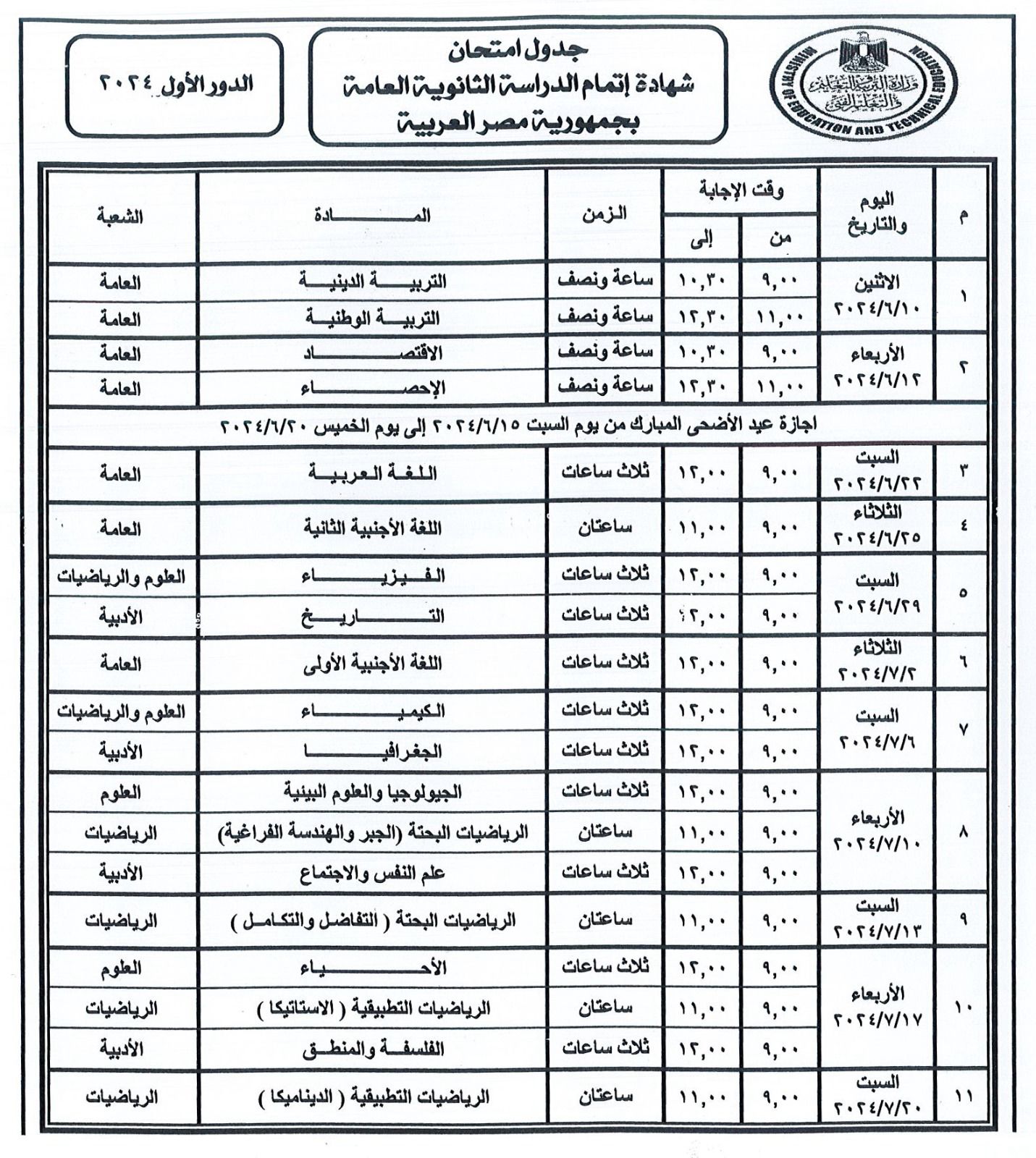 | بيانات الصورة: (جدول امتحانات الثانوية العامة 2024) | |
