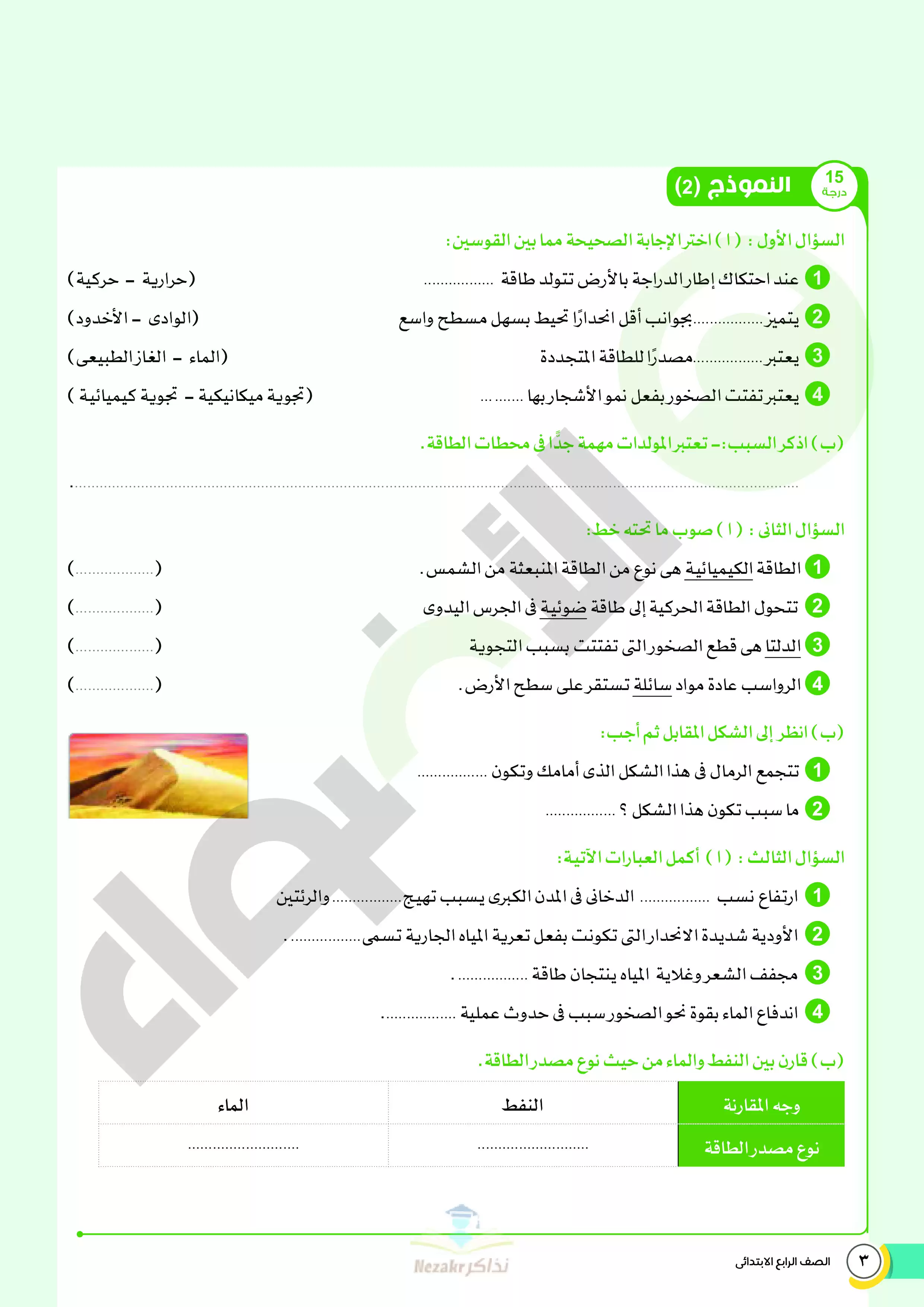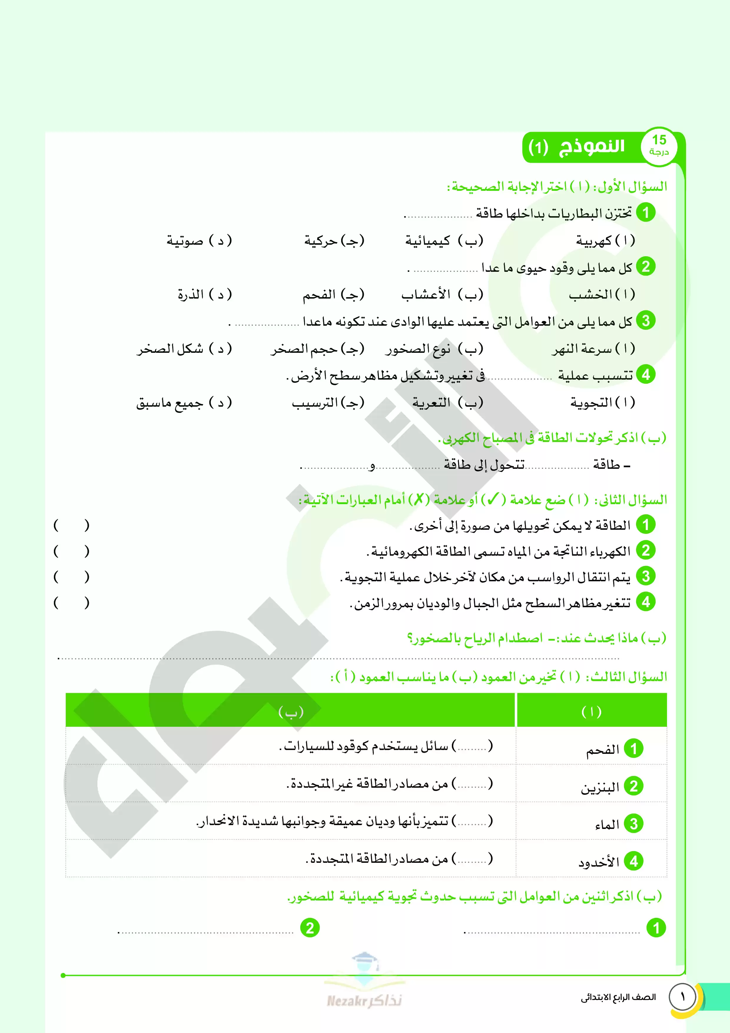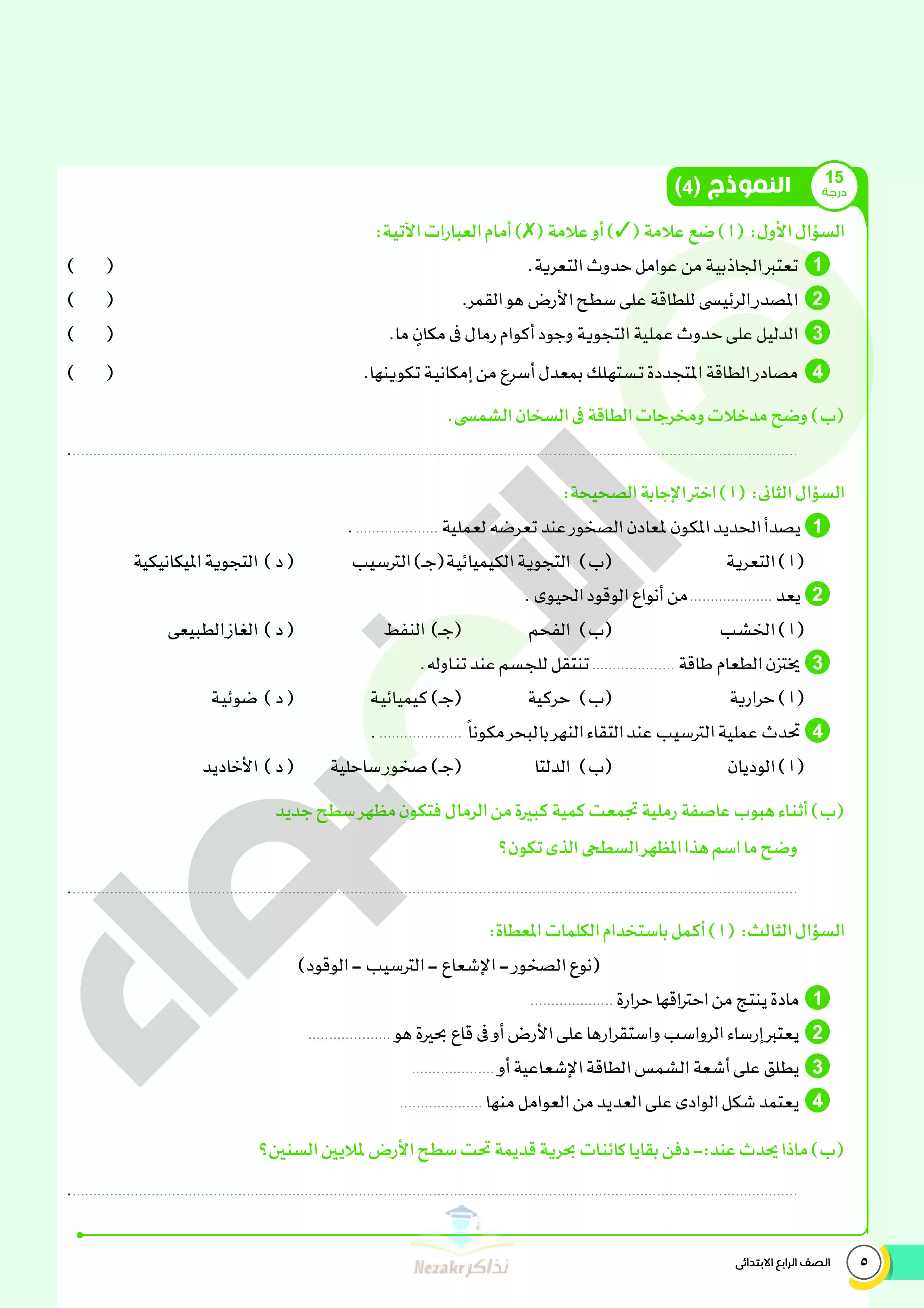 بيانات الملف: (نماذج اختبارات ومراجعة الأضواء النهائية في مادة العلوم للصف الرابع الابتدائي الترم الثاني - Nezakr)