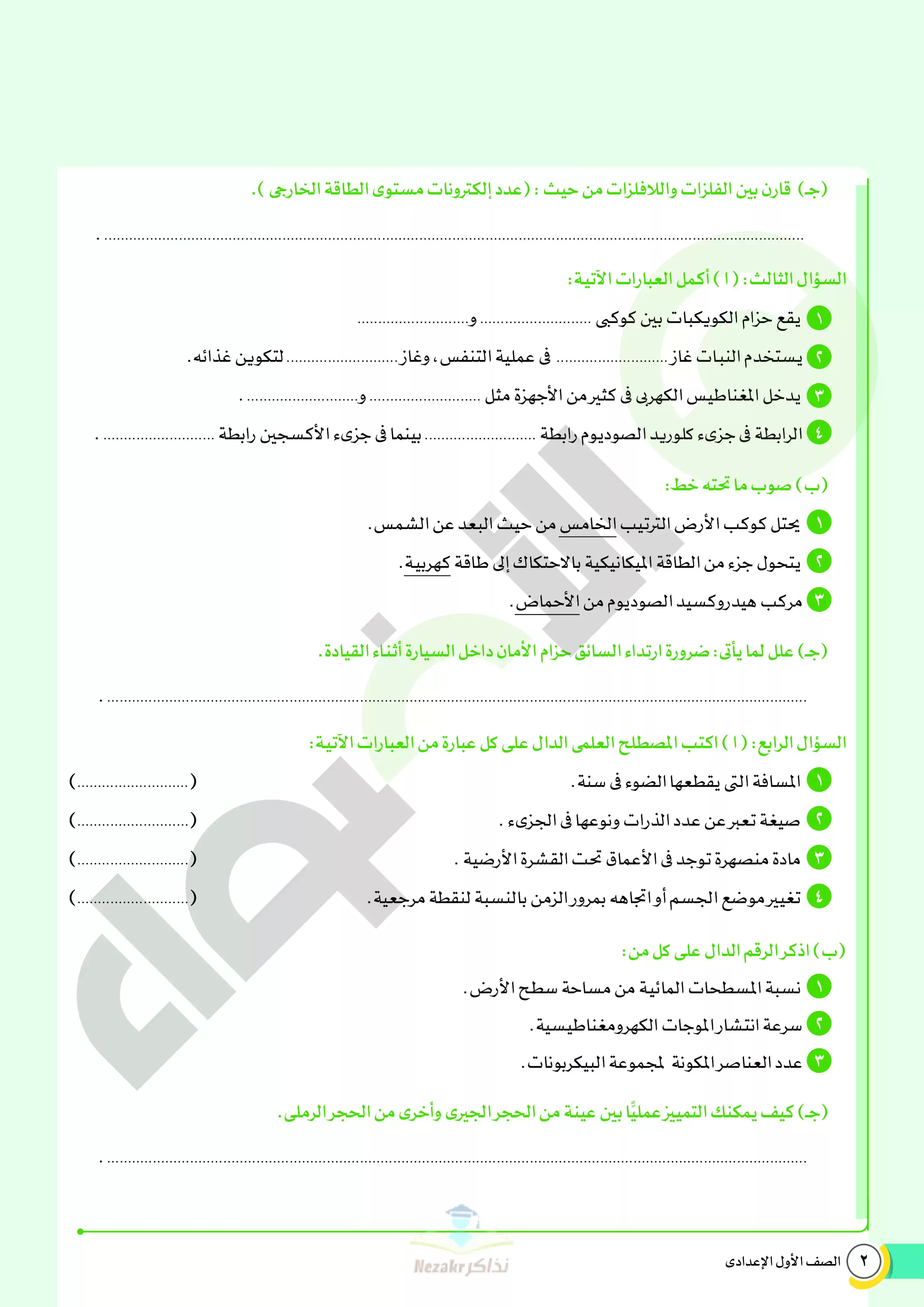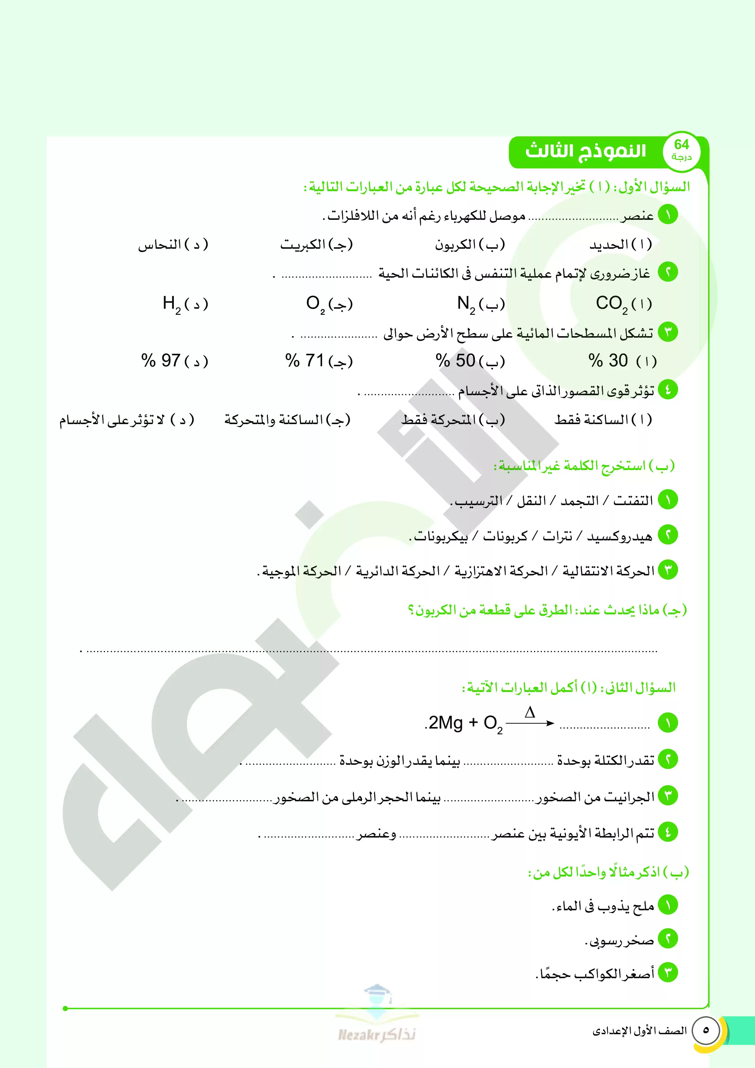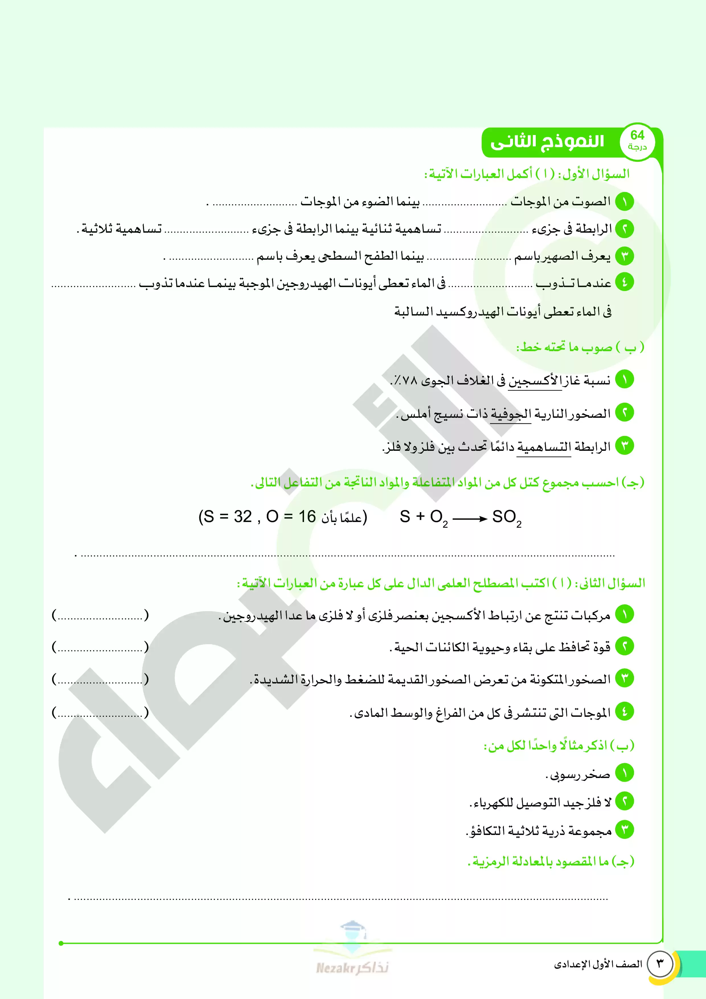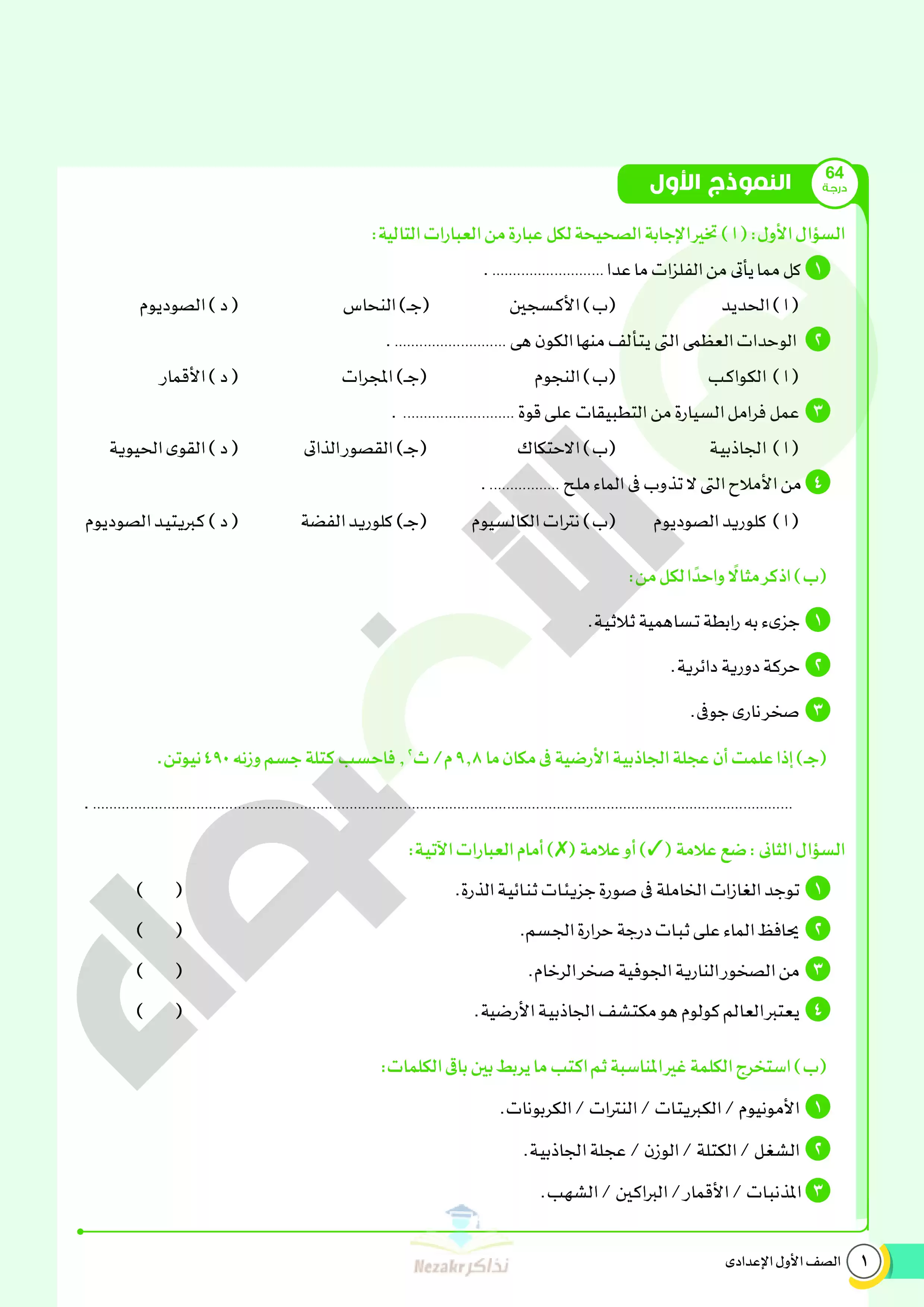 | بيانات الملف: (نماذج اختبارات الأضواء النهائية في مادة العلوم للصف الأول الاعدادي الترم الثاني - Nezakr) | |