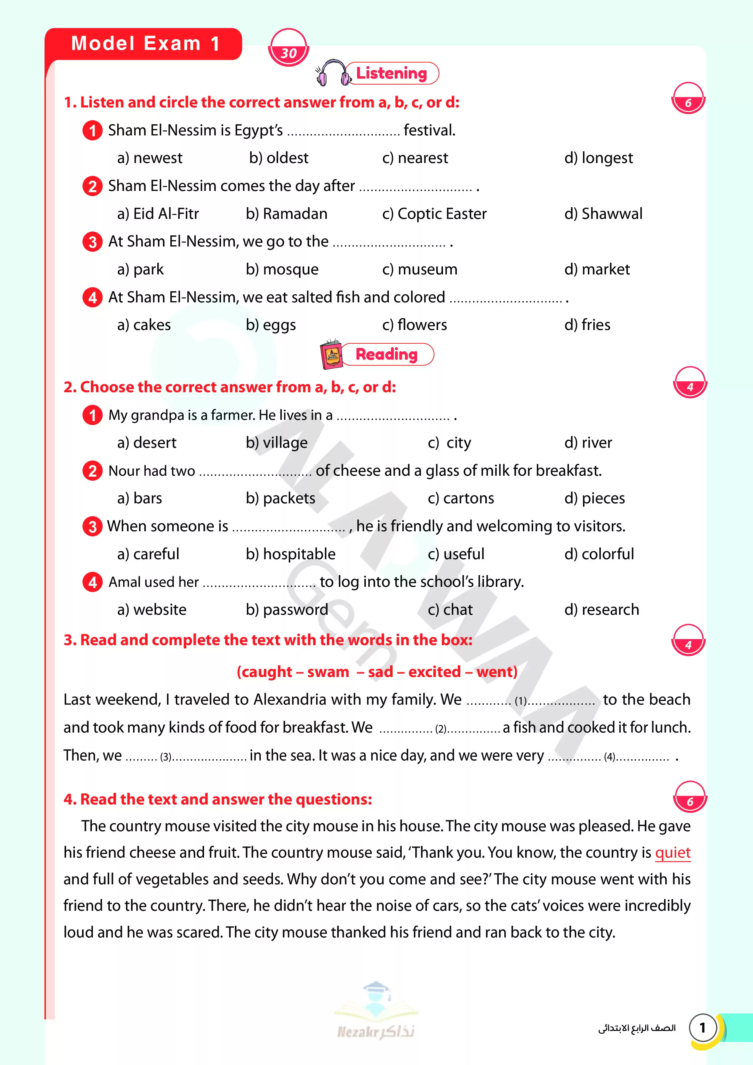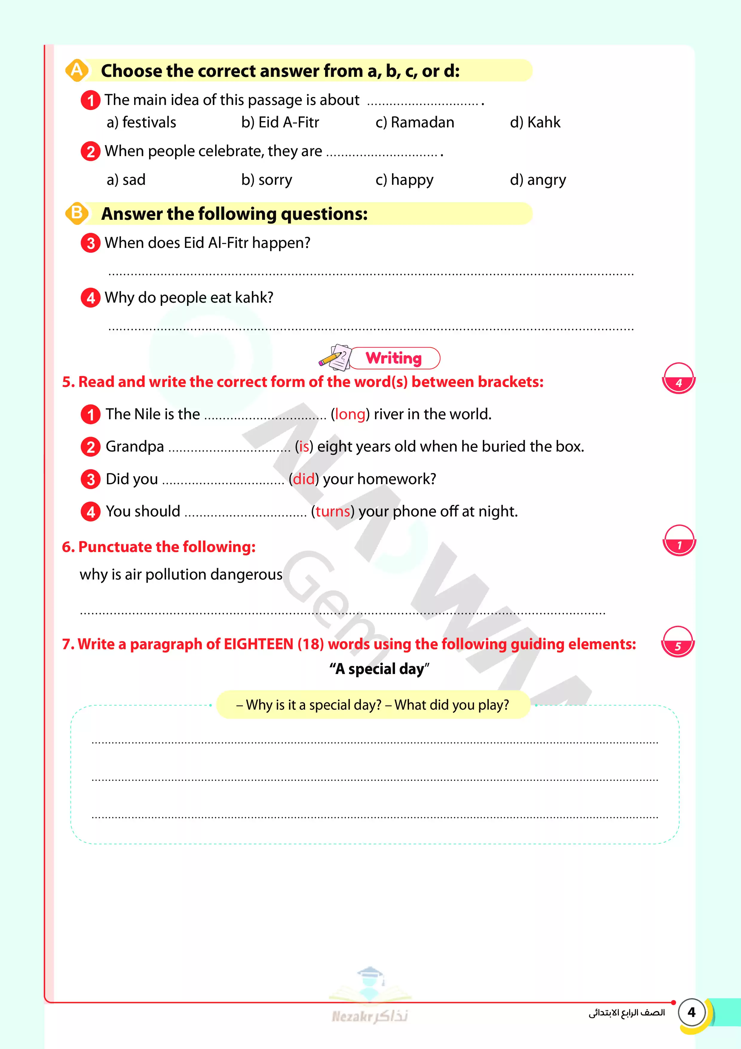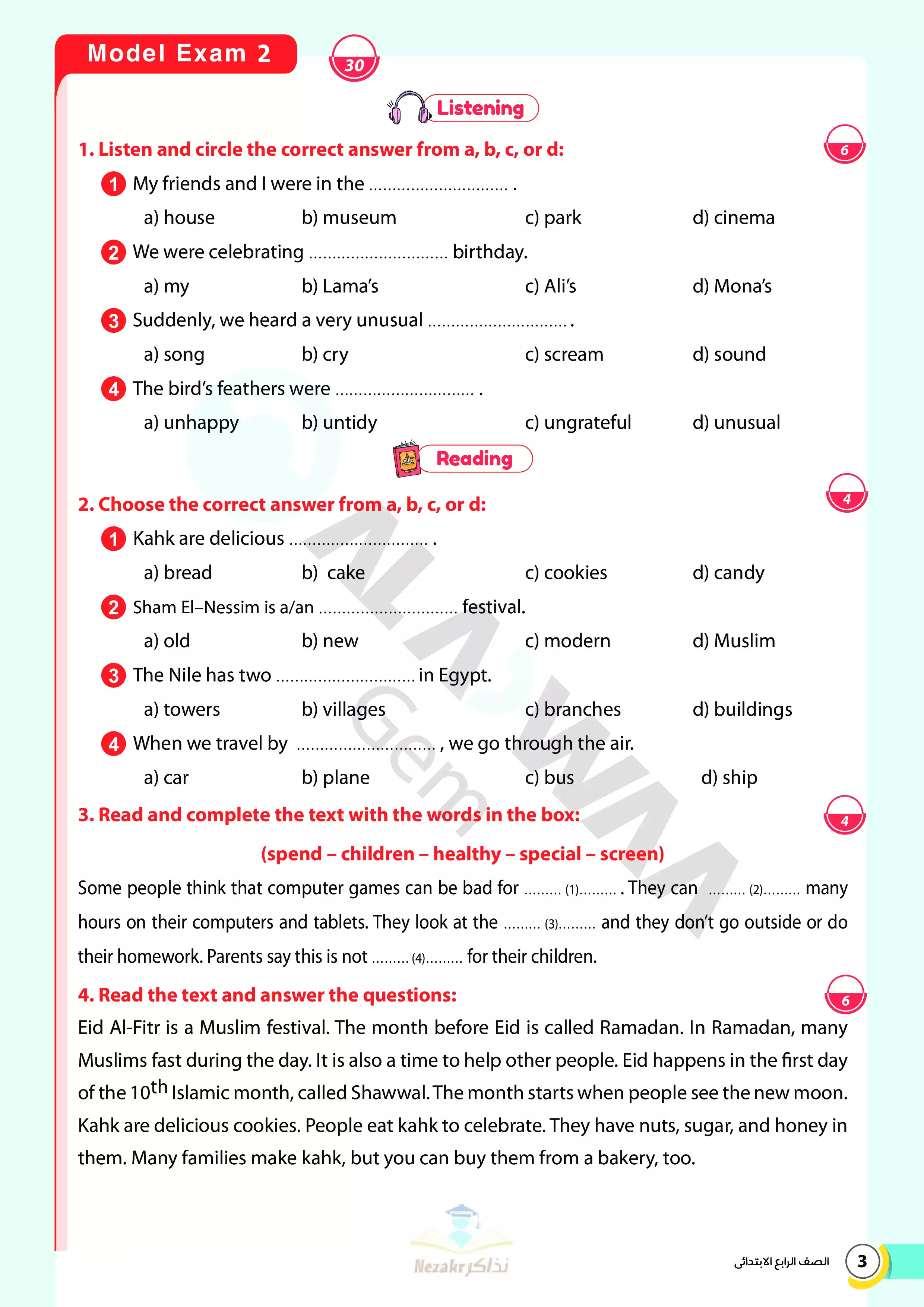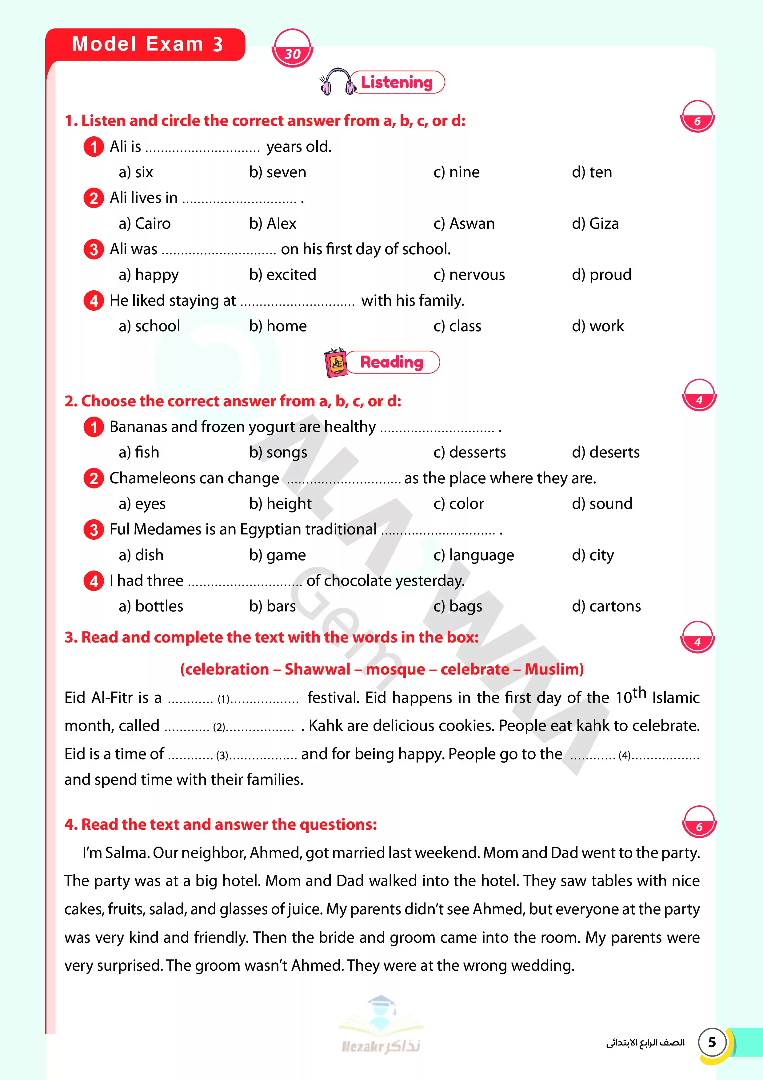 | بيانات الملف: (نماذج امتحانات استرشادية نهائية في اللغة الإنجليزية للصف الرابع الابتدائي الترم الثاني من الأضواء - Nezakr) | |
