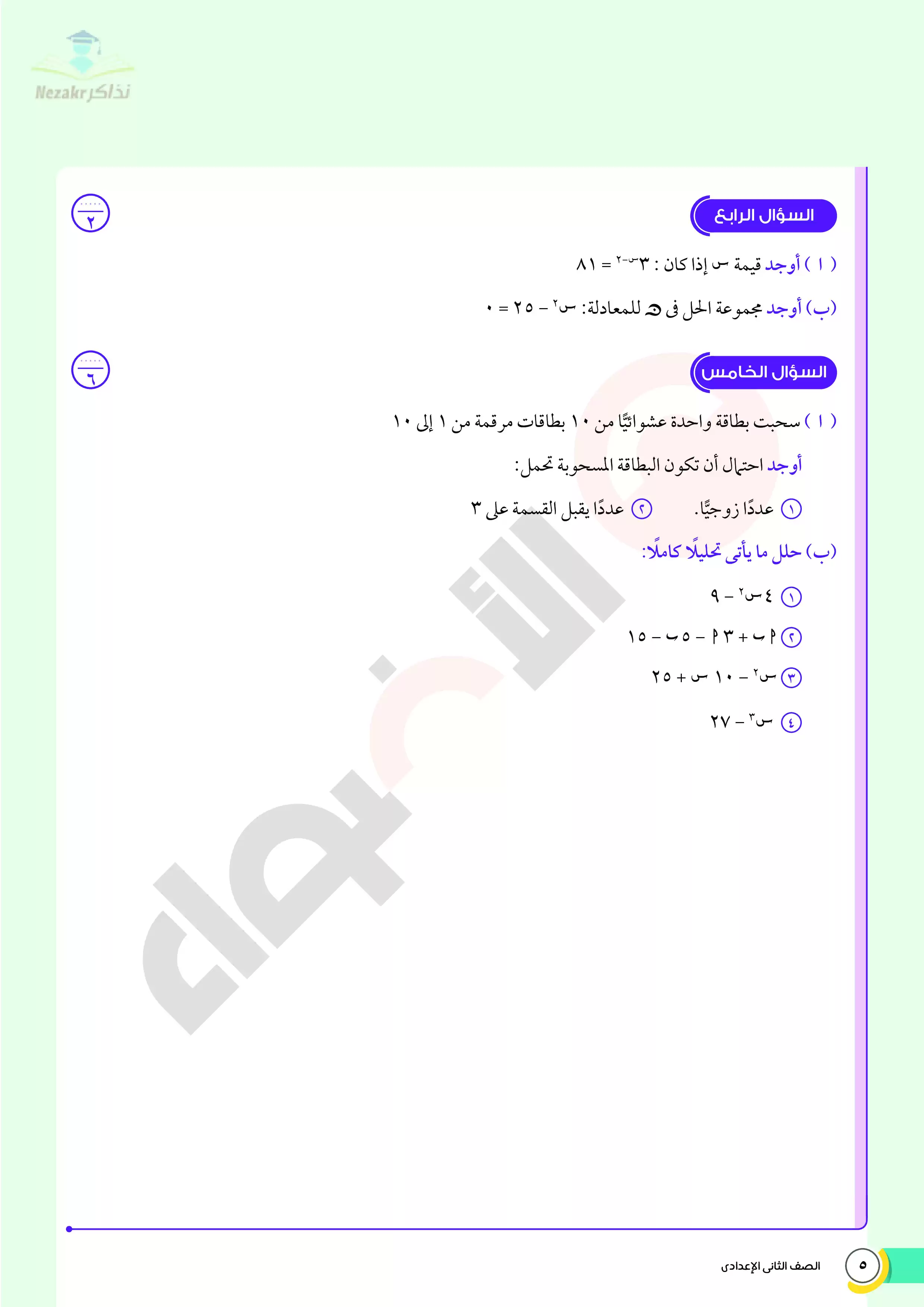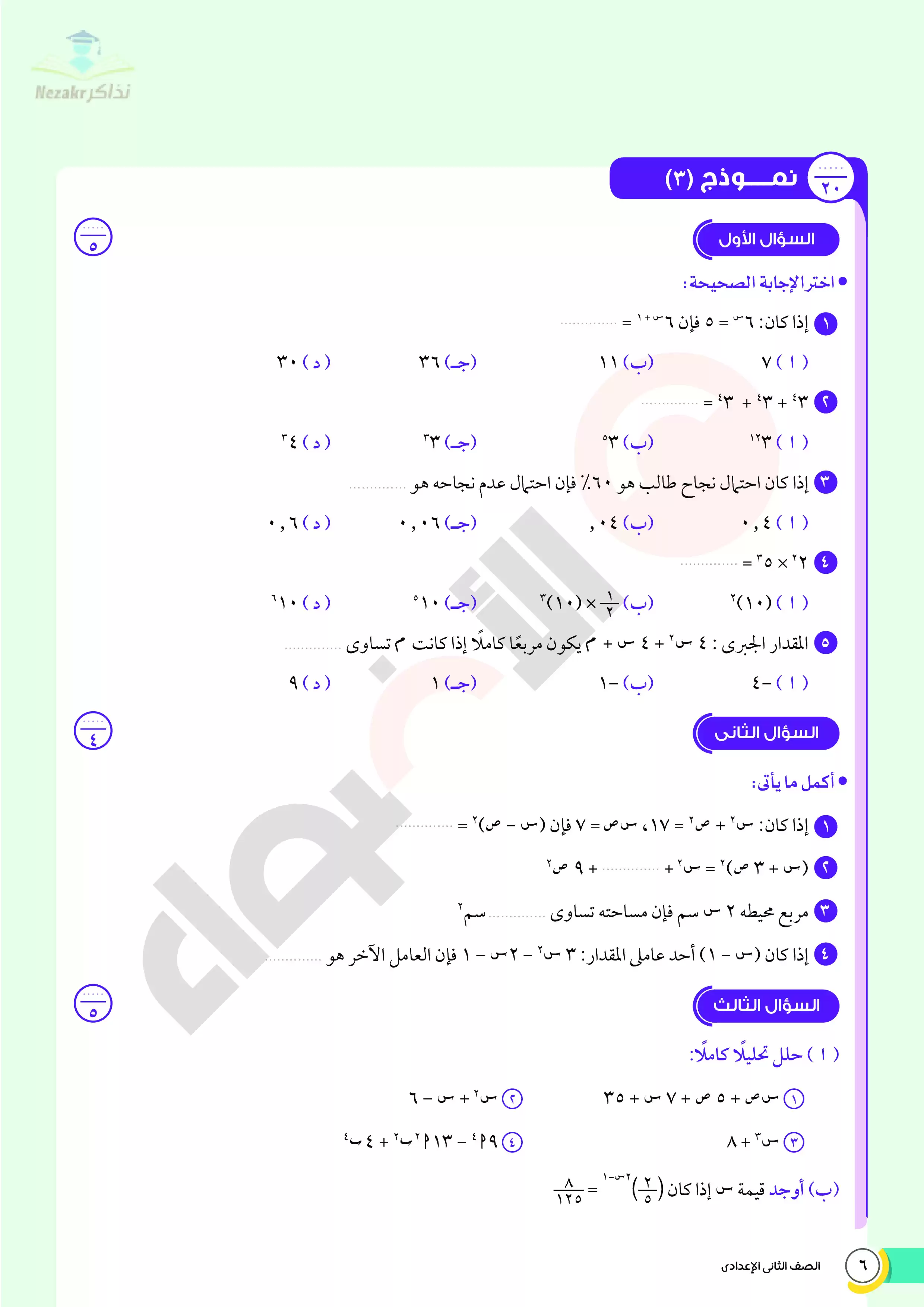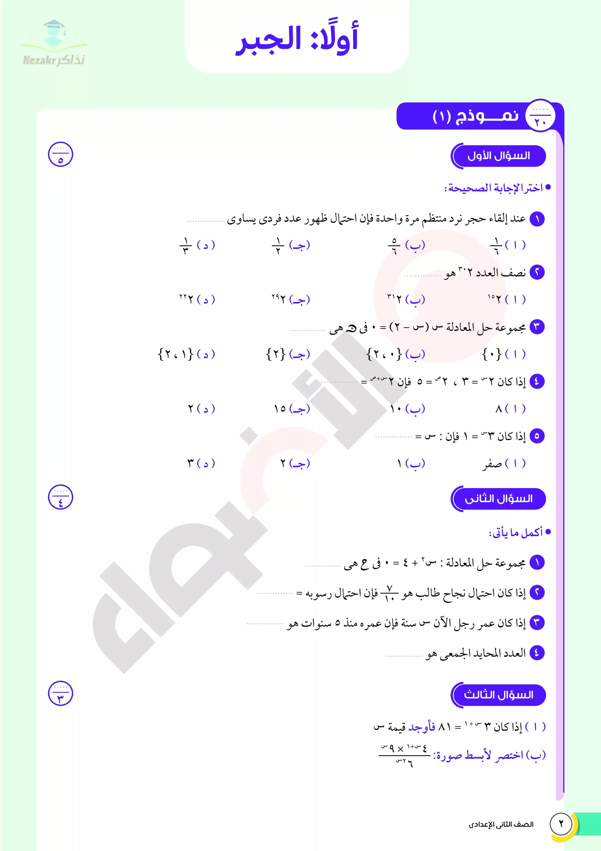| بيانات الملف: (نماذج اختبارات الأضواء النهائية في مادة الرياضيات للصف الثاني الإعدادي الترم الثاني - Nezakr) | |