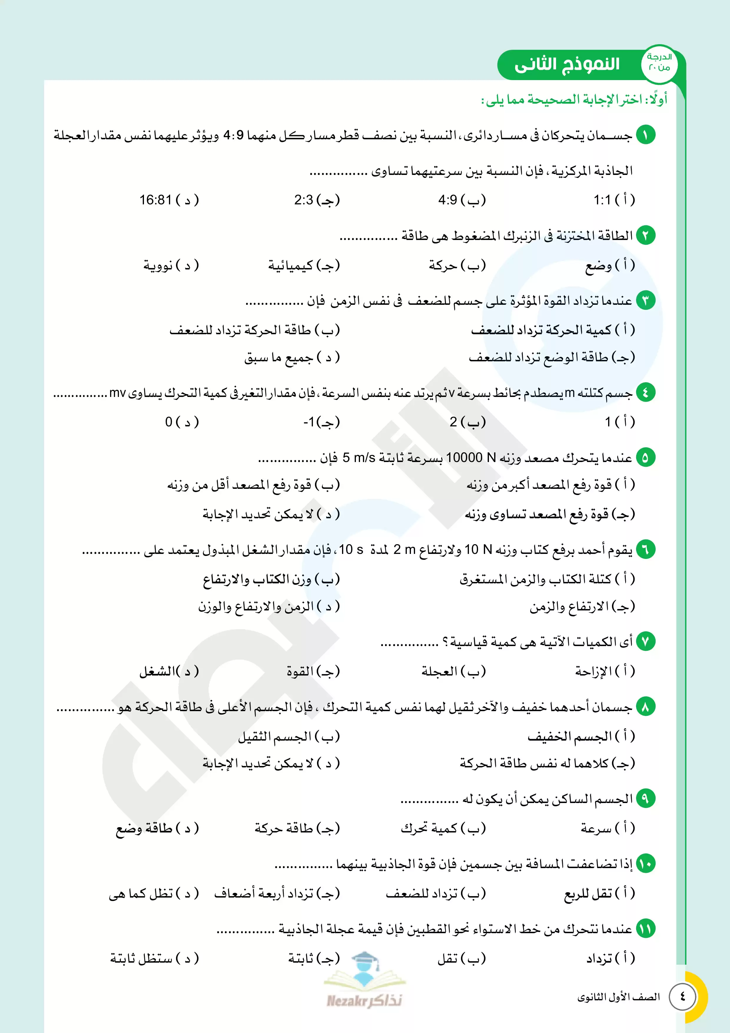 بيانات الملف: (نماذج اختبارات الأضواء النهائية في مادة الفيزياء للصف الأول الثانوي الترم الثاني - Nezakr)