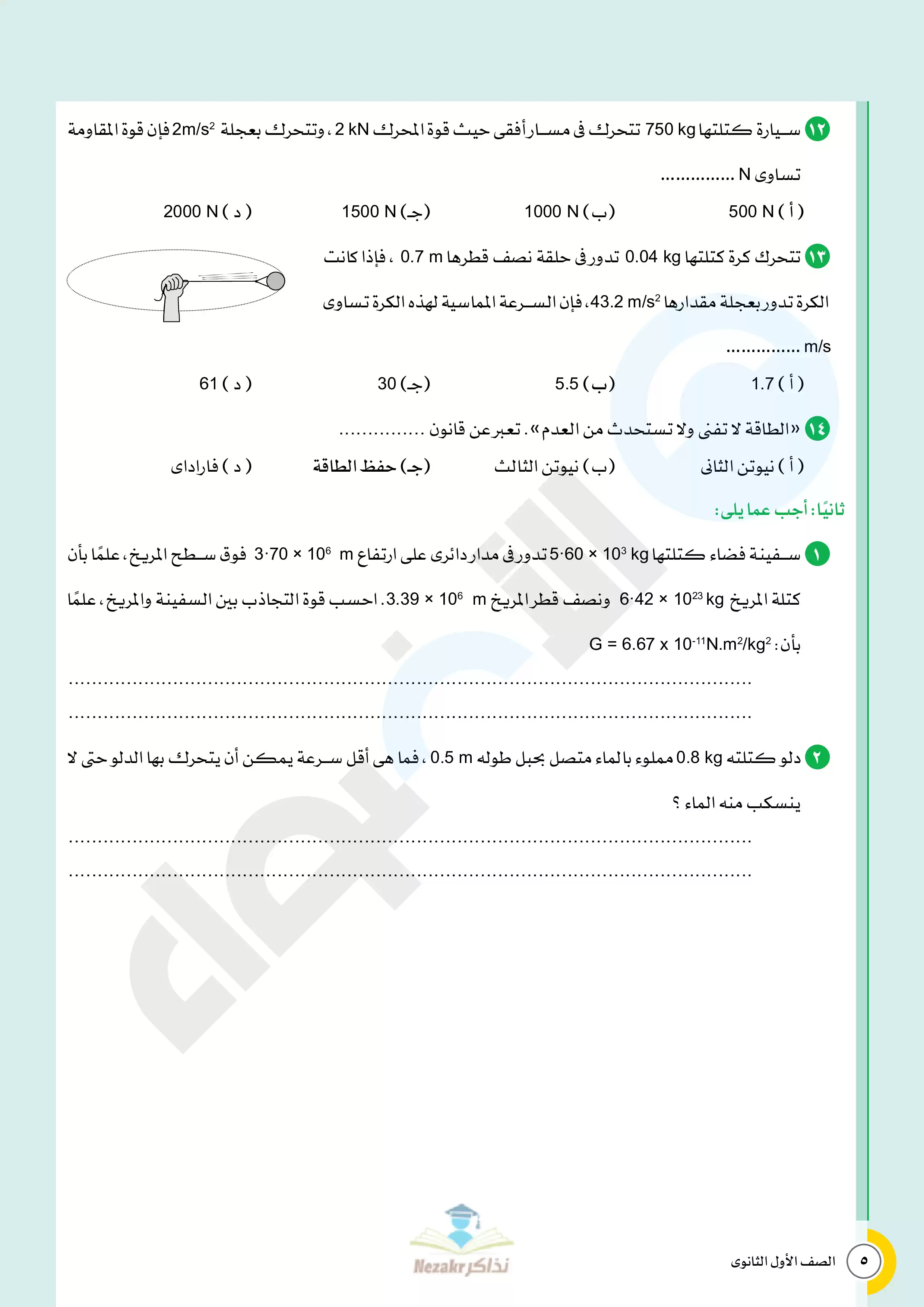 صفحة 5 من 22 صفحة من ملف: نماذج اختبارات الأضواء النهائية في مادة الفيزياء للصف الأول الثانوي الترم الثاني - Nezakr