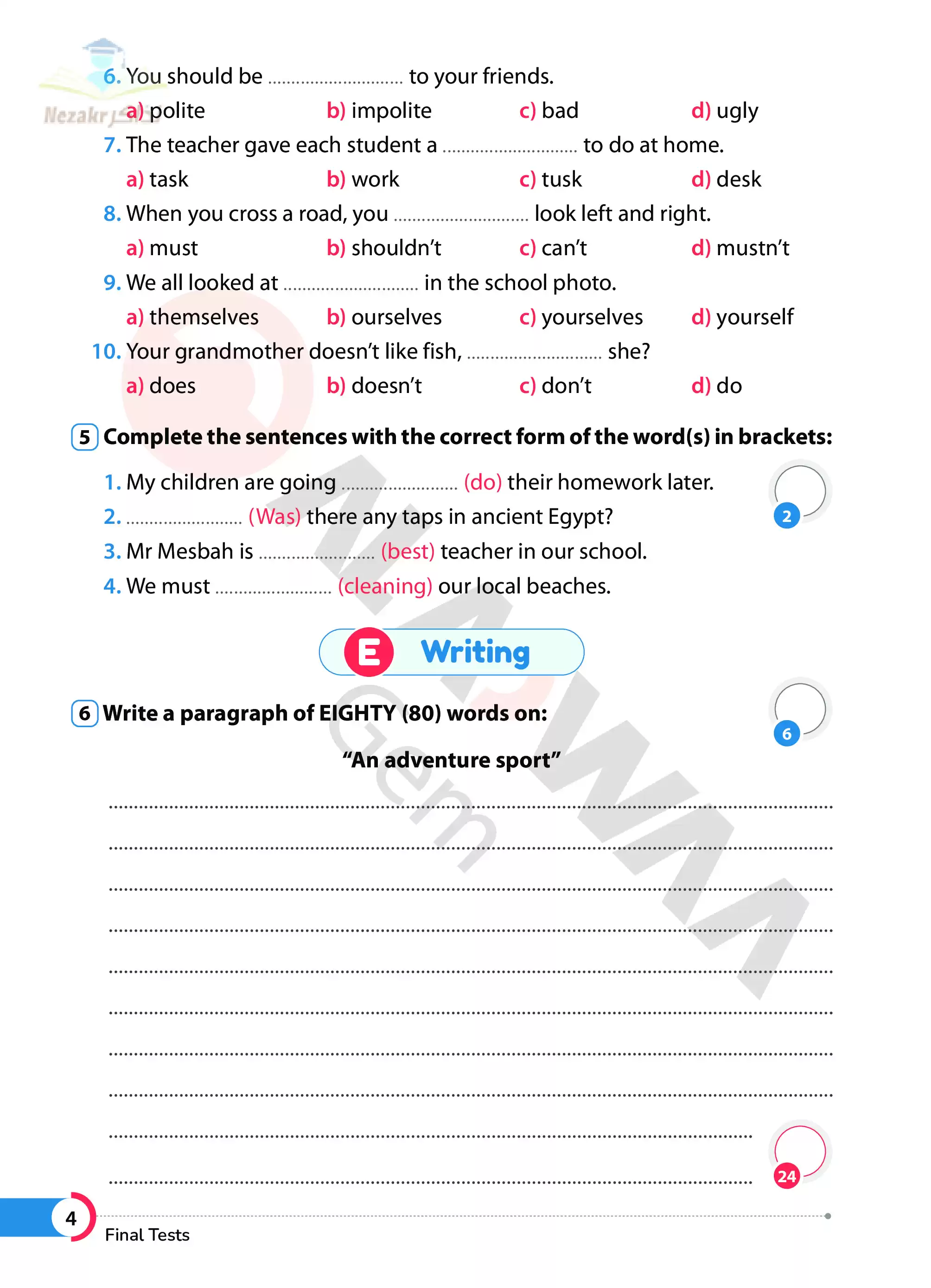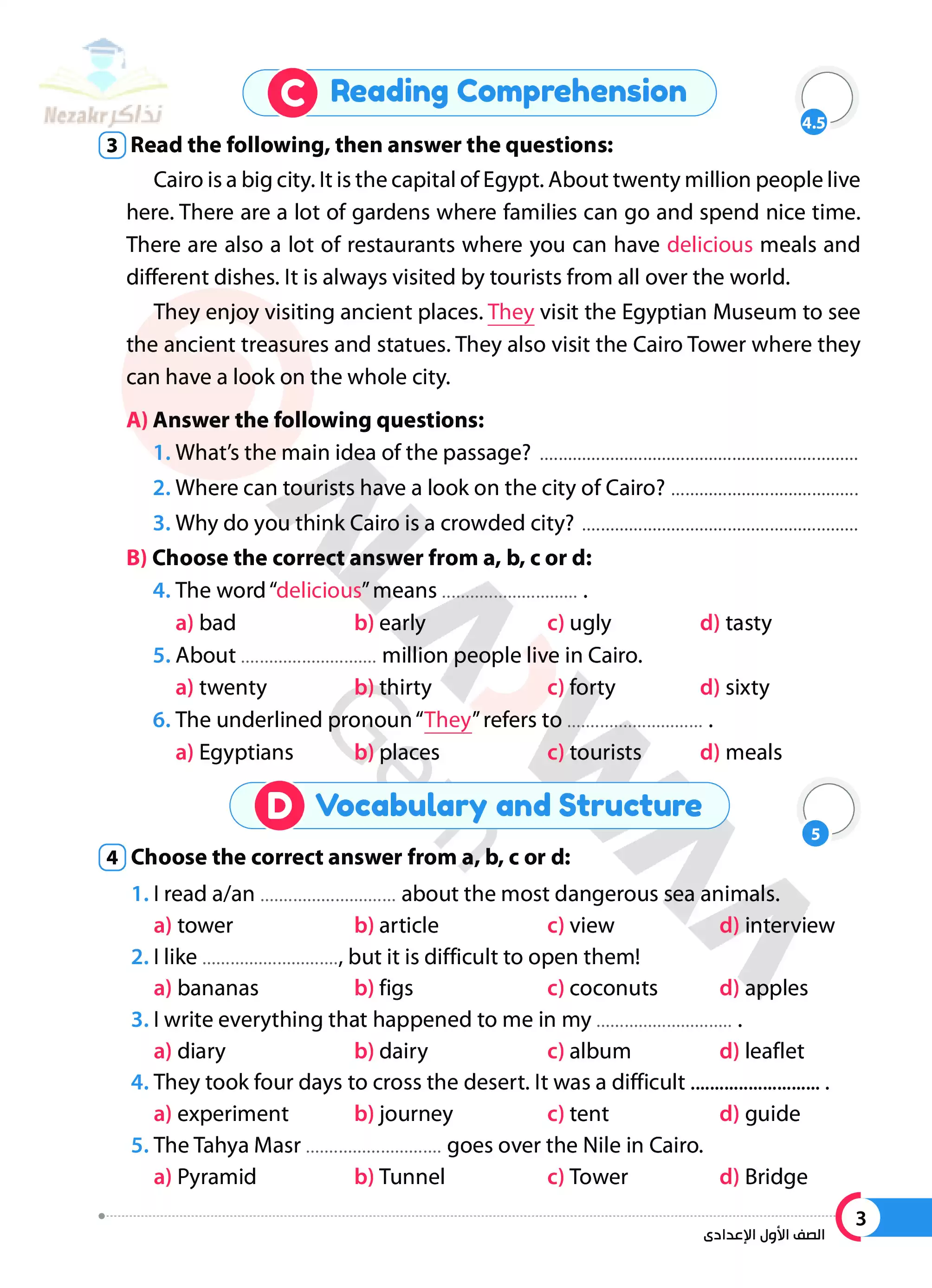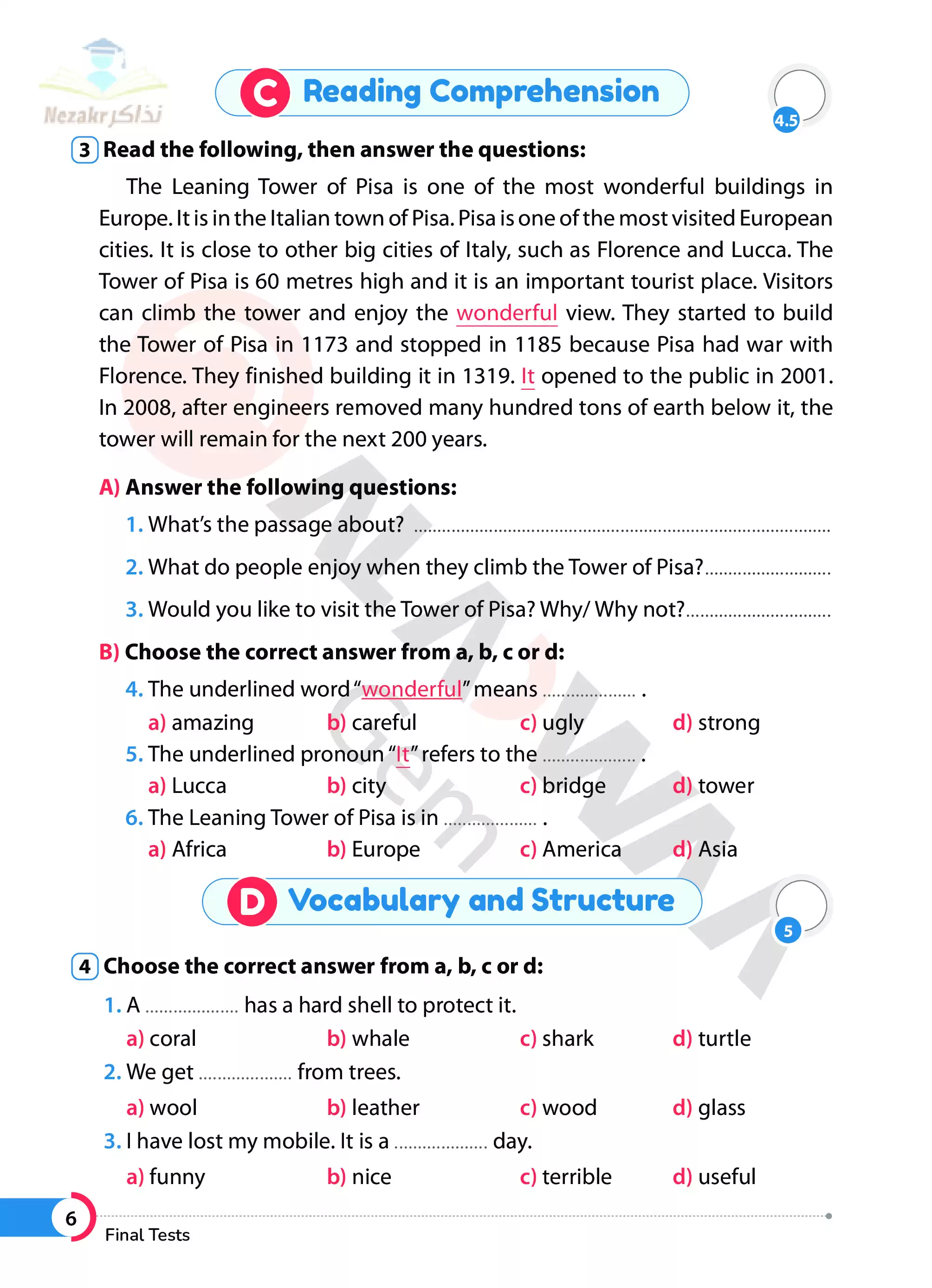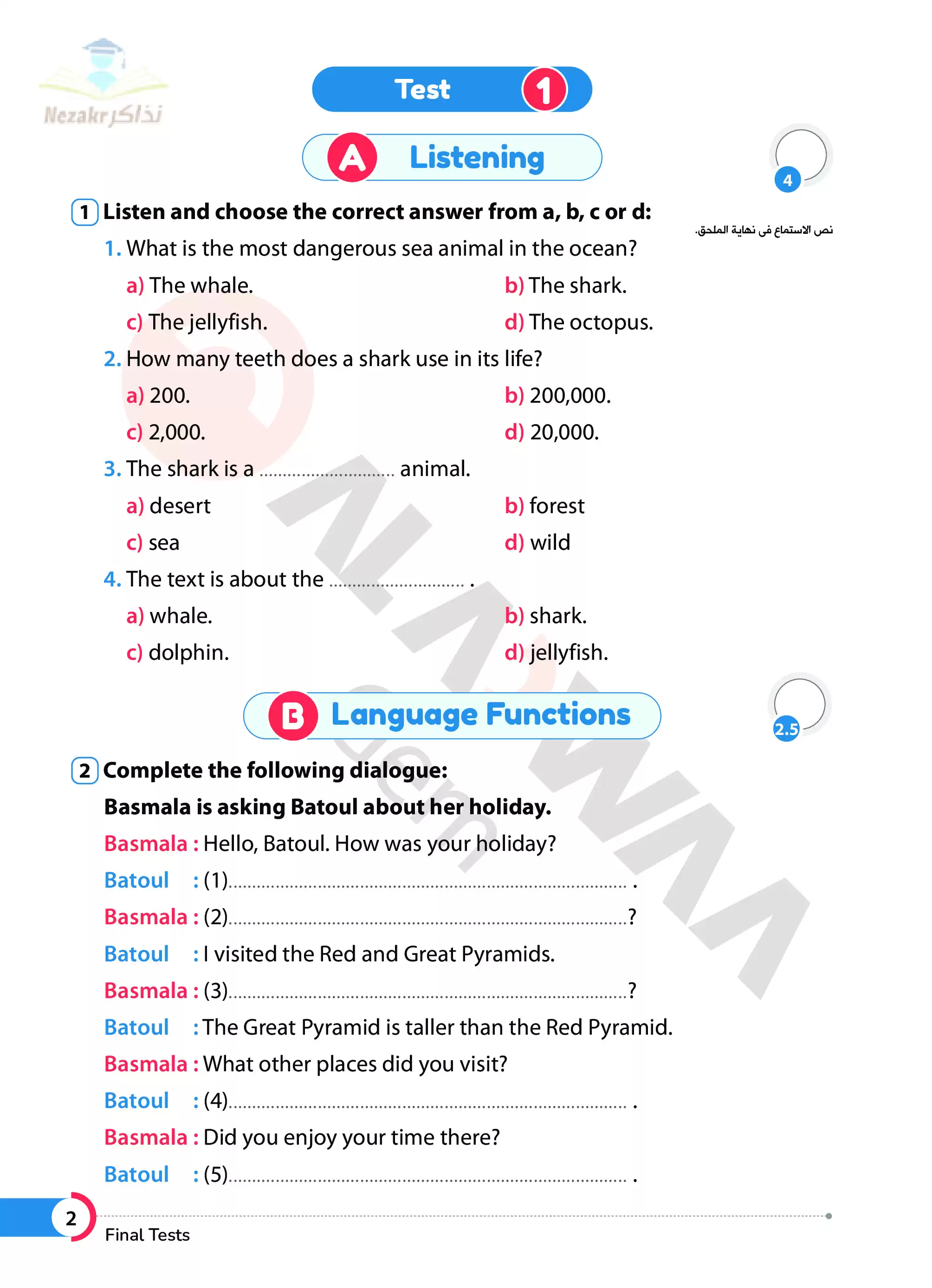 | بيانات الملف: (نماذج امتحانات الأضواء النهائية في اللغة الإنجليزية للصف الأول الاعدادي الترم الثاني - Nezakr) | |