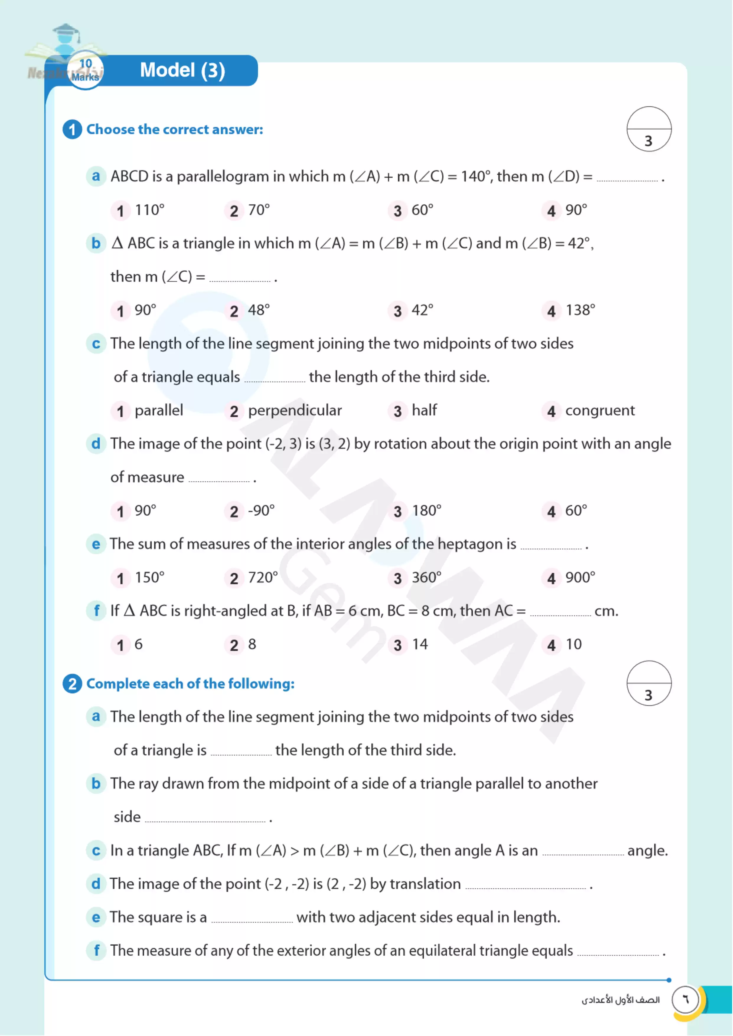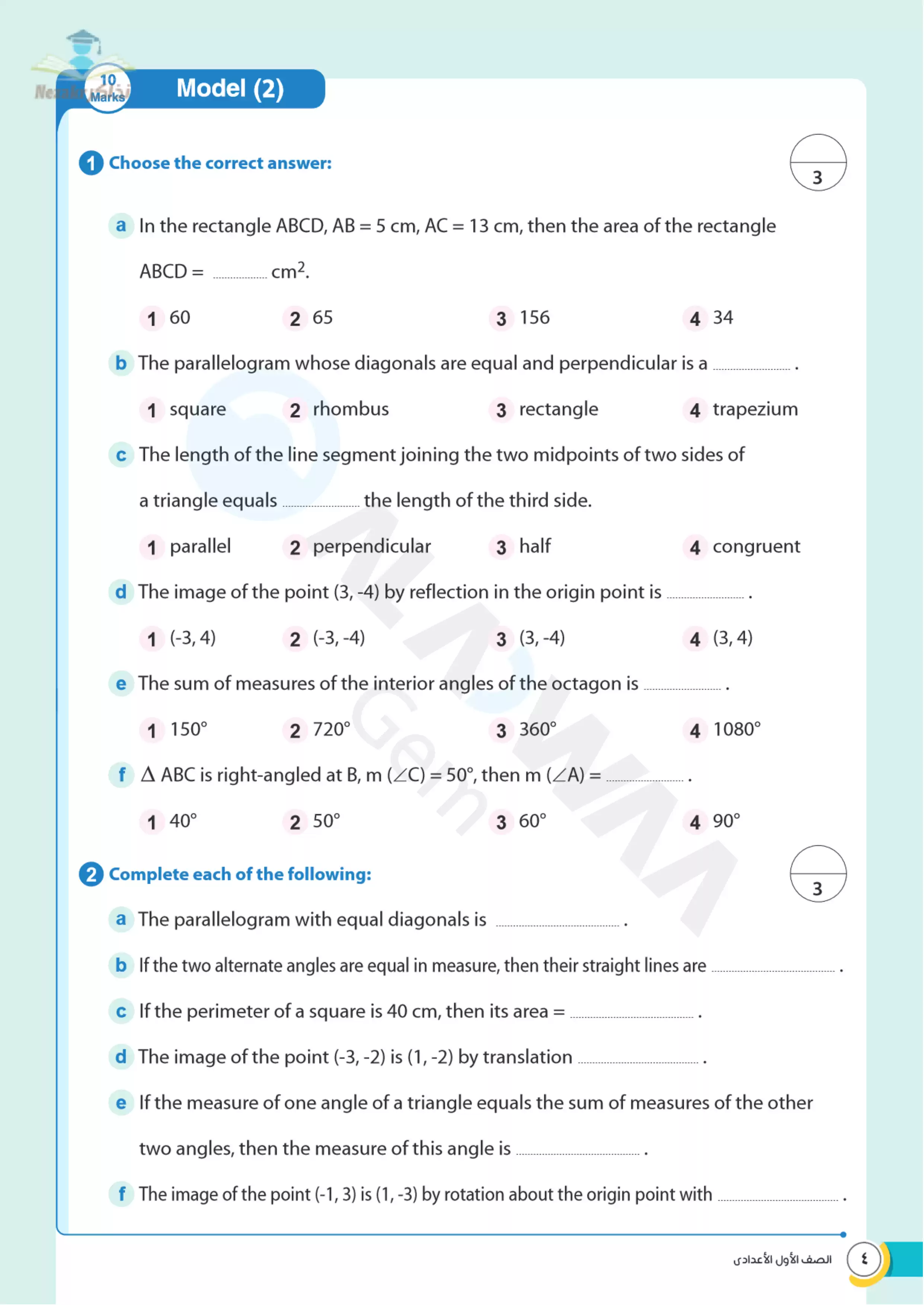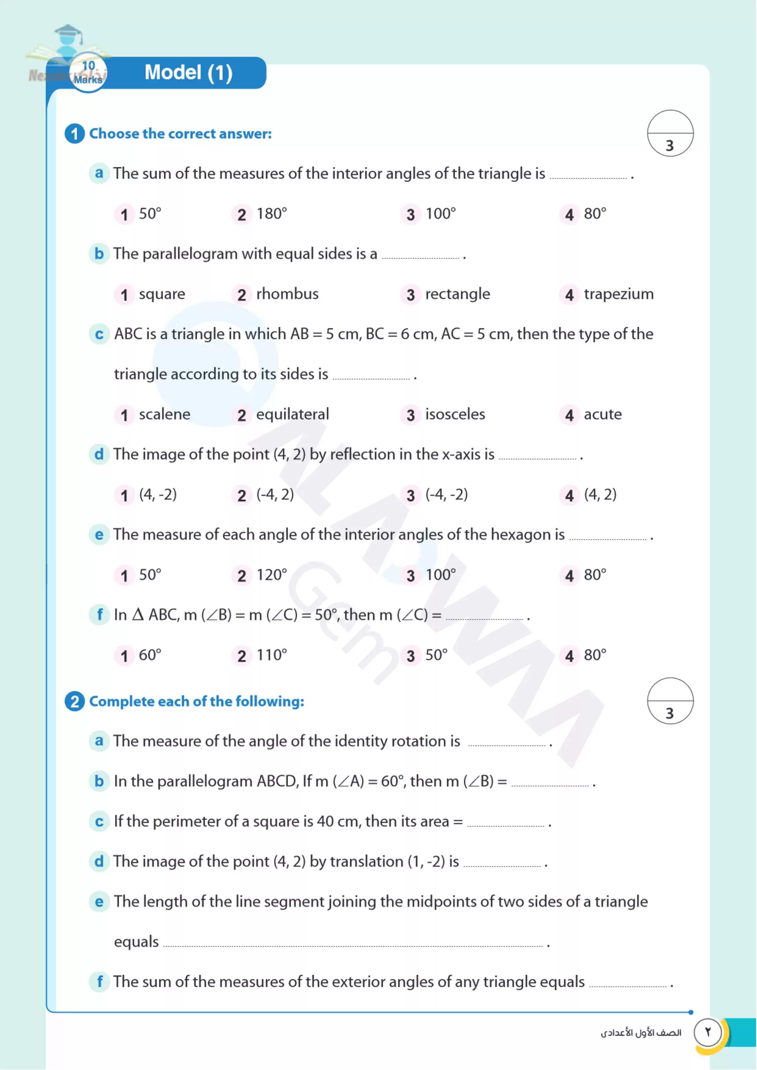 | بيانات الملف: (نماذج اختبارات الأضواء النهائية في مادة الماث Math فرع الهندسة للصف الأول الإعدادي الترم الثاني - Nezakr) | |