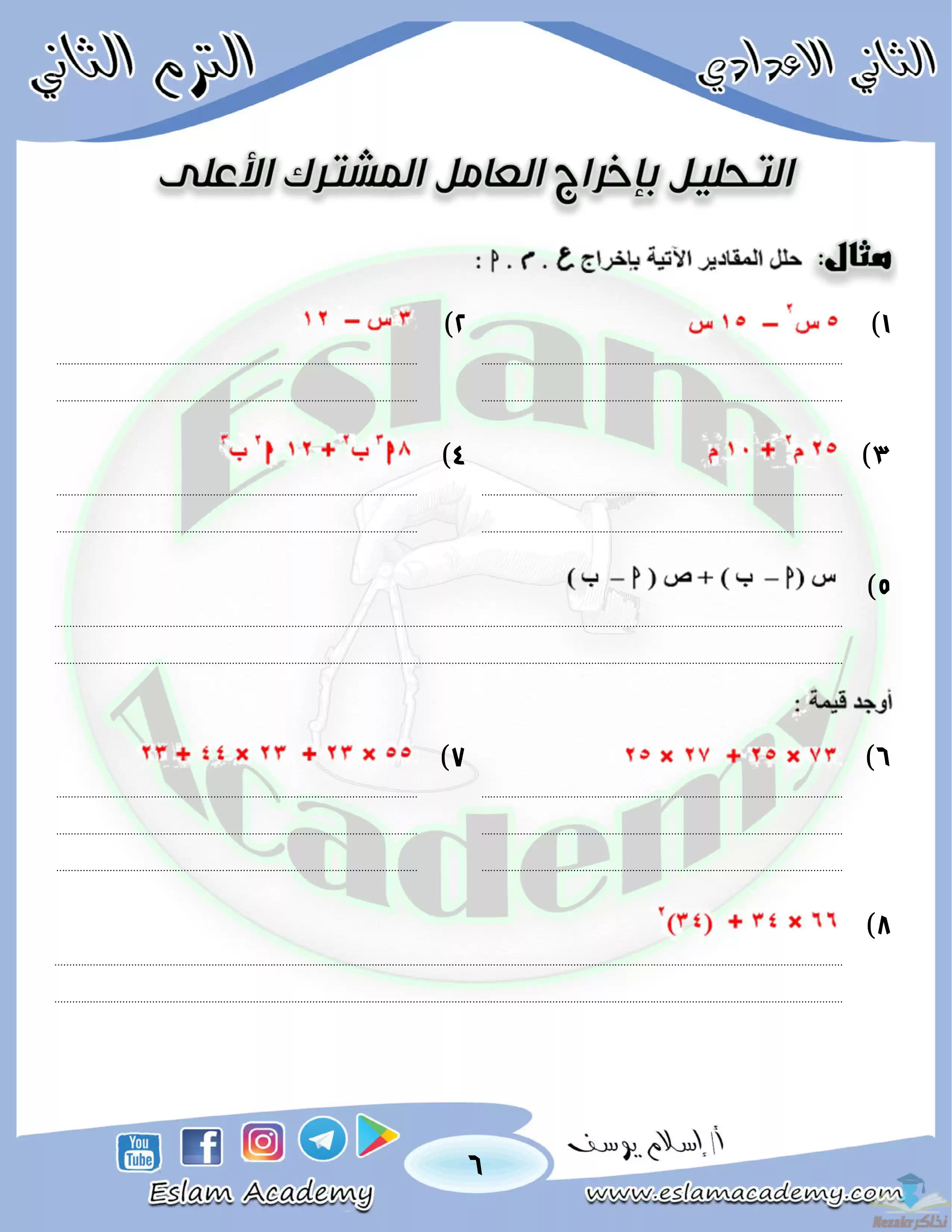 صفحة 6 من 80 صفحة من ملف: مذكرة رياضيات للصف الثانى الاعدادى الترم الثانى