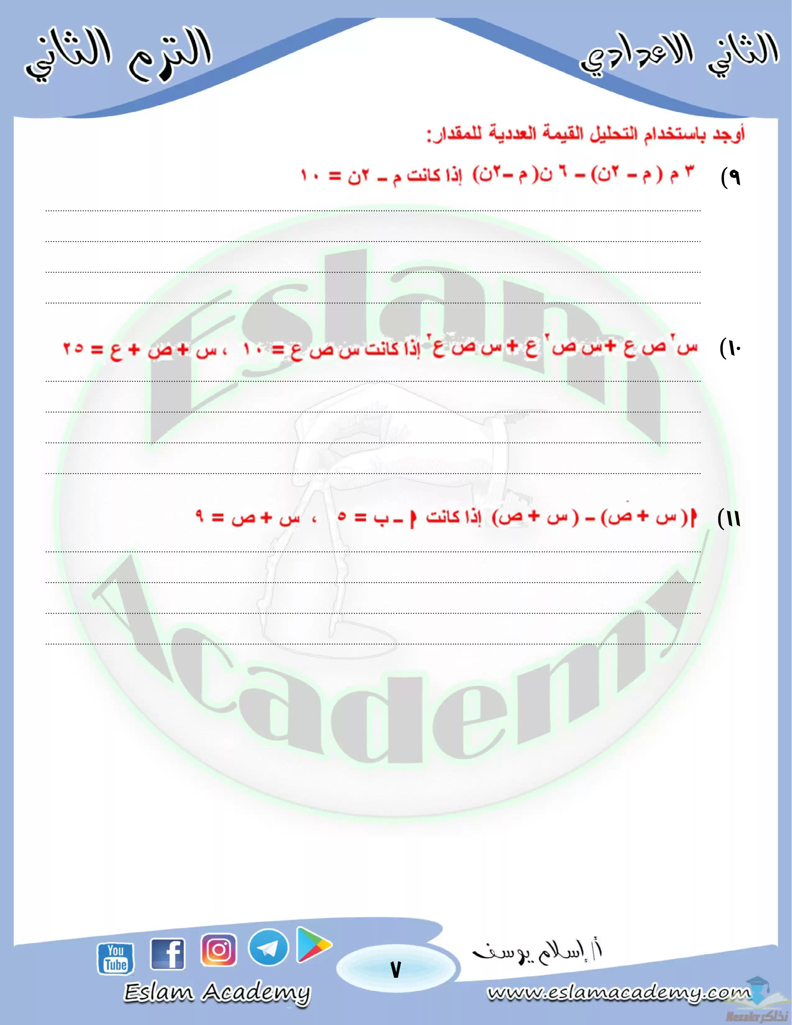 - رياضيات الصف الثاني الإعدادي الفصل الدراسي الثاني