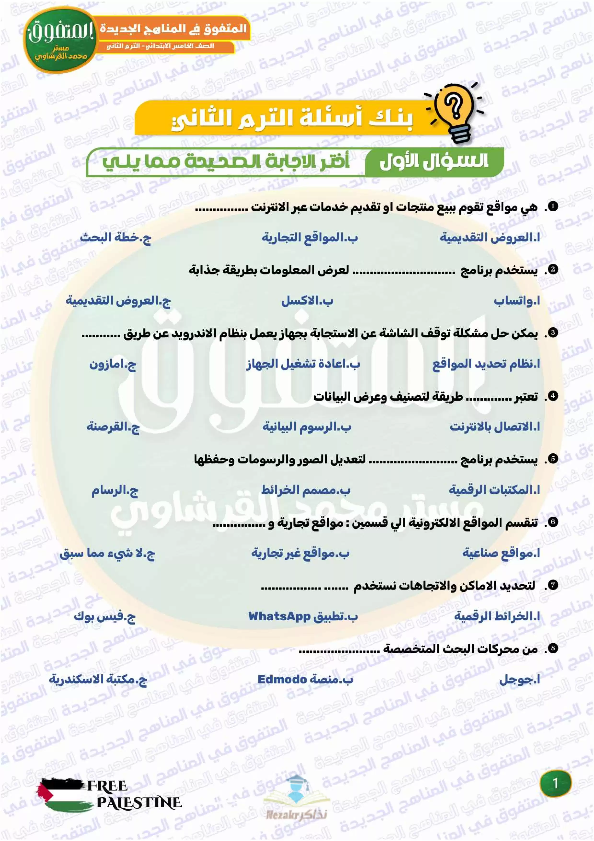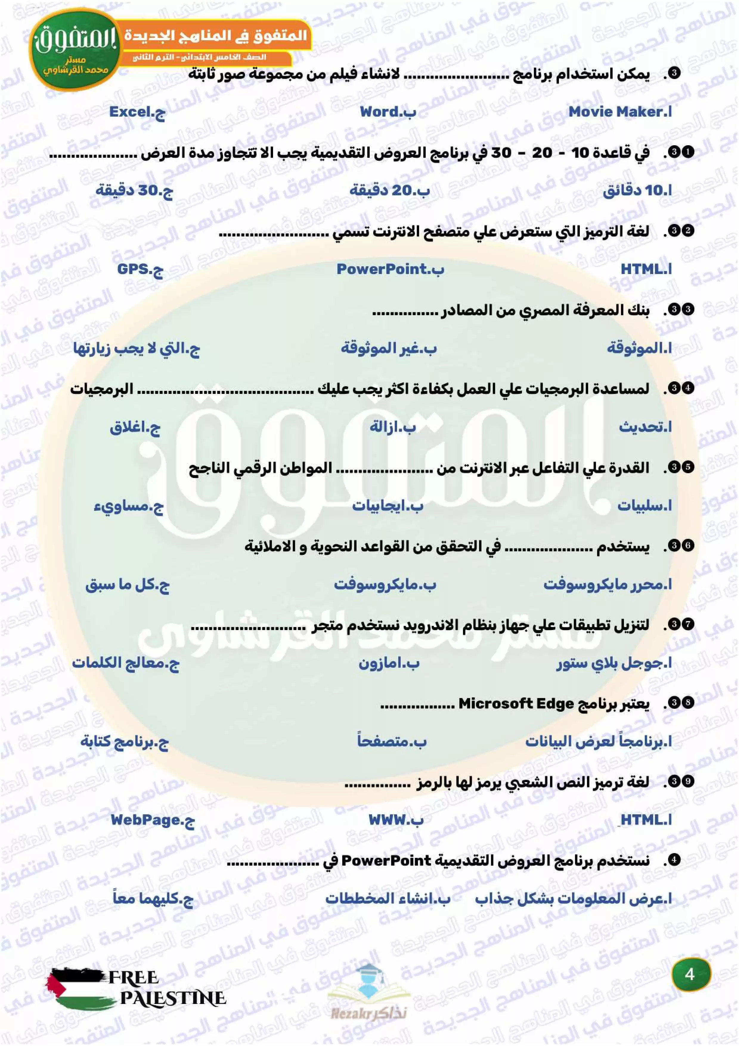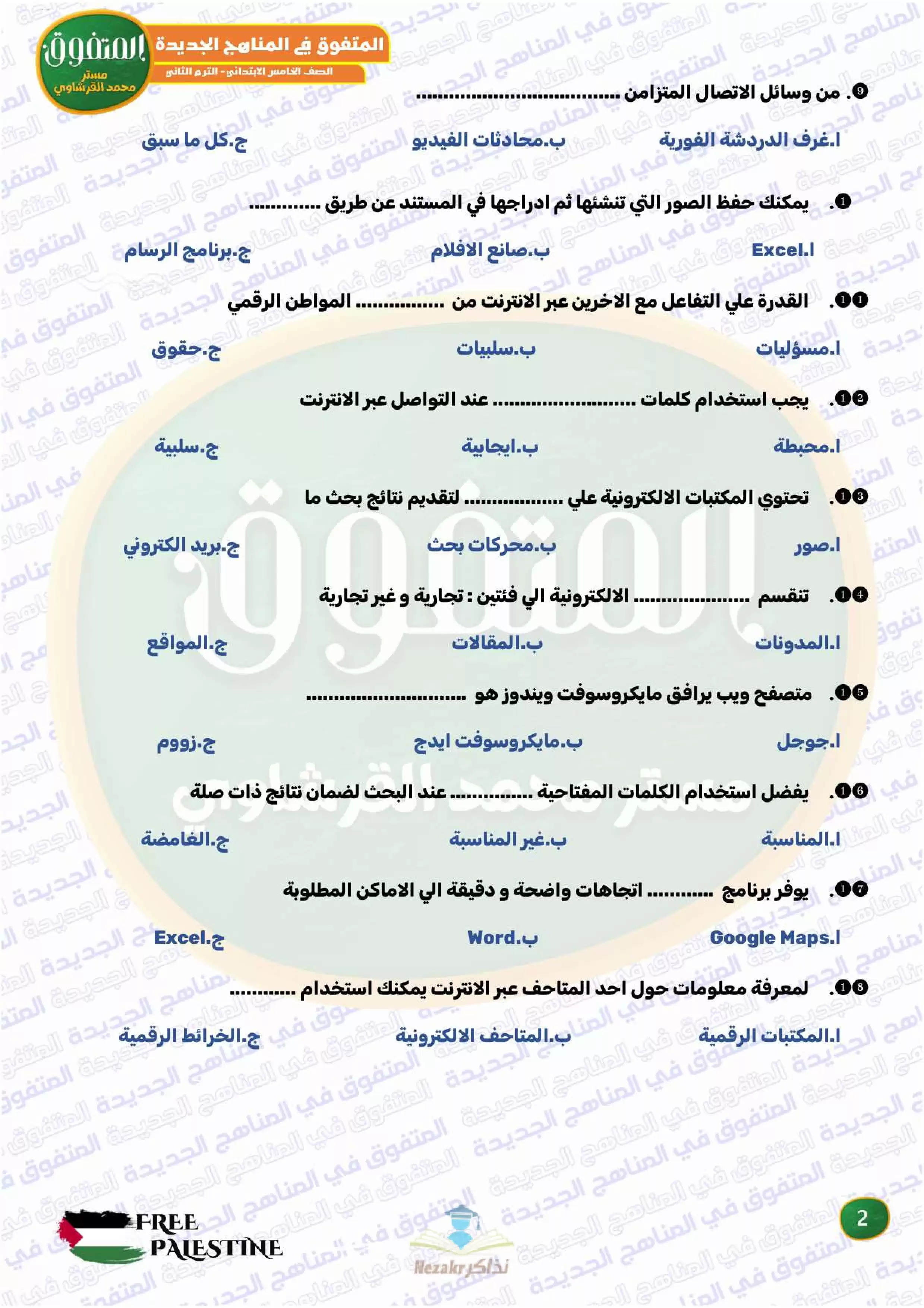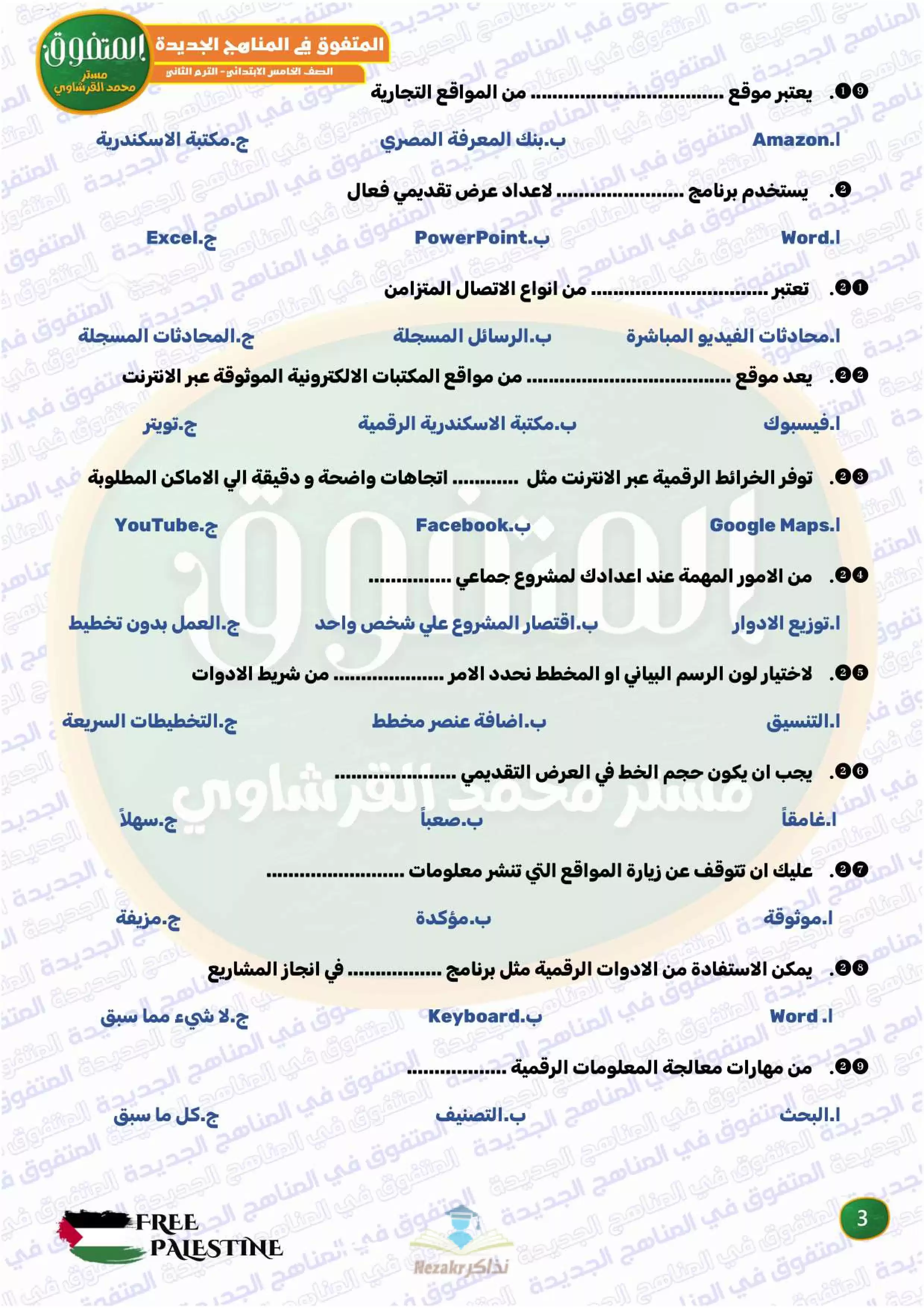 | بيانات الملف: (مراجعة المتفوق النهائية في تكنولوجيا المعلومات والاتصالات للصف الخامس الابتدائي الترم الثاني - Nezakr) | |