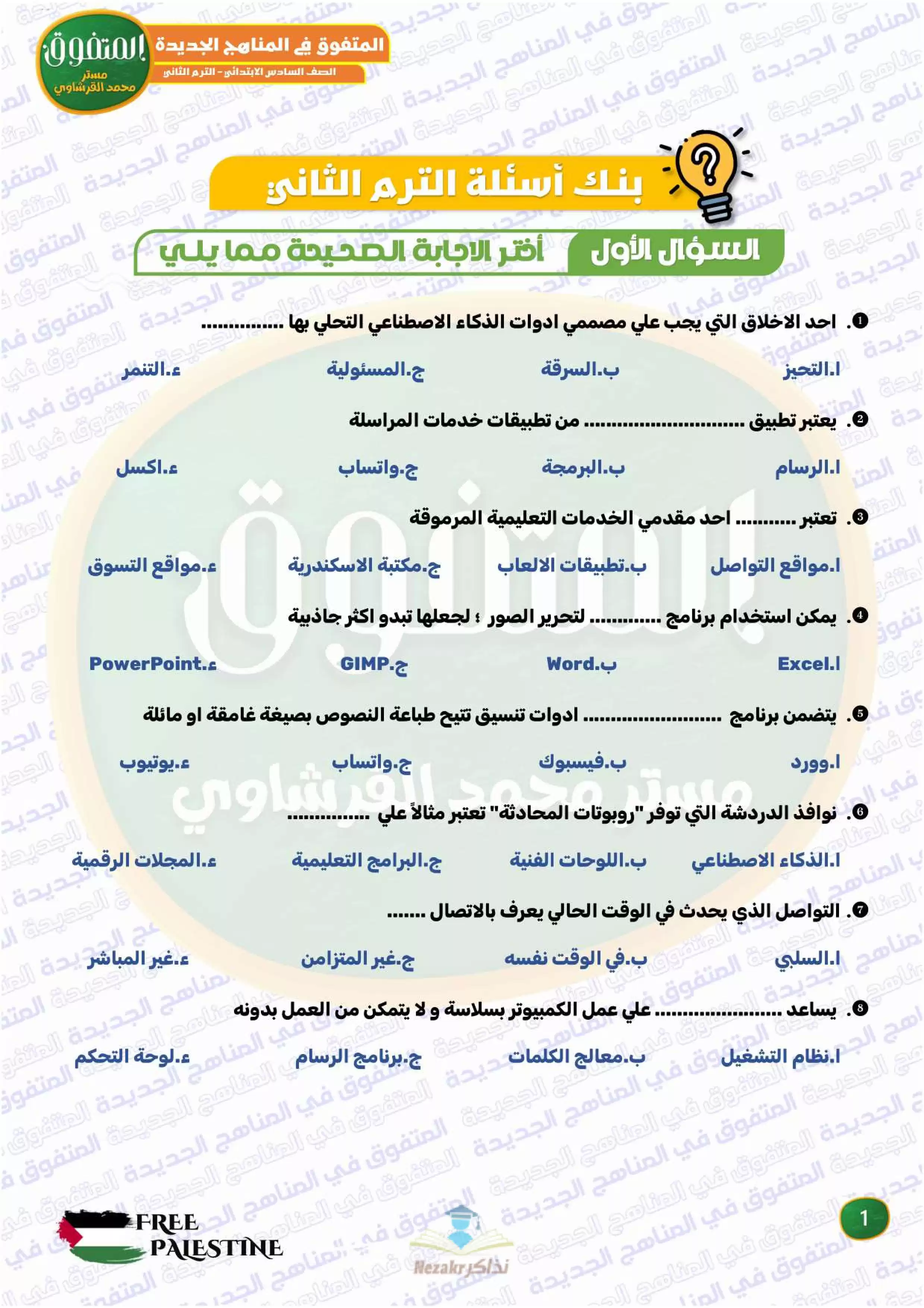 • بنك أسئلة المتفوق في تكنولوجيا المعلومات