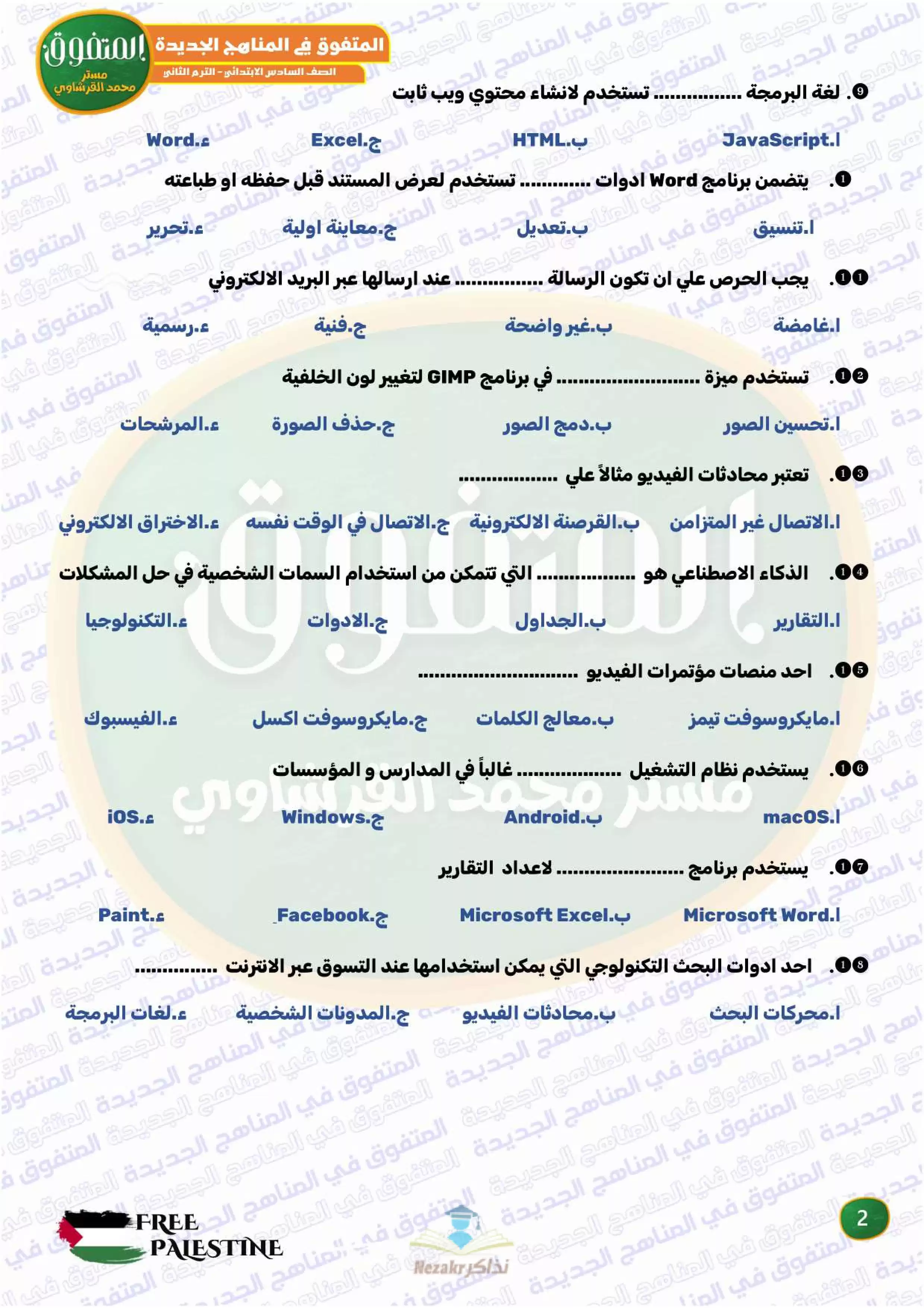 صفحة 2 من 34 صفحة من ملف: مراجعة المتفوق النهائية في تكنولوجيا المعلومات والاتصالات للصف السادس الابتدائي الترم الثاني - Nezakr