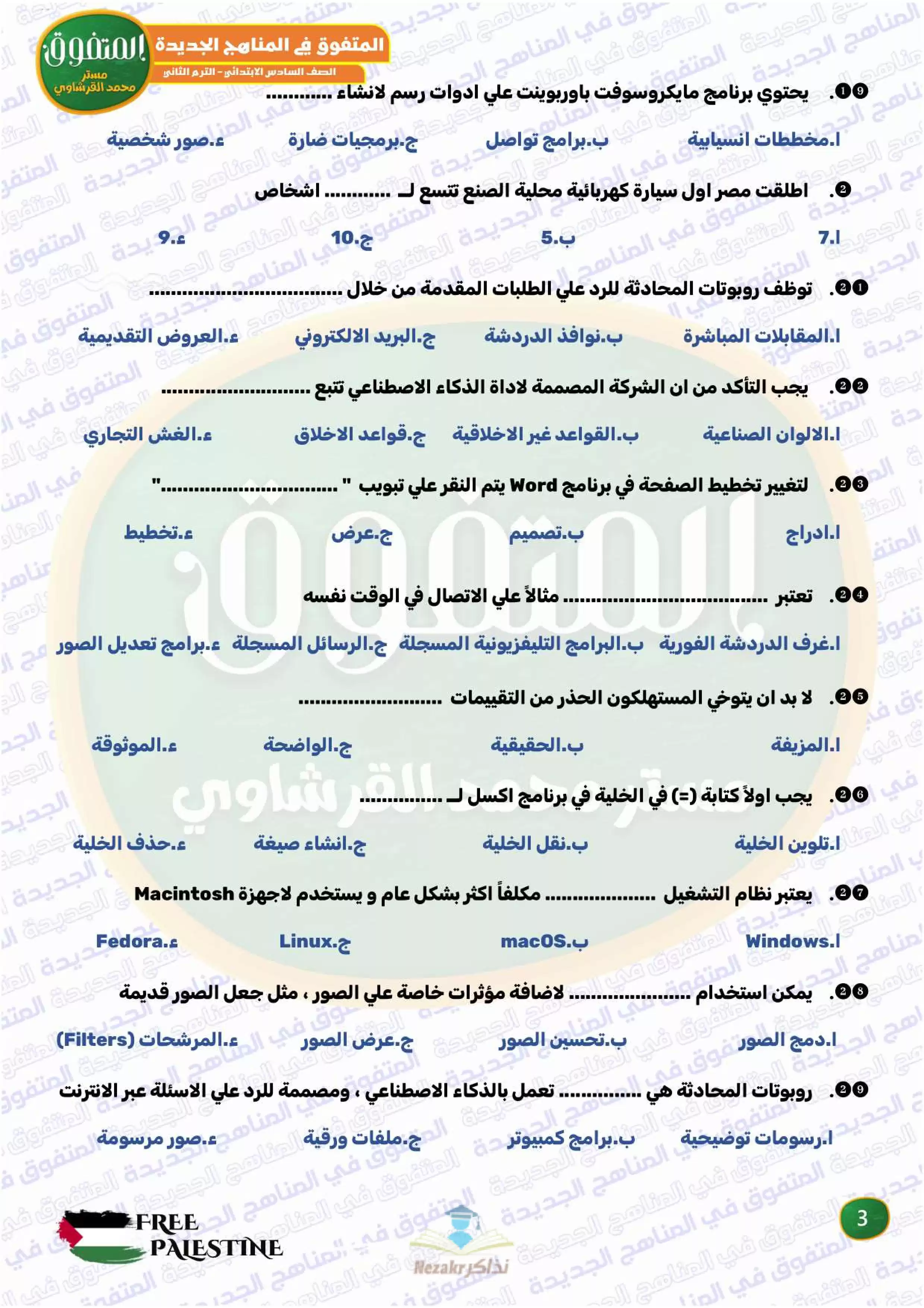 صفحة 3 من 34 صفحة من ملف: مراجعة المتفوق النهائية في تكنولوجيا المعلومات والاتصالات للصف السادس الابتدائي الترم الثاني - Nezakr