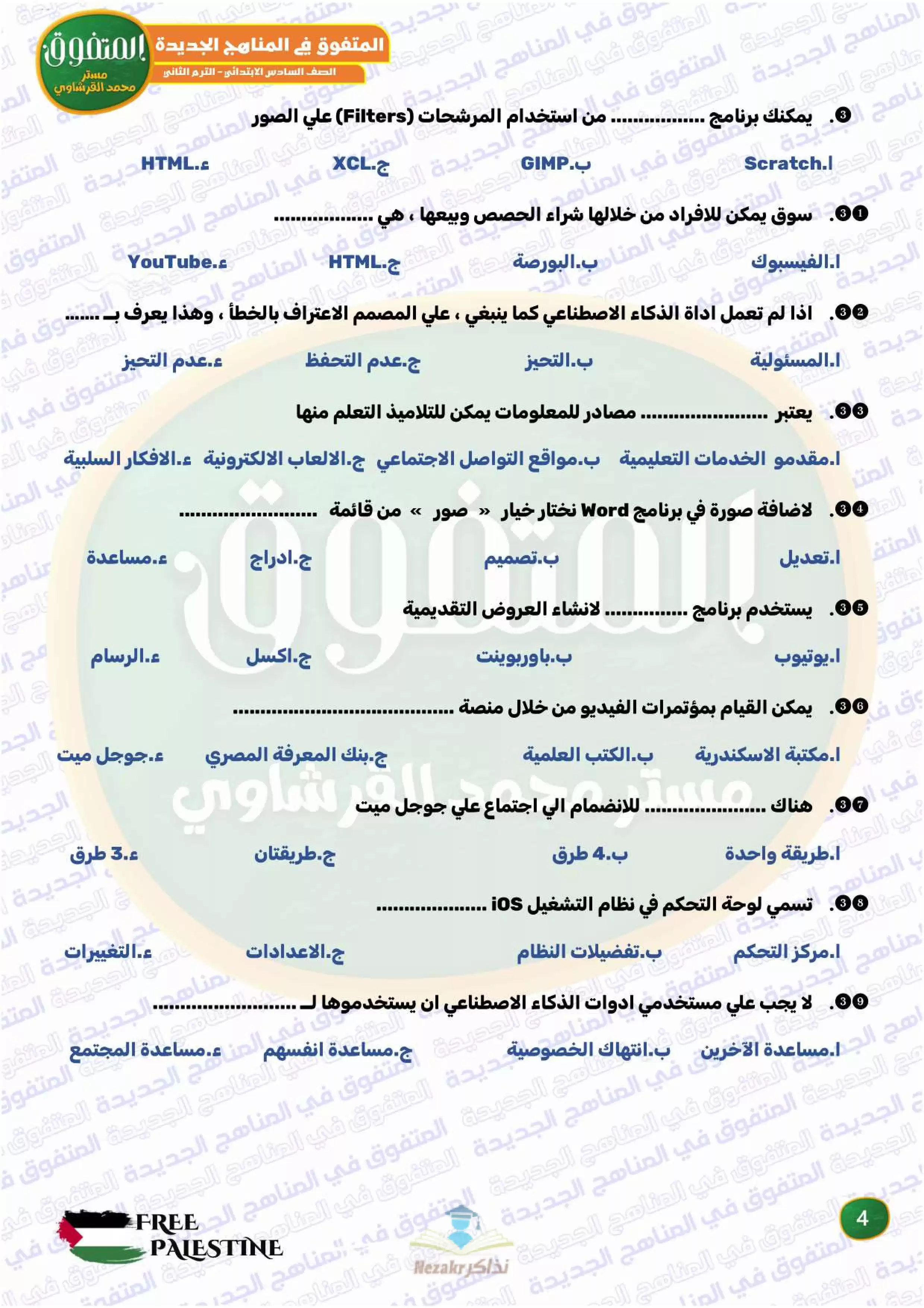 صفحة 4 من 34 صفحة من ملف: مراجعة المتفوق النهائية في تكنولوجيا المعلومات والاتصالات للصف السادس الابتدائي الترم الثاني - Nezakr