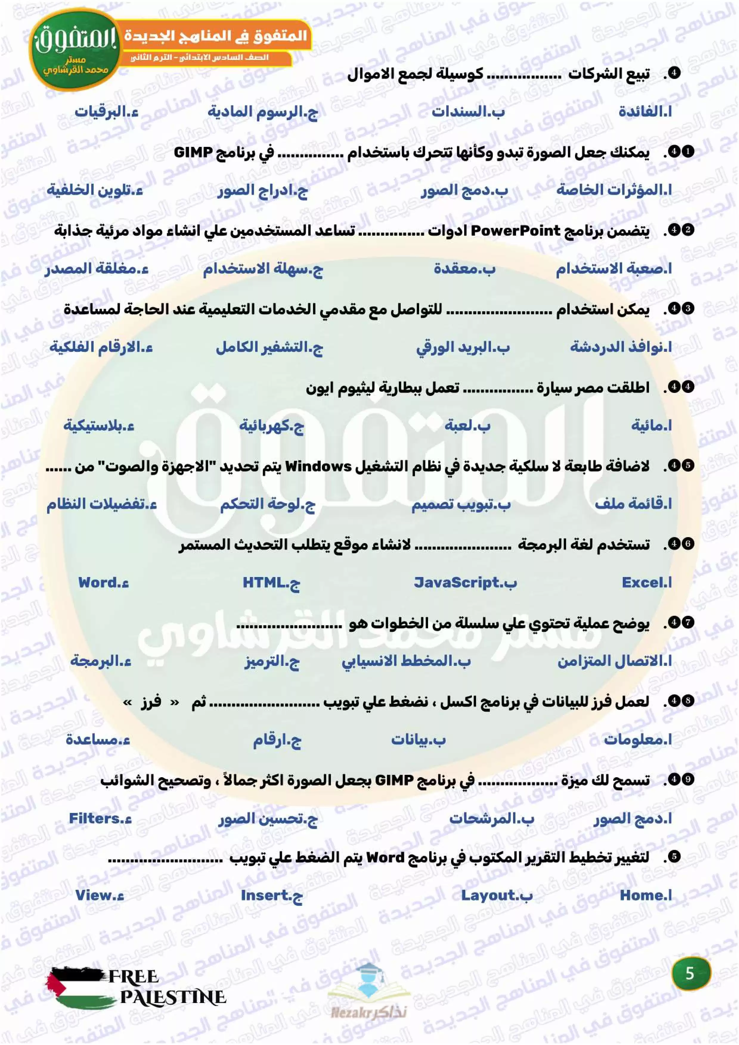صفحة 5 من 34 صفحة من ملف: مراجعة المتفوق النهائية في تكنولوجيا المعلومات والاتصالات للصف السادس الابتدائي الترم الثاني - Nezakr