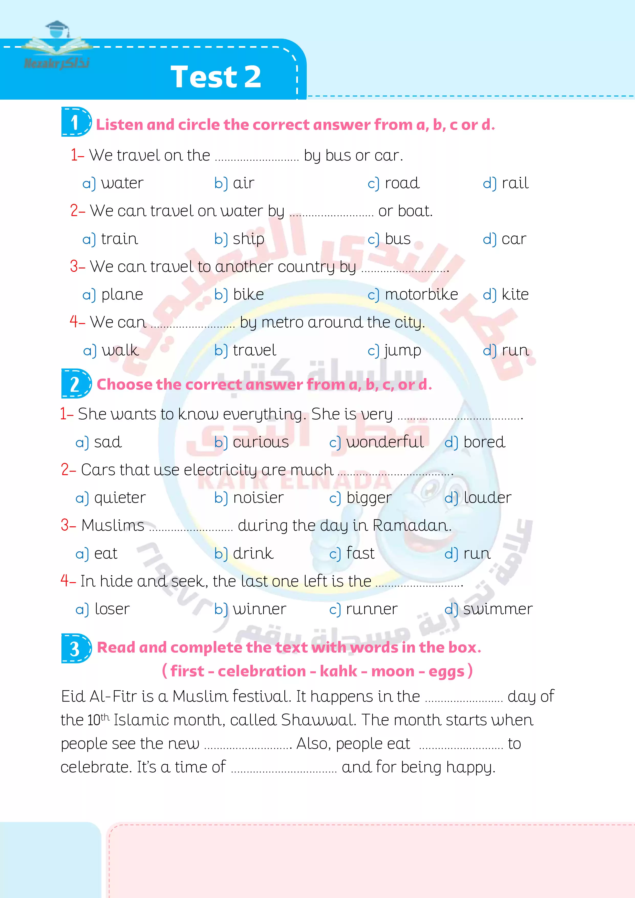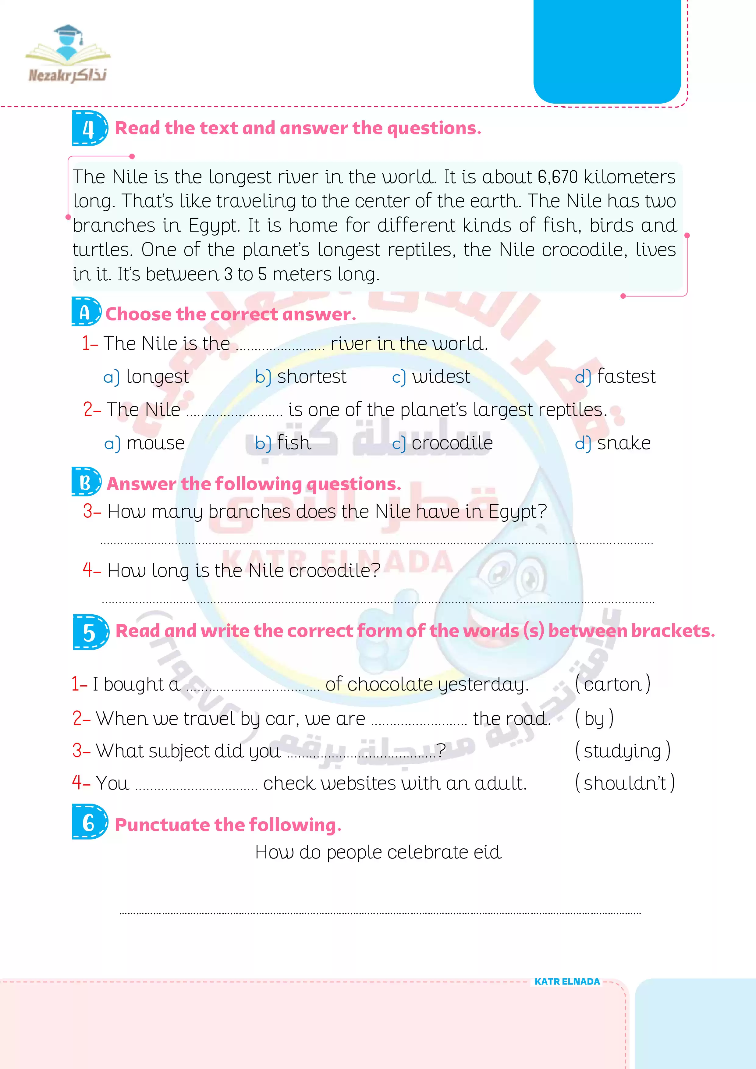| بيانات الملف: (نماذج امتحانات اللغة الإنجليزية للصف الرابع الابتدائي الترم الثاني من قطر الندى - Nezakr) | |
