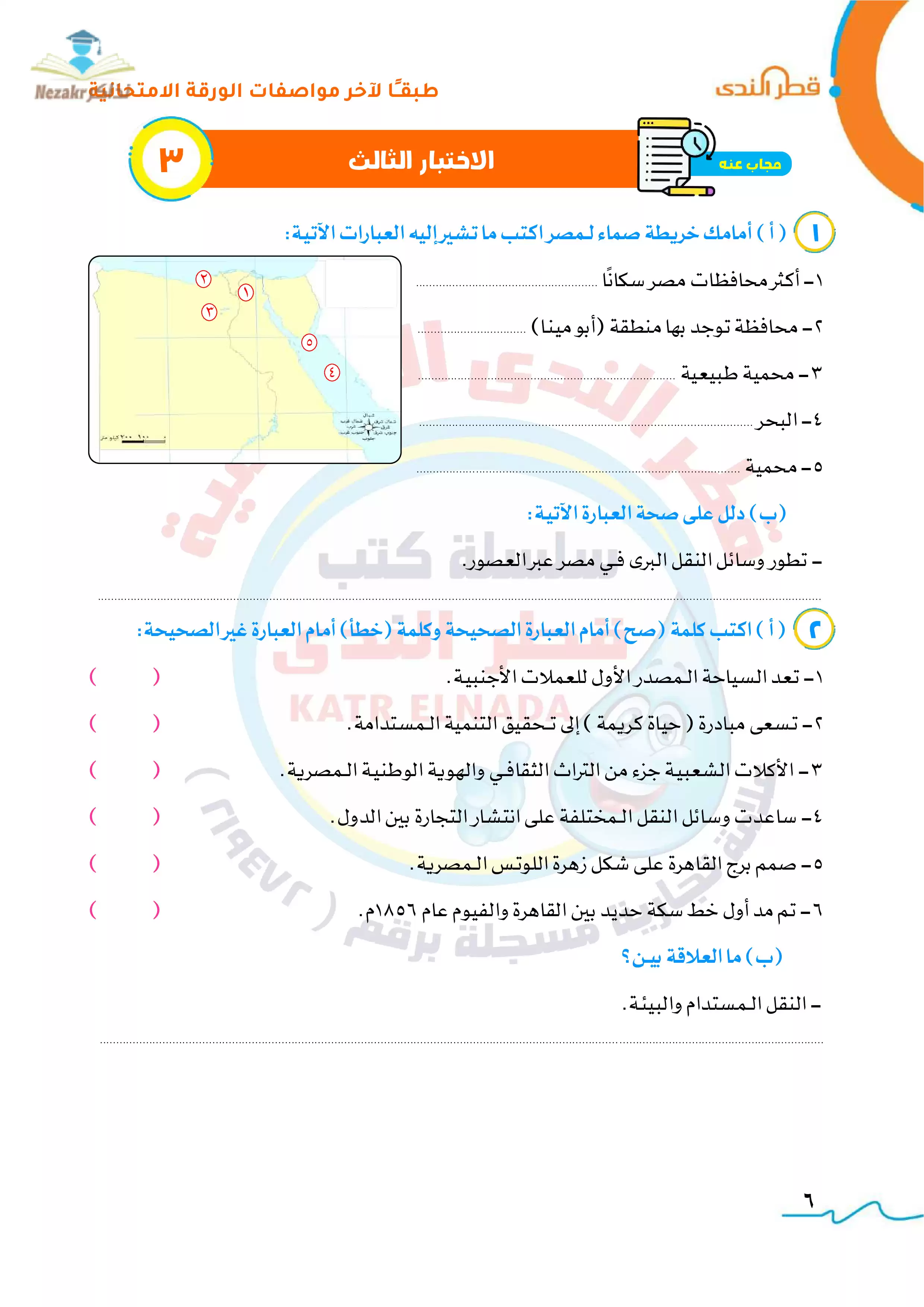صفحة 6 من 21 صفحة من ملف: نماذج امتحانات الدراسات الاجتماعية للصف الرابع الابتدائي الترم الثاني من قطر الندى - Nezakr