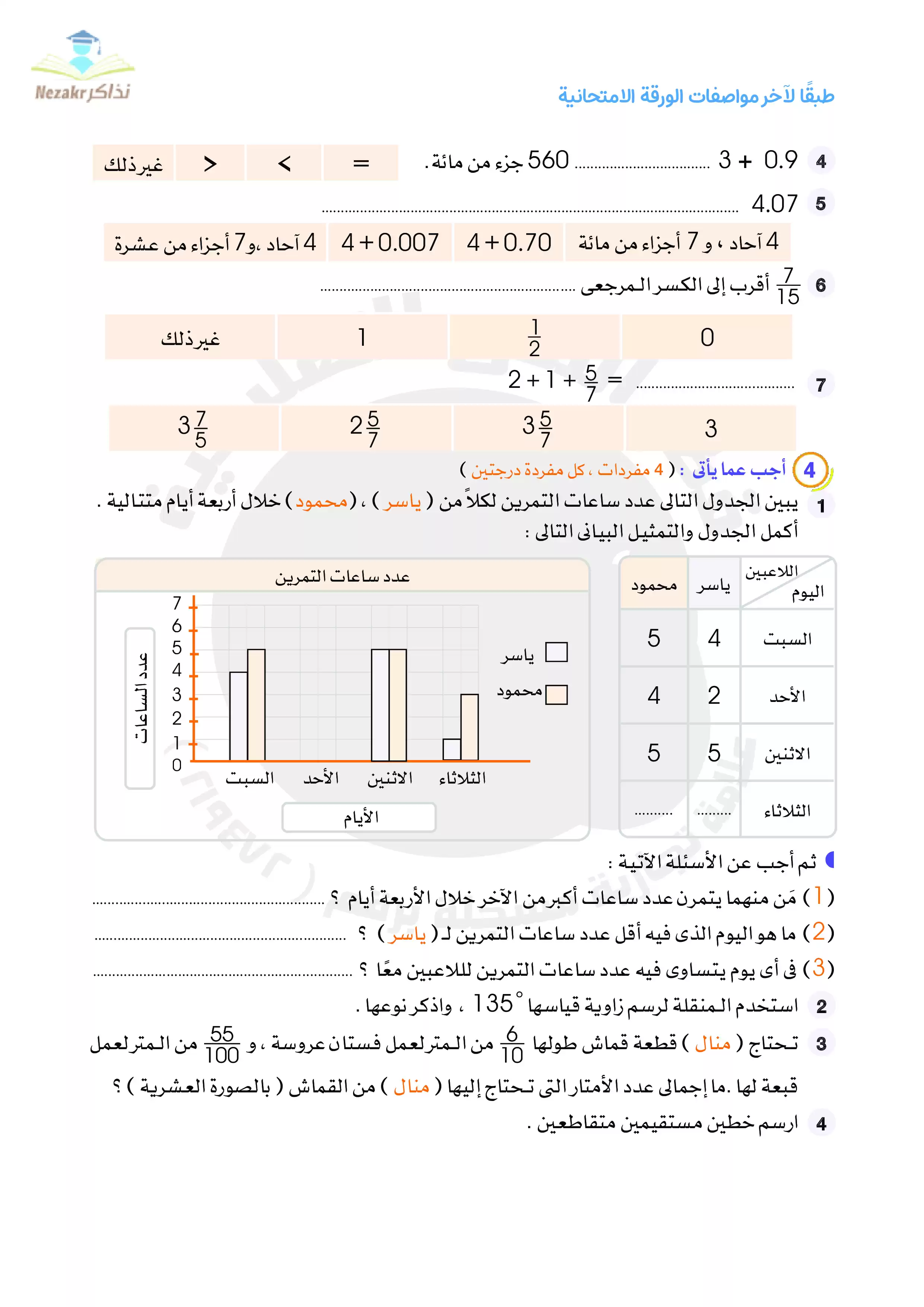 صفحة 5 من 12 صفحة من ملف: نماذج امتحانات الرياضيات للصف الرابع الابتدائي الترم الثاني من قطر الندى - Nezakr