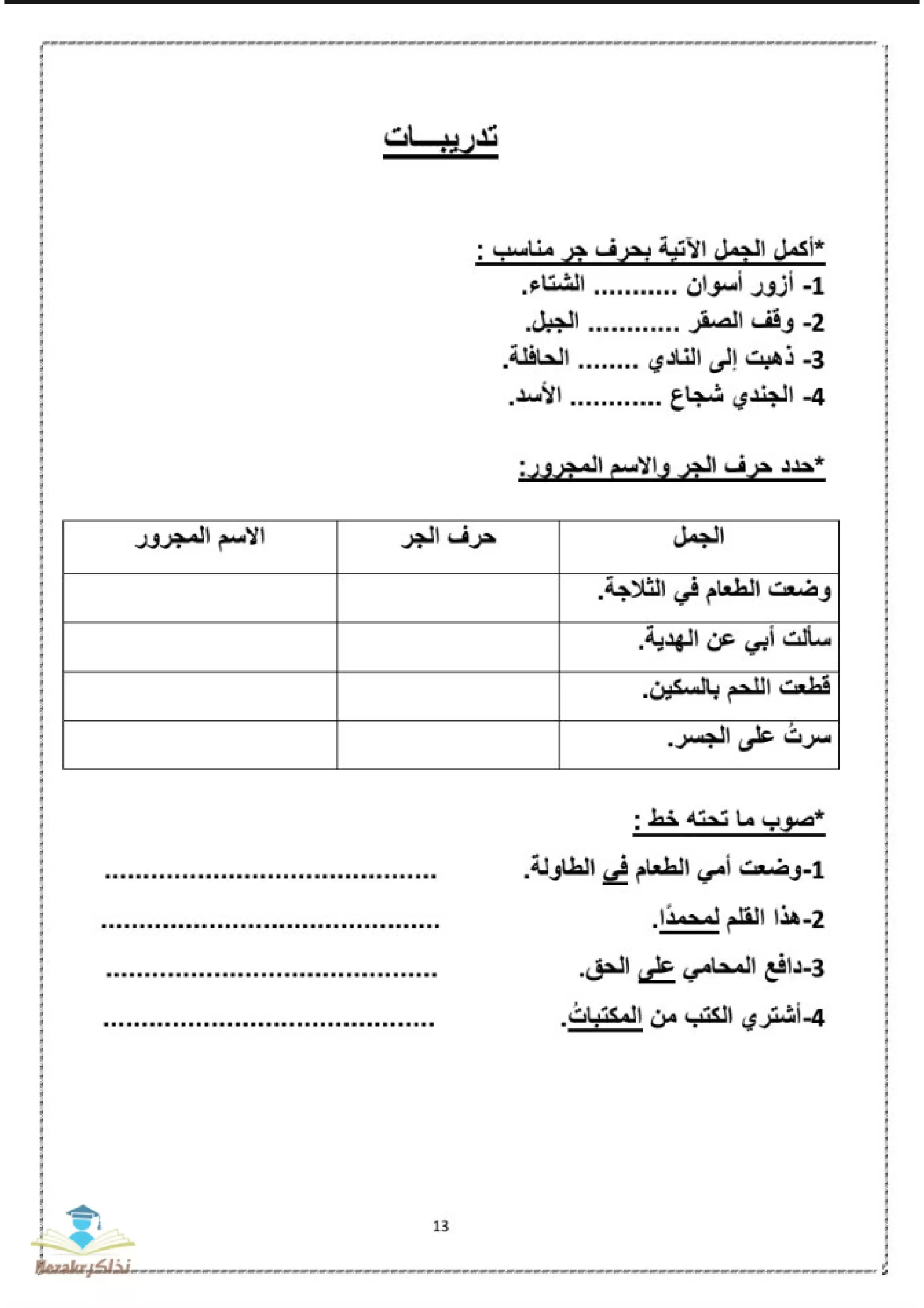 - شرح وتدريبات على الجار والمجرور وحروف الجر
