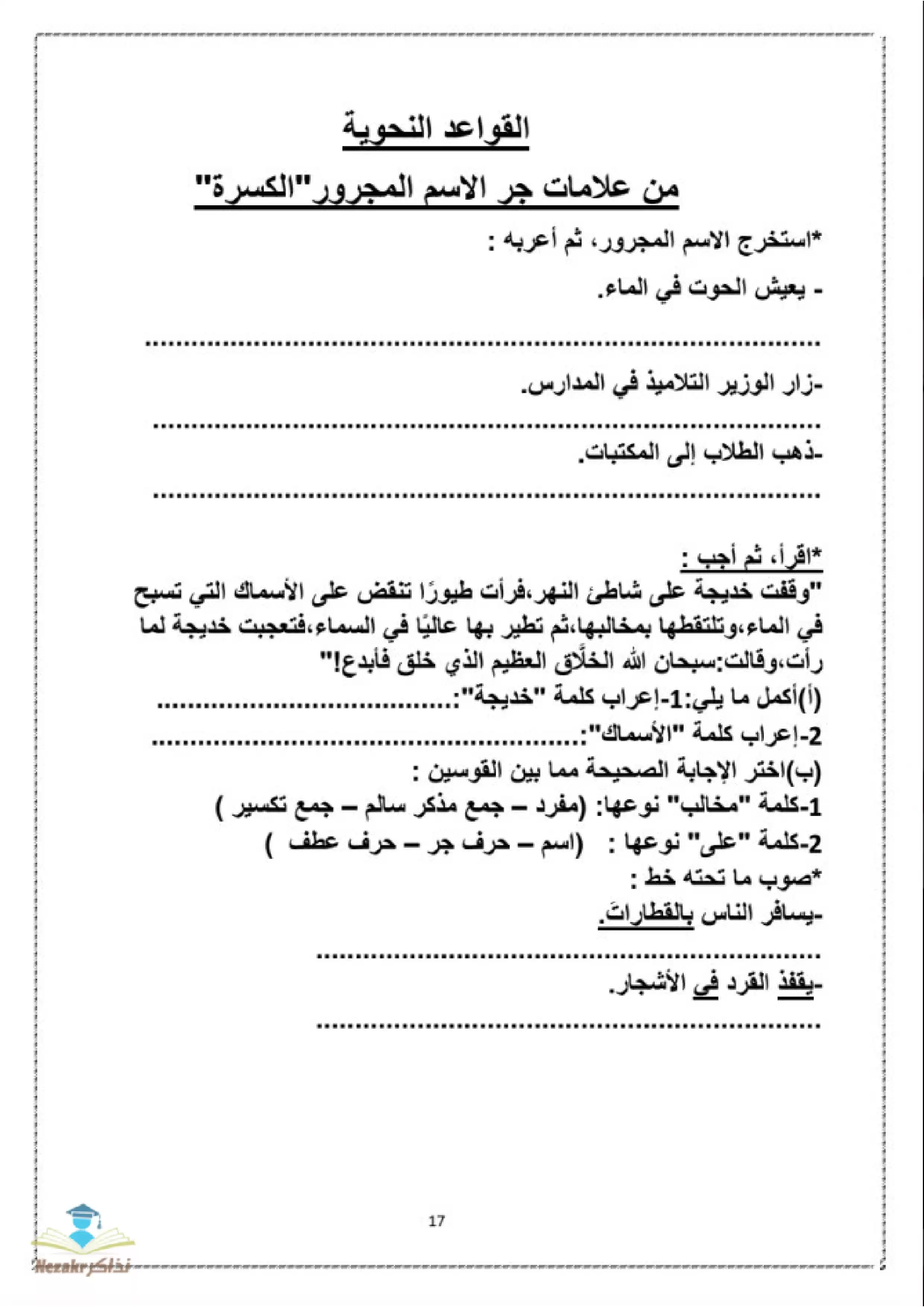 صفحة 1 من 13 صفحة من ملف: مراجعة القواعد النحوية للصف الخامس الابتدائي ترم ثاني - Nezakr