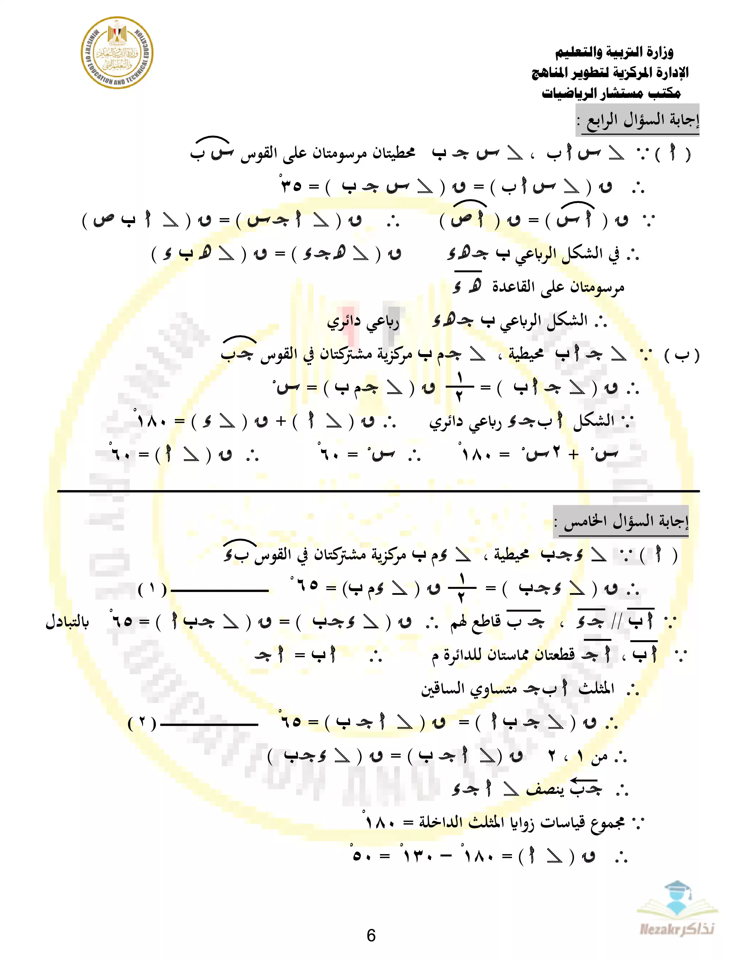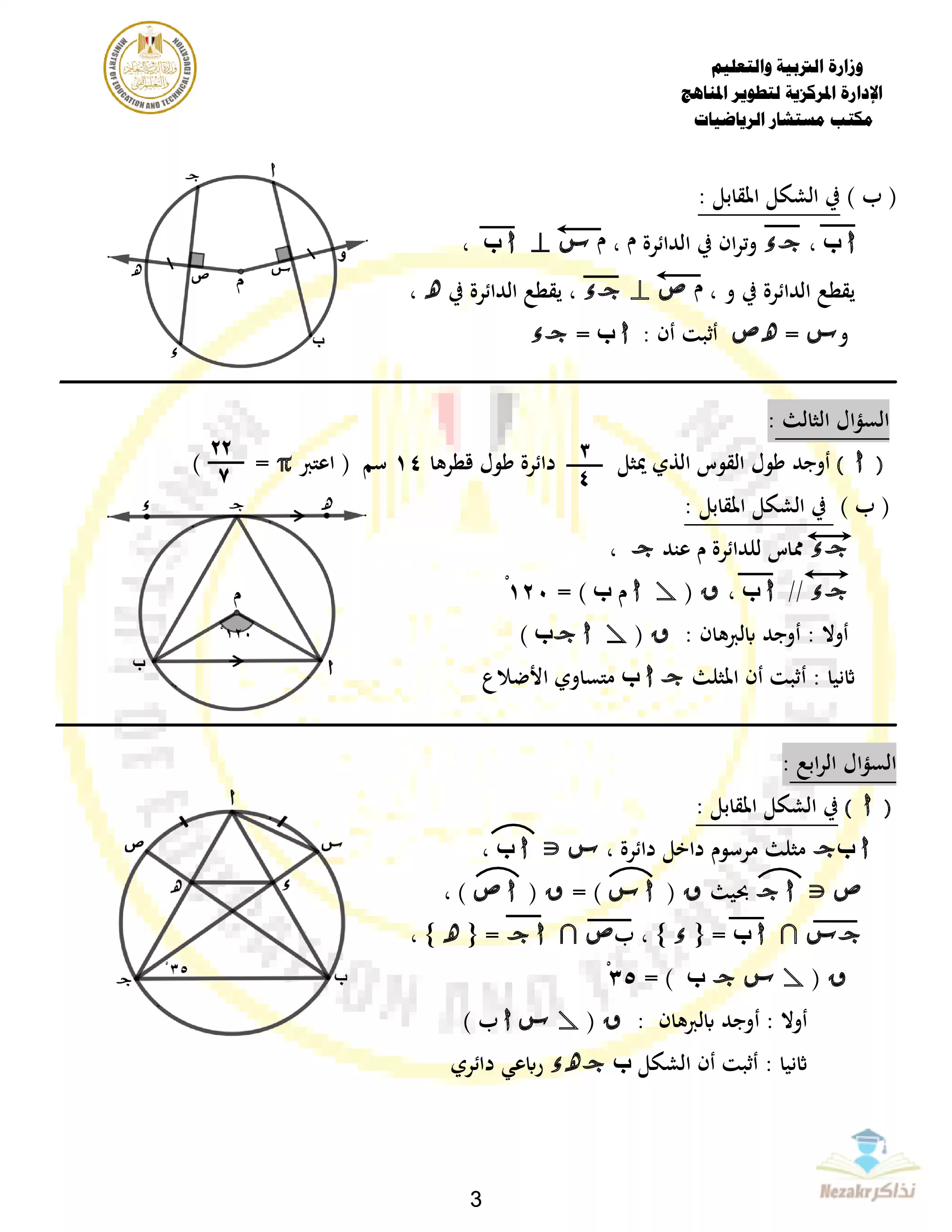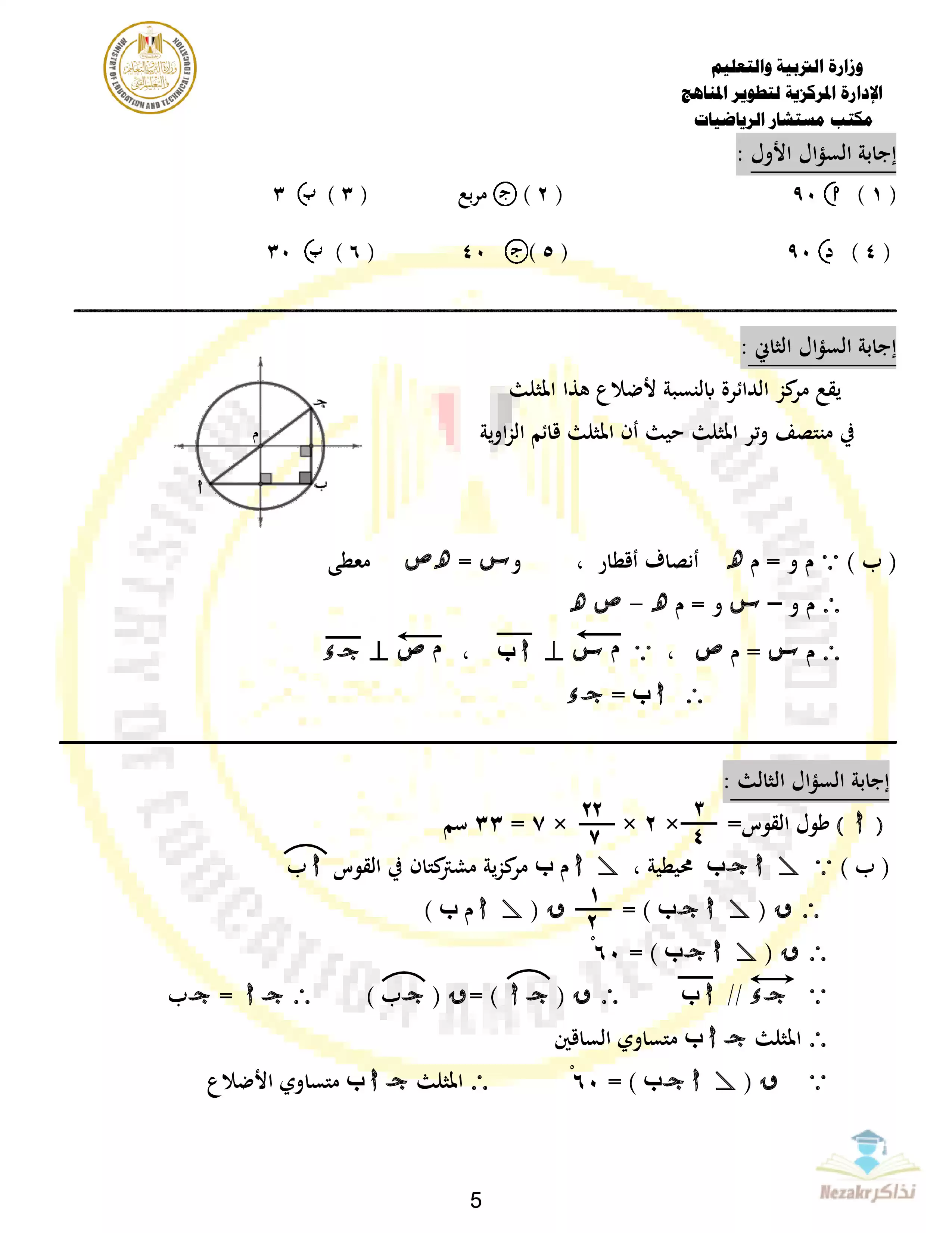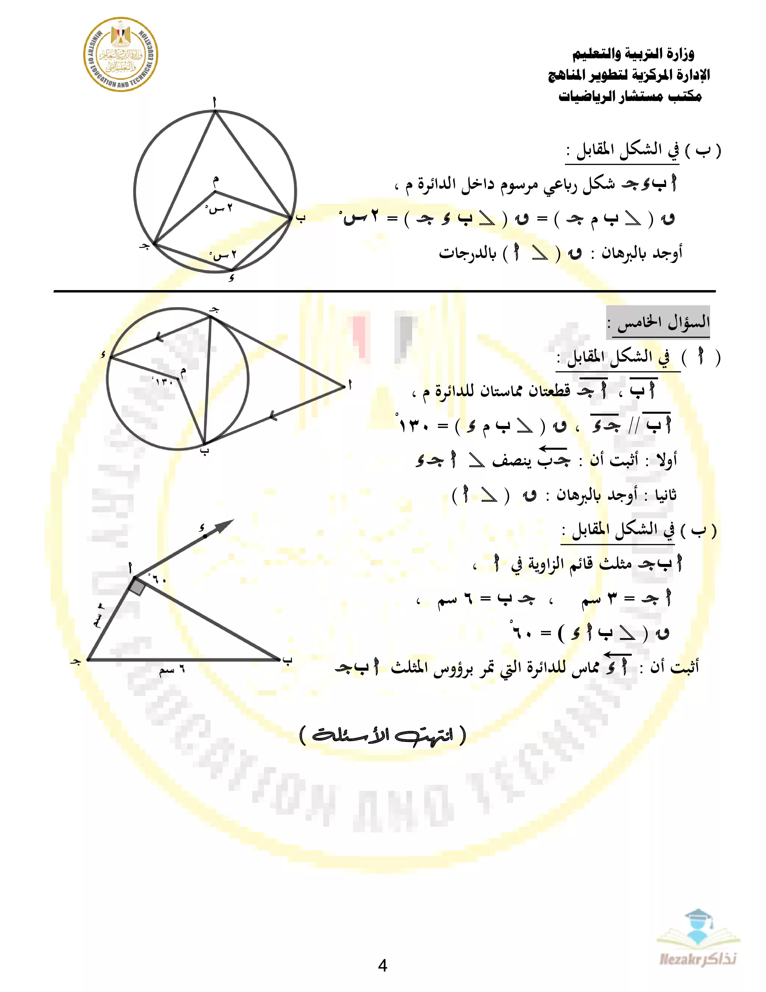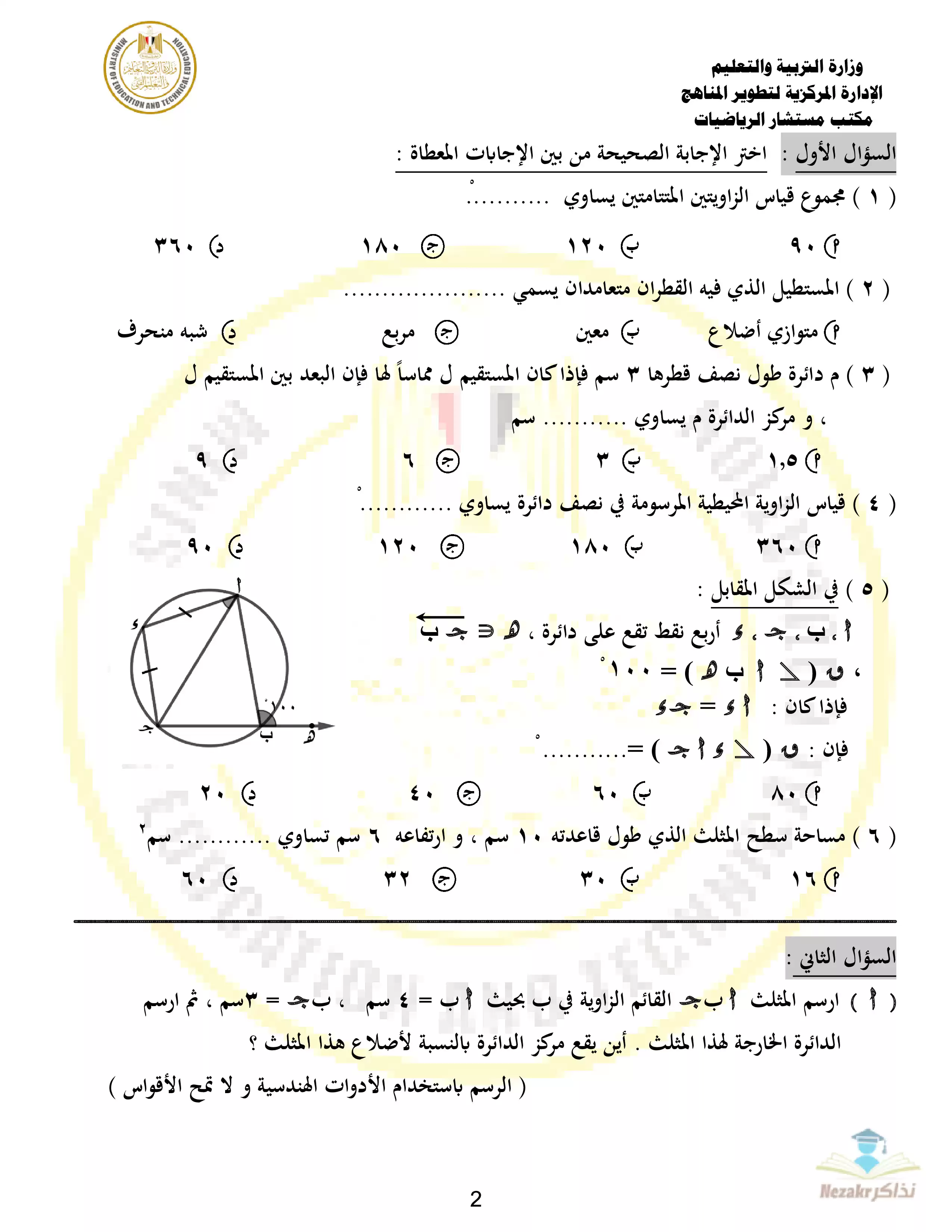 | بيانات الملف: (نموذج الوزارة الرسمي في الهندسة للصف الثالث الإعدادي الترم الثاني 2024 - نذاكر) | |