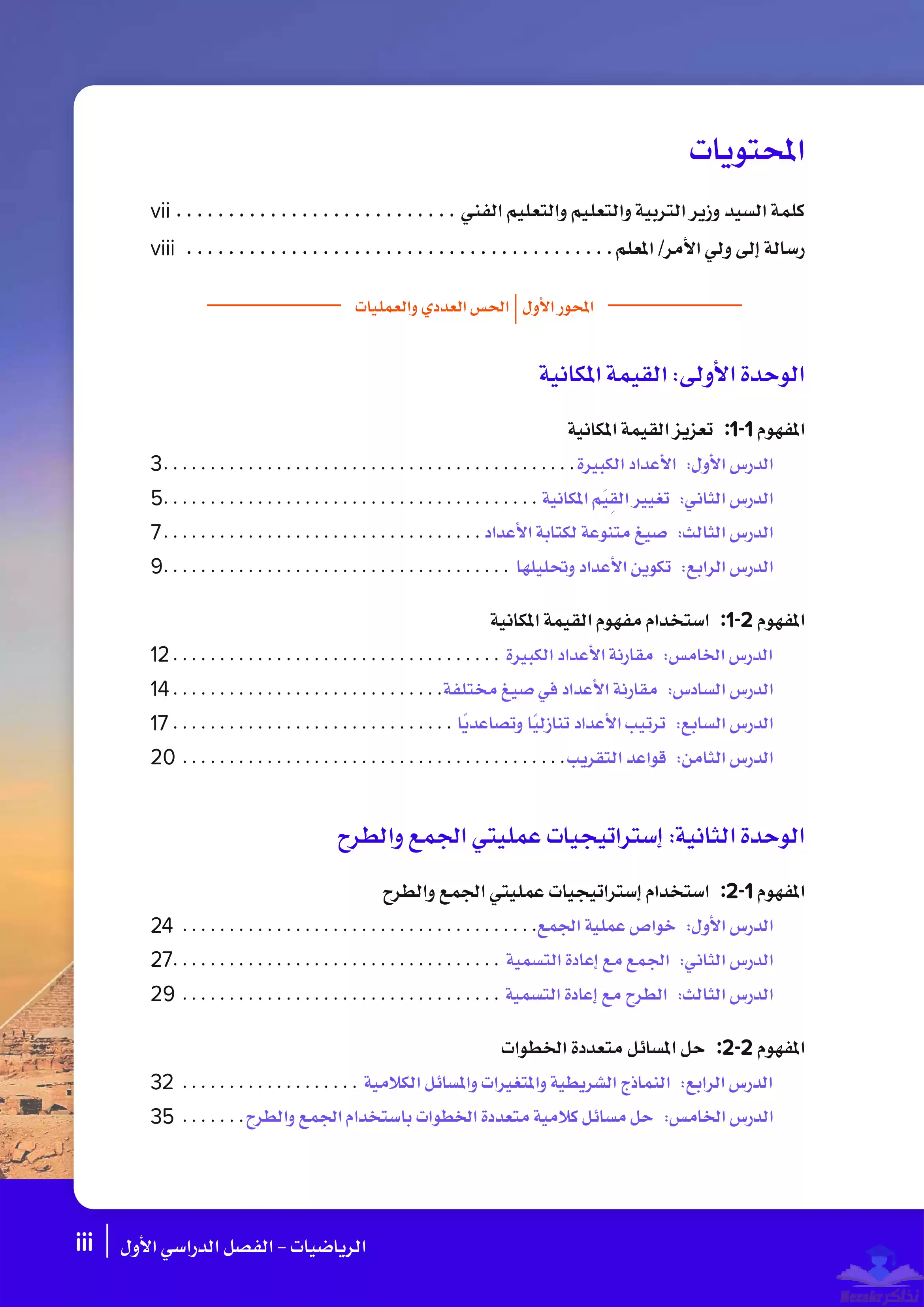 صفحة 3 من 136 صفحة من ملف: كتاب الوزارة فى مادة الرياضيات للصف الرابع الابتدائى الترم الاول