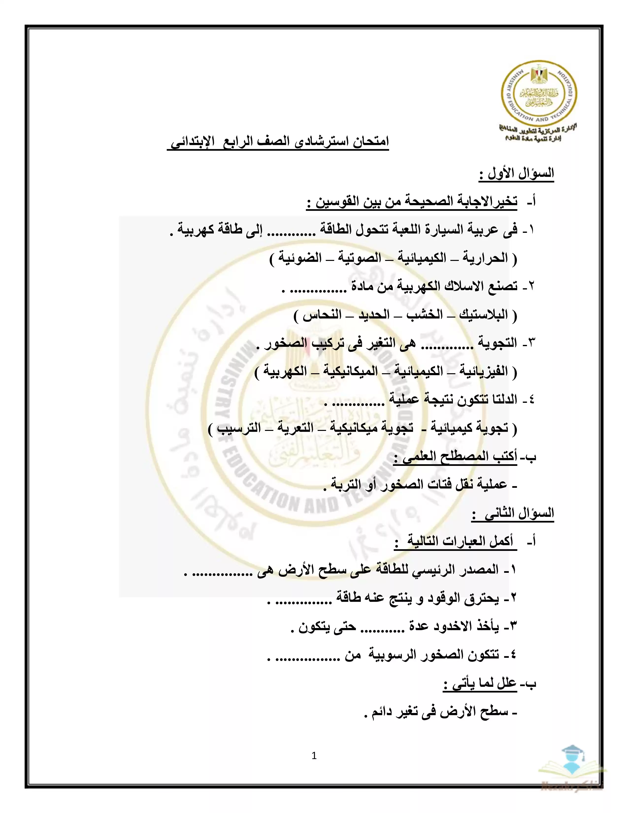 | بيانات الملف: (نموذج امتحان الوزارة الاسترشادي في مادة العلوم للصف الرابع الابتدائي الفصل الدراسي الثانى - Nezakr) | |