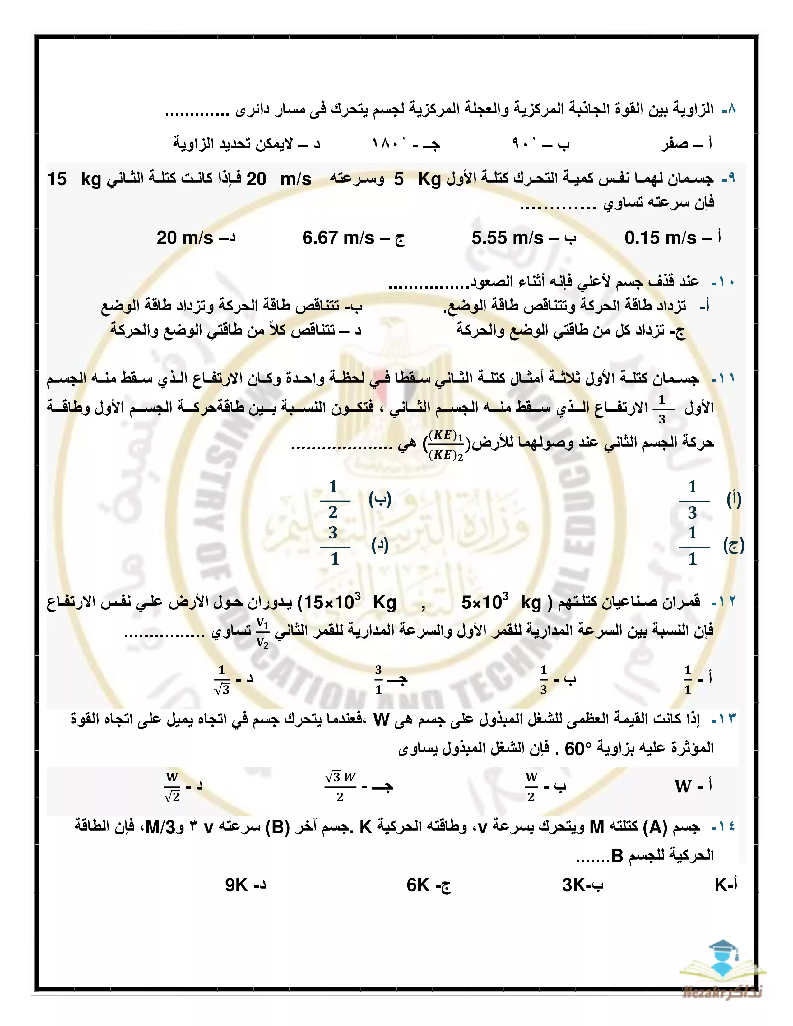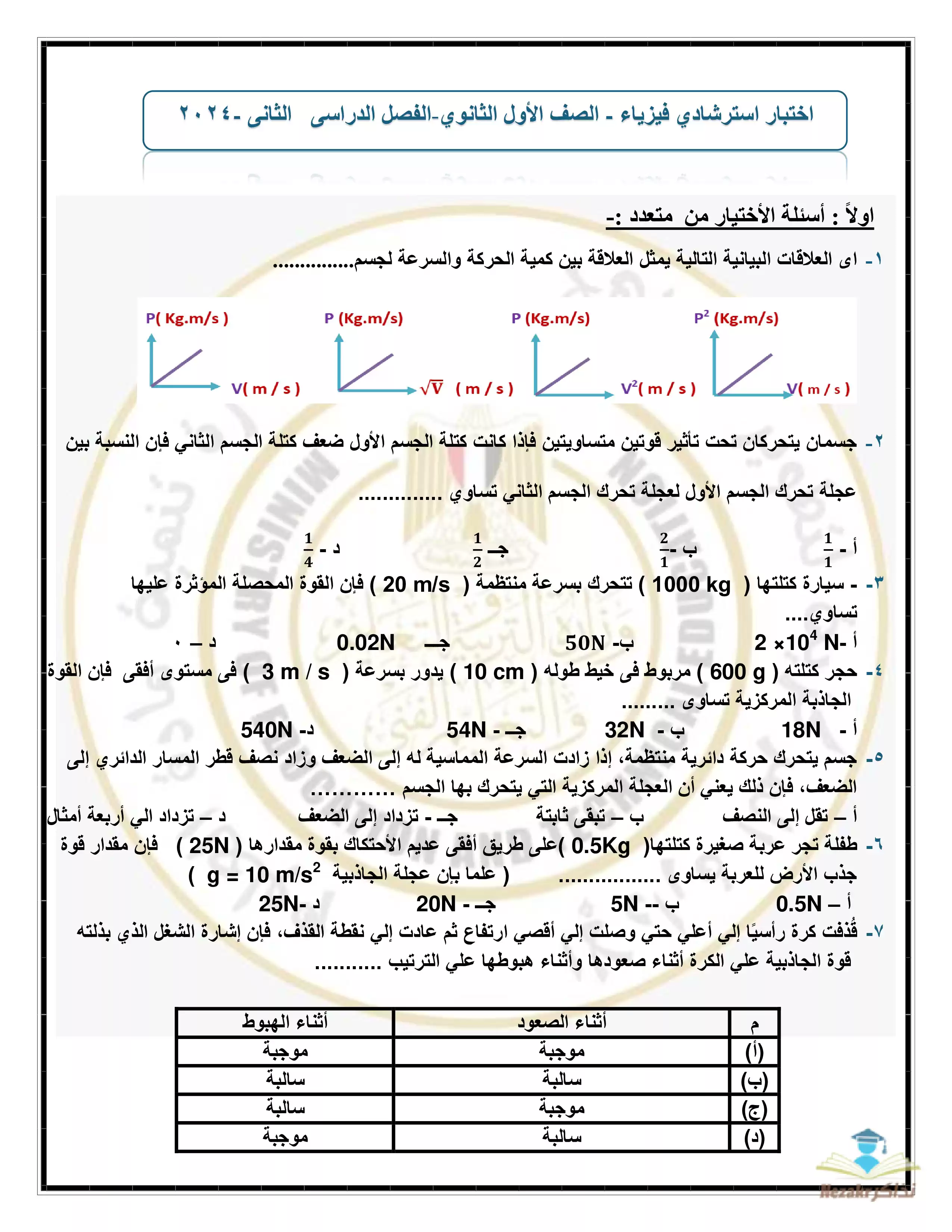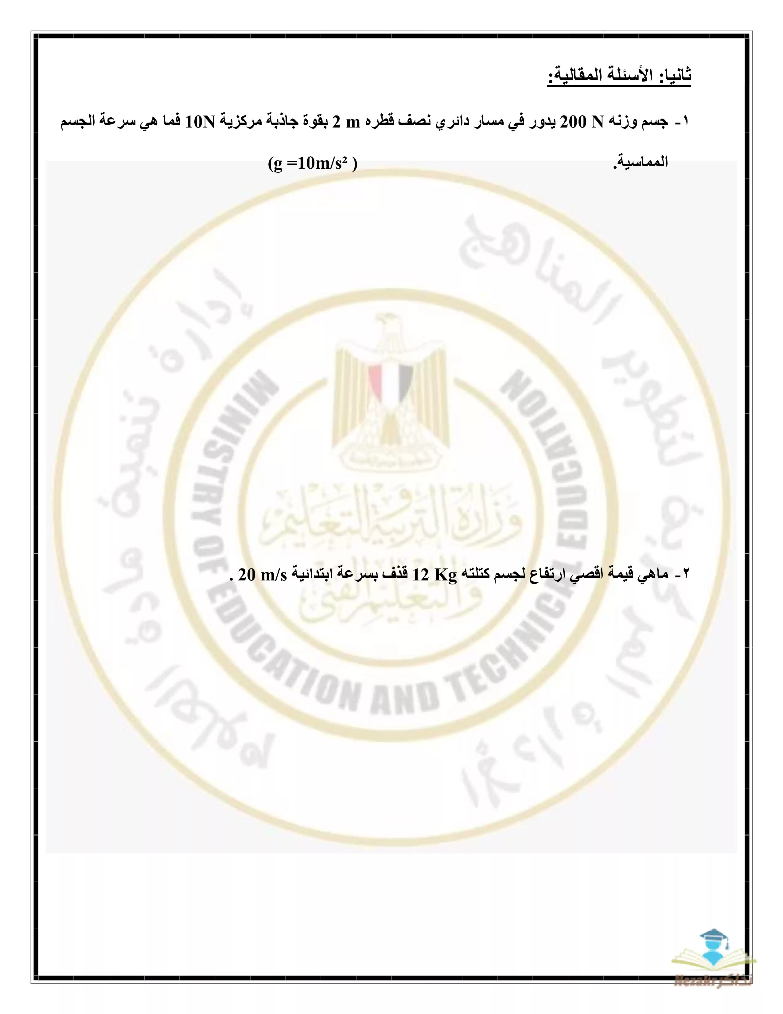 | بيانات الملف: (نموذج امتحان الوزارة الاسترشادي في مادة الفيزياء للصف الأول الثانوي الترم الثاني - Nezakr) | |