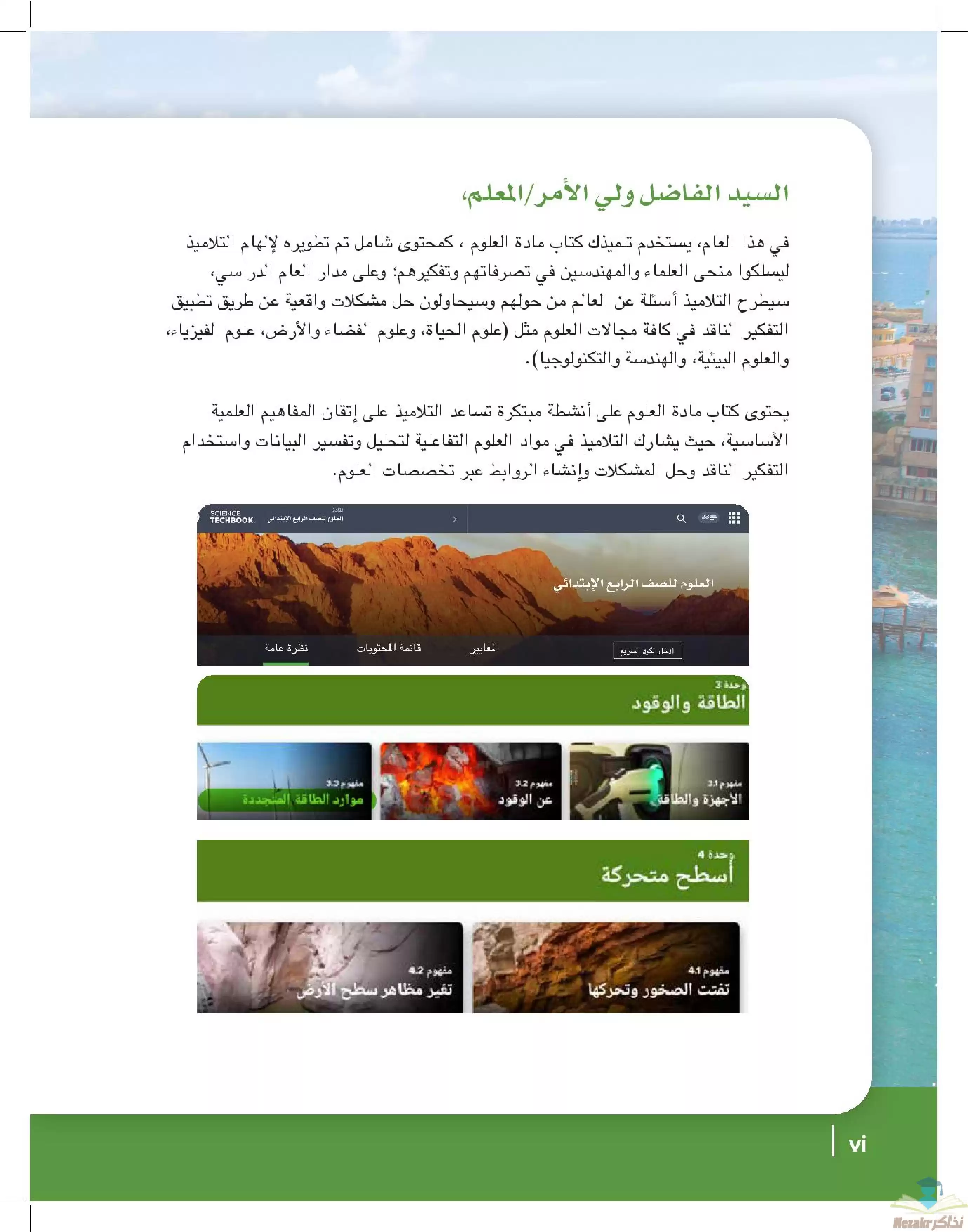 يحتوى الملف على كتاب الوزارة فى مادة العلوم للصف الرابع الابتدائي الفصل الدراسي الثاني لتتمكن من تشغيله على الموبايل أو من خلال جهاز الكمبيوتر أو عبر جهاز اللابتوب لسهولة الوصول الى الكتاب والمذاكرة عليه.