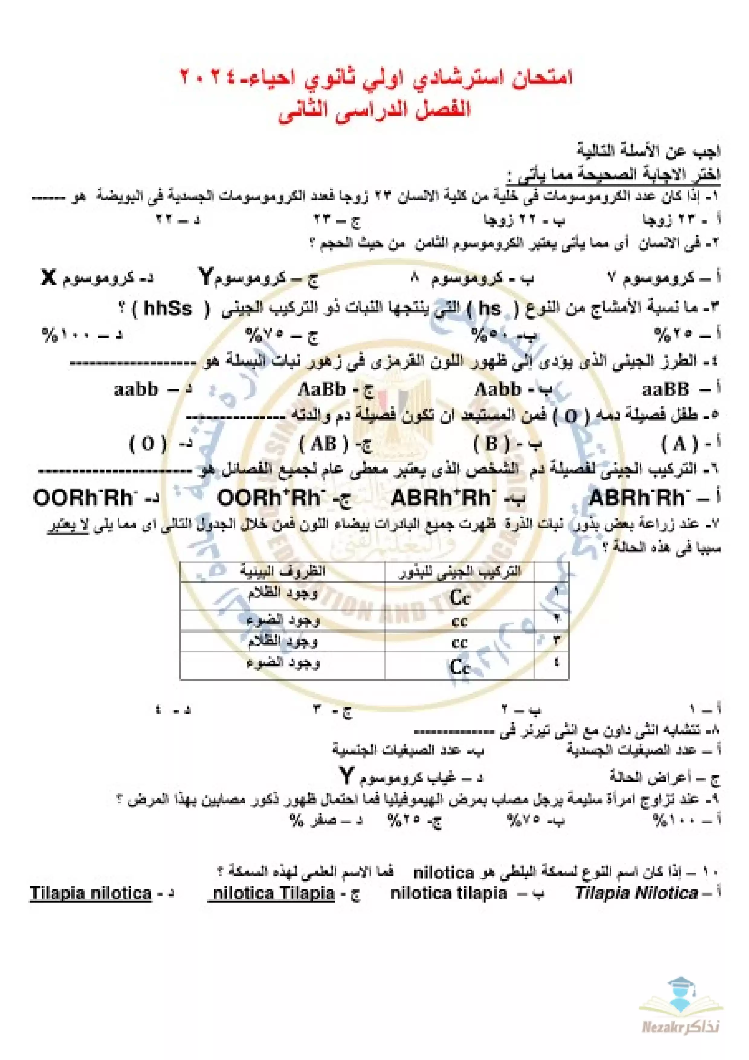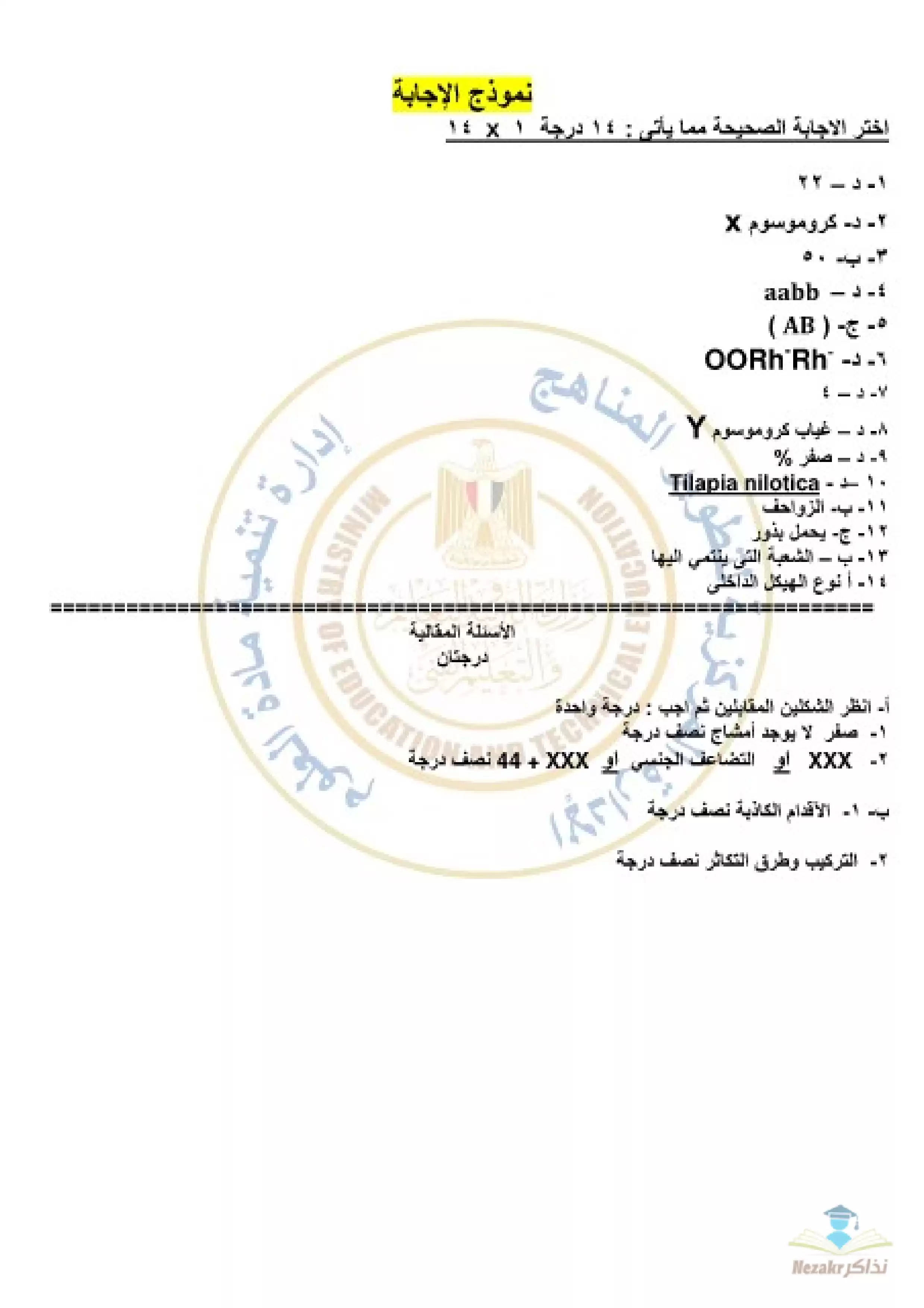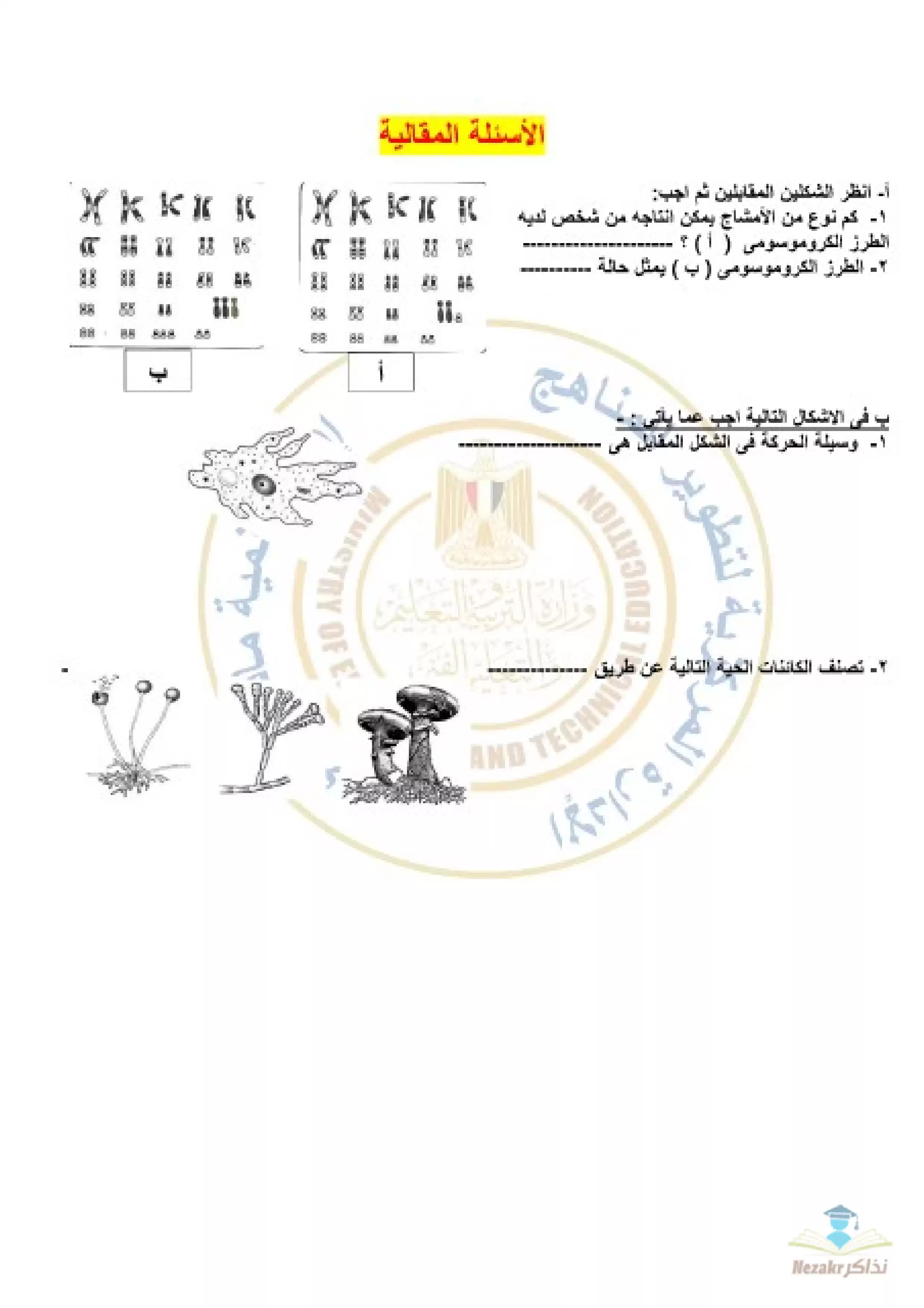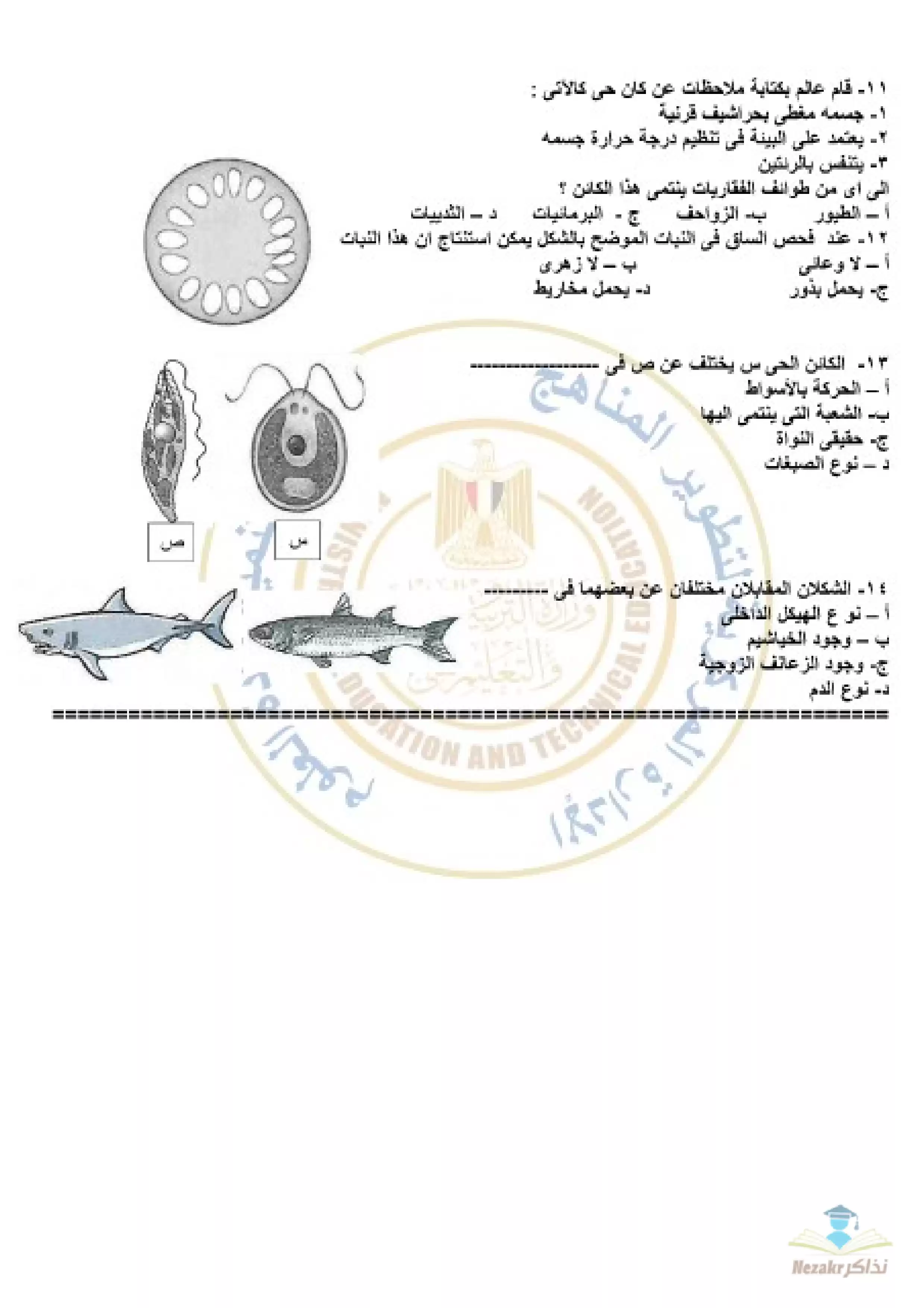 بيانات الملف: (نموذج امتحان الوزارة الاسترشادي في مادة الأحياء للصف الأول الثانوي الترم الثاني - Nezakr)