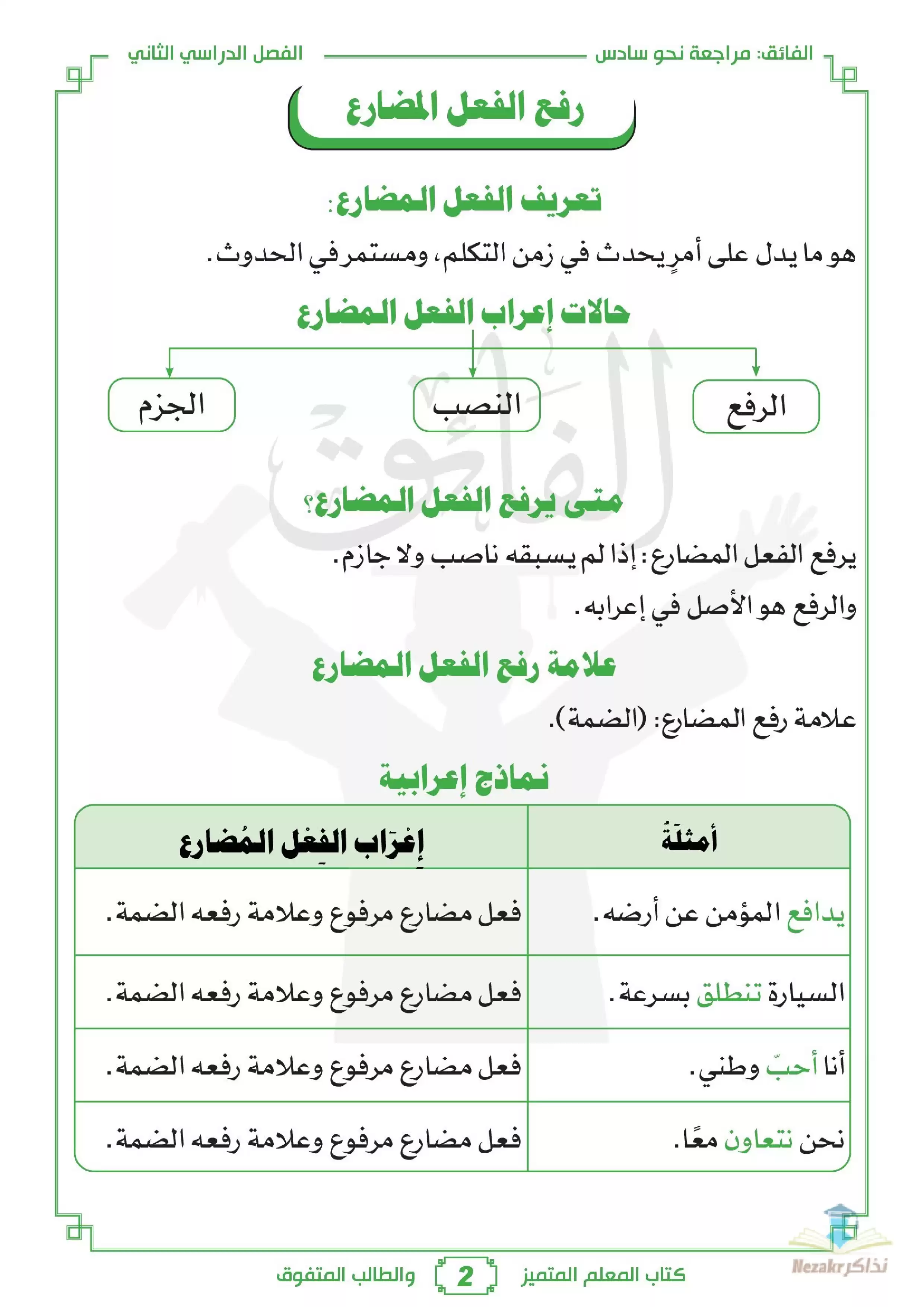 صفحة 2 من 18 صفحة من ملف: مذكرة شرح وتدريبات النحو من الفائق للصف السادس الابتدائي الترم الثاني