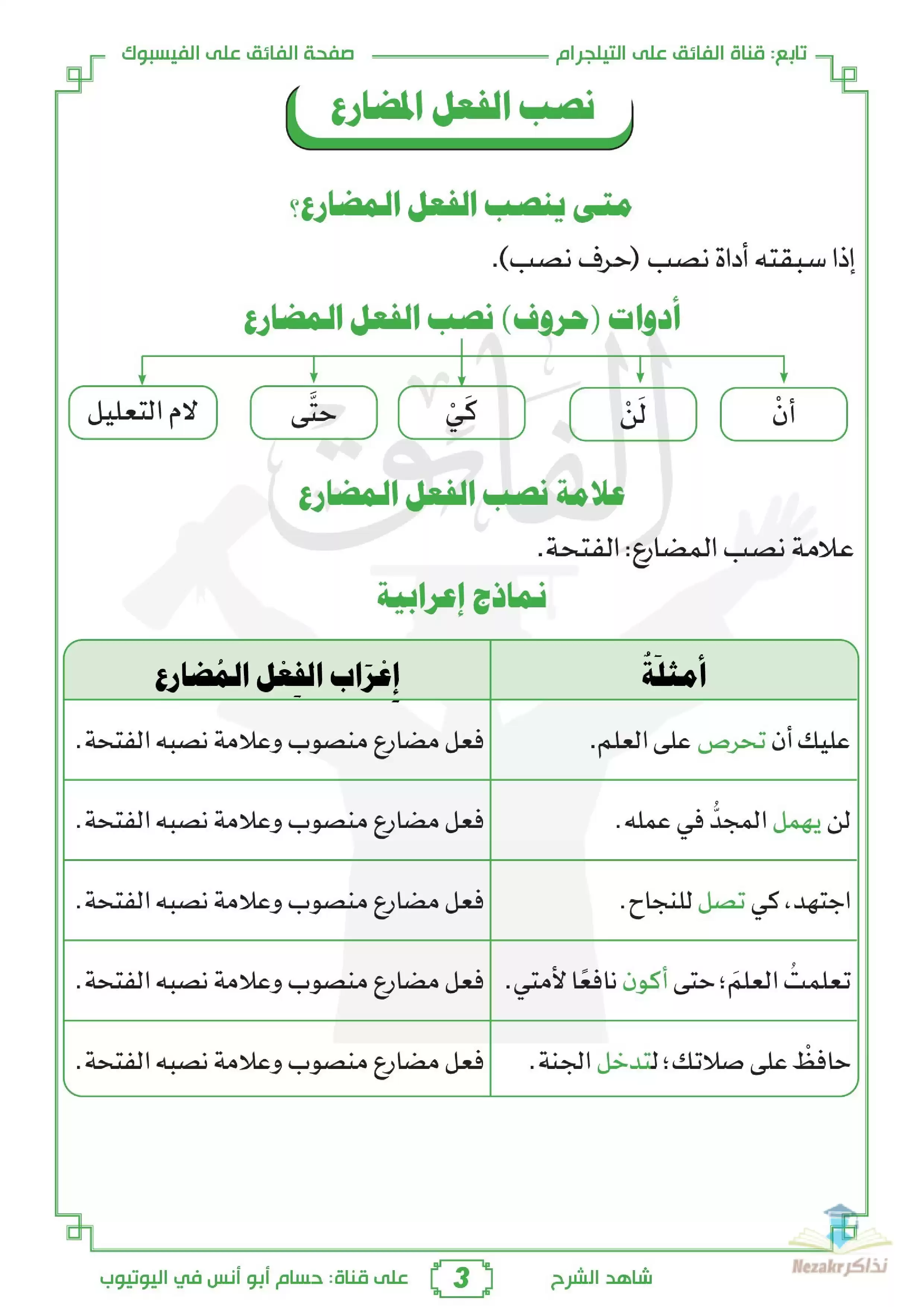 • علامة نصب الفعل المضارع.