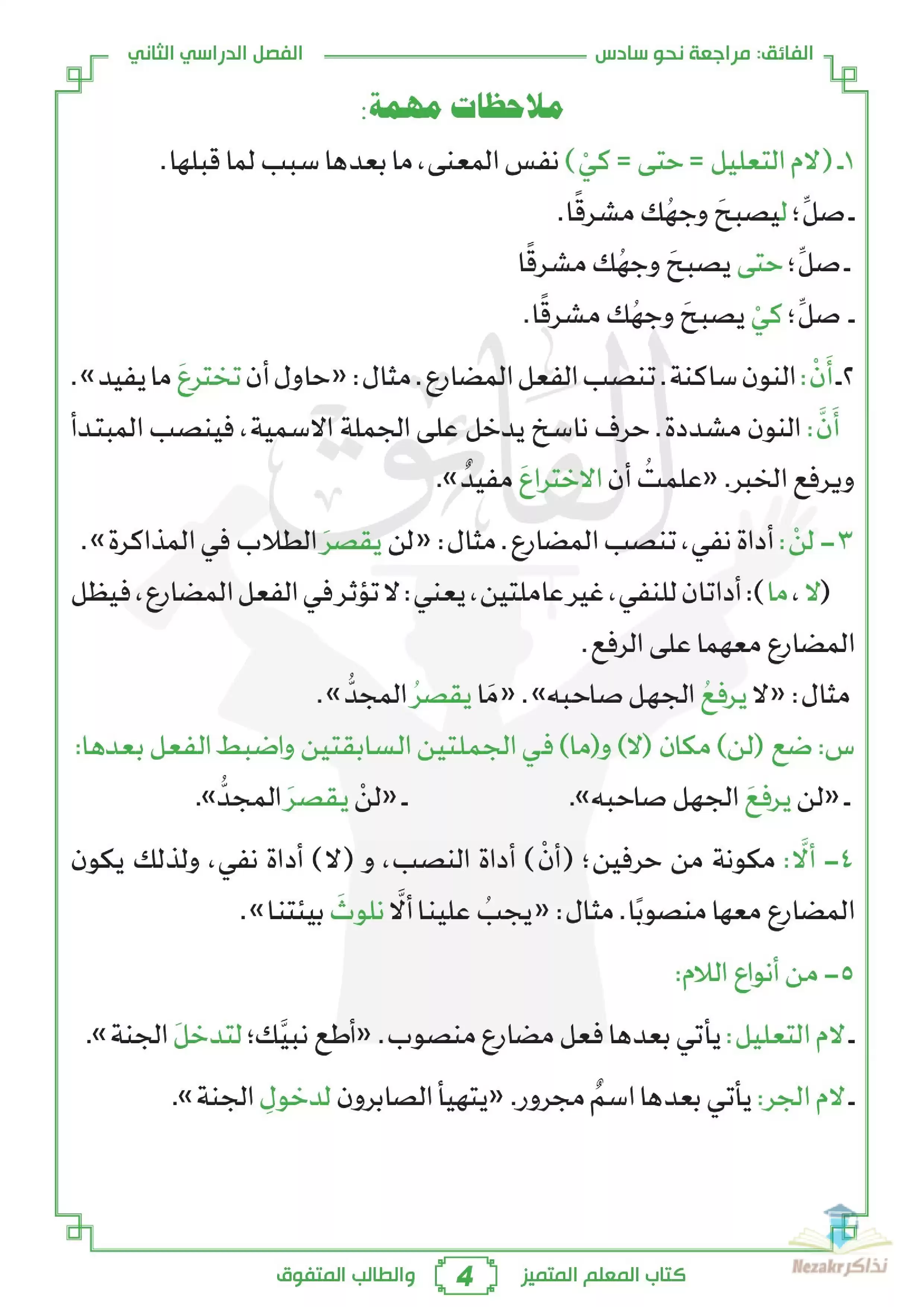 صفحة 4 من 18 صفحة من ملف: مذكرة شرح وتدريبات النحو من الفائق للصف السادس الابتدائي الترم الثاني