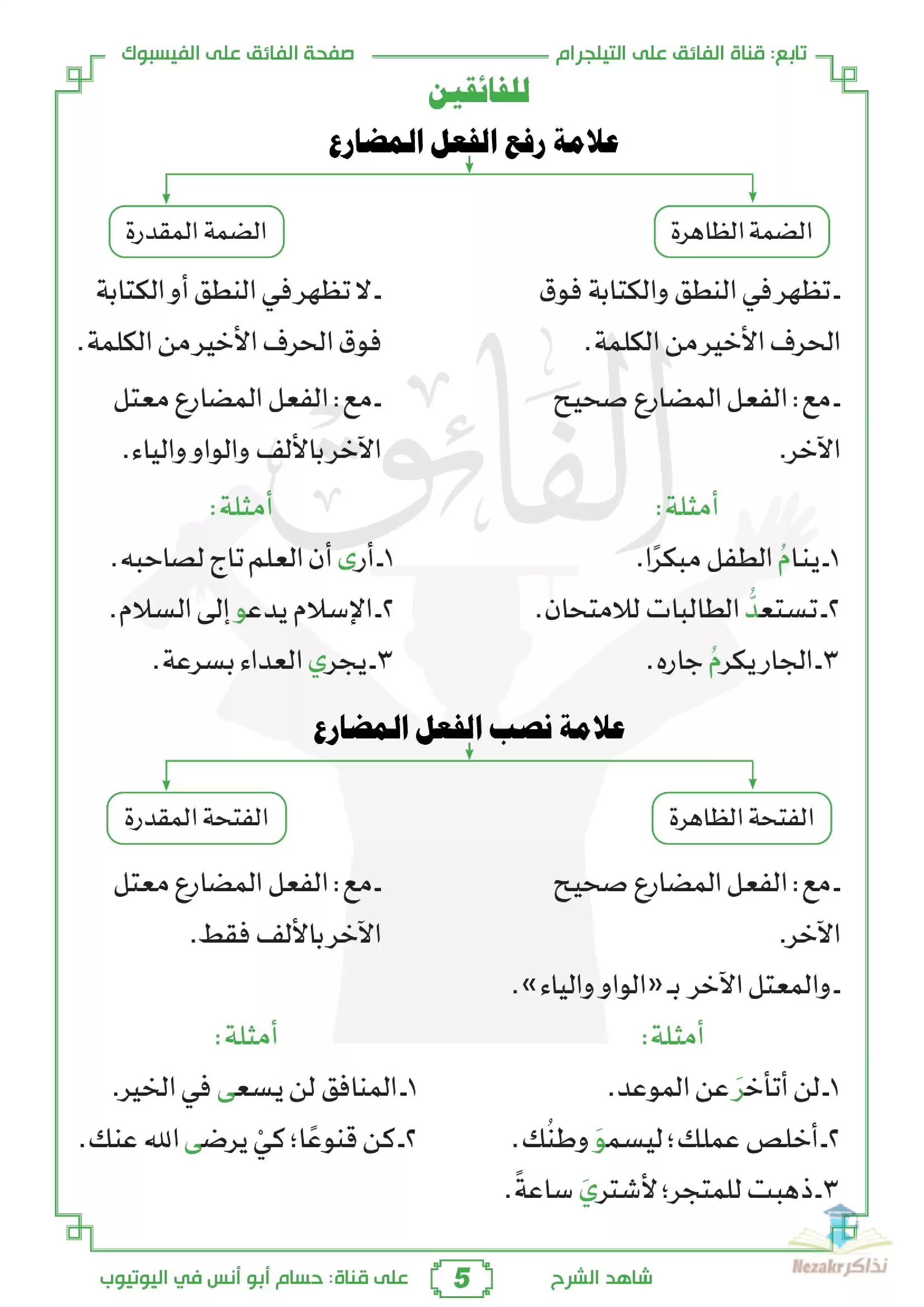 • علامات إعراب الأفعال الخمسة.