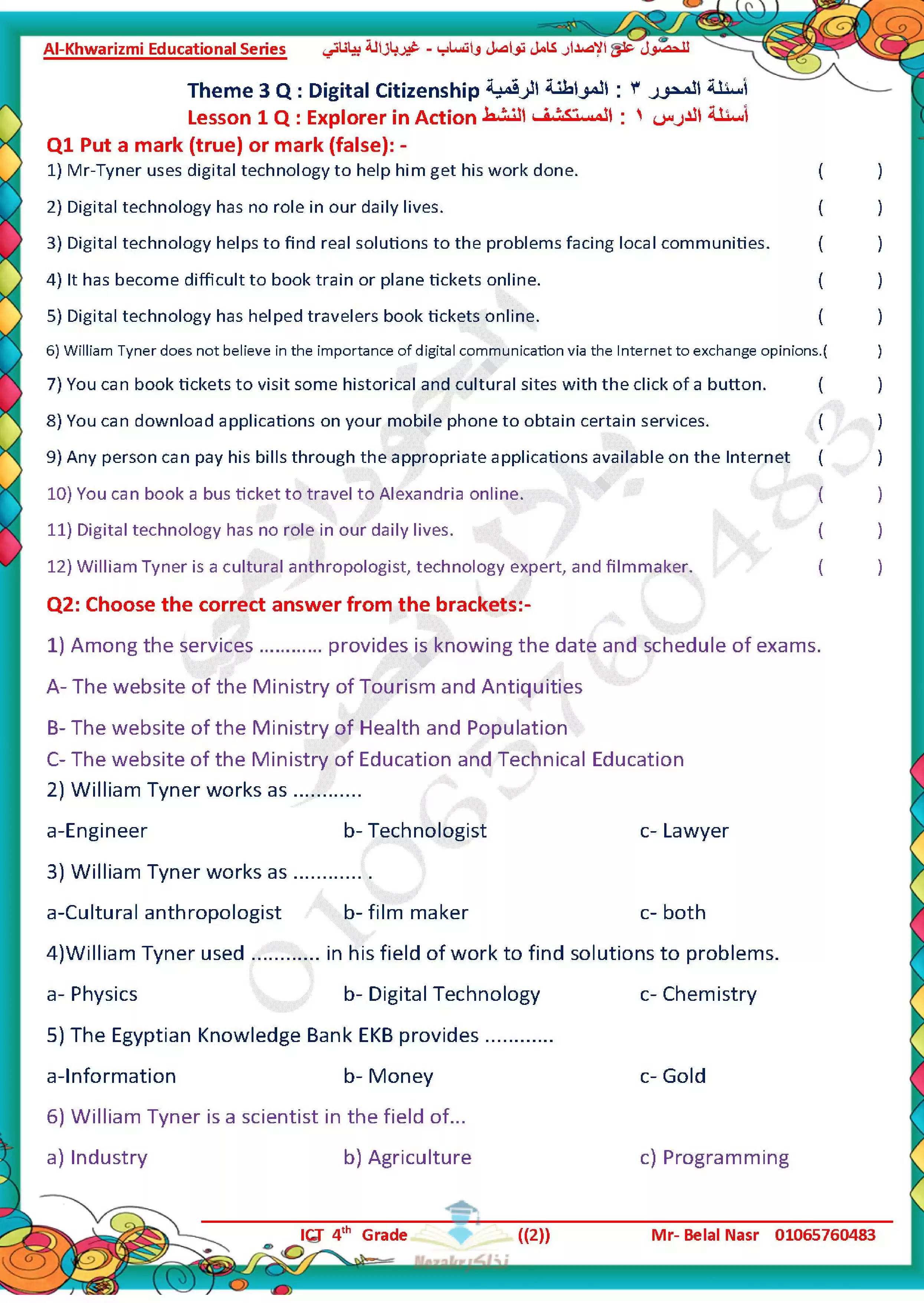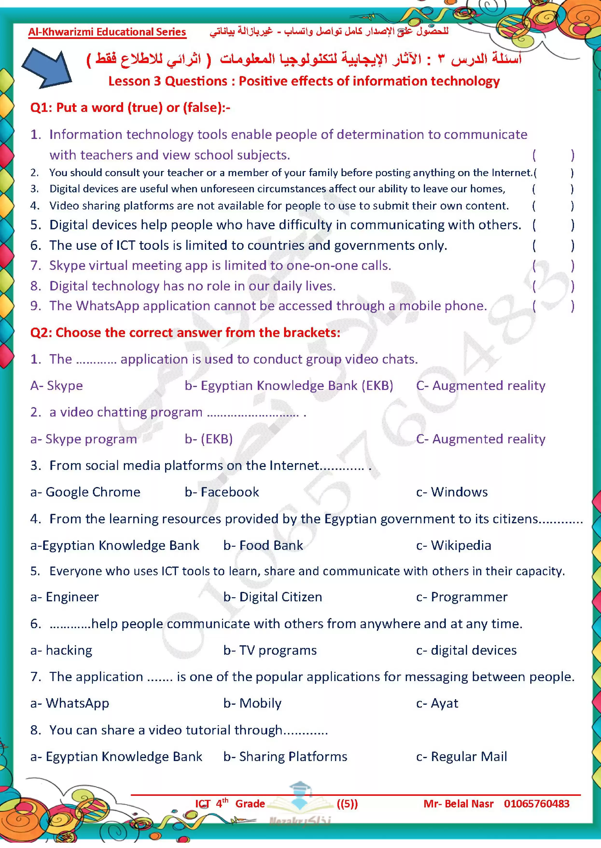 يحتوى الملف المرفق في المقال على ملف مراجعة الخوارزمي في تكنولوجيا المعلومات والاتصالات للغات ICTللصف الرابع الابتدائي الفصل الدراسي الثاني, وذلك لتتمكن من تشغيله على جهاز الموبايل أو من خلال جهاز الكمبيوتر أو عبر اللابتوب أو التابلت لضمان سهولة الوصول الى الملف والمذاكرة عليه وقراءة محتوياته.