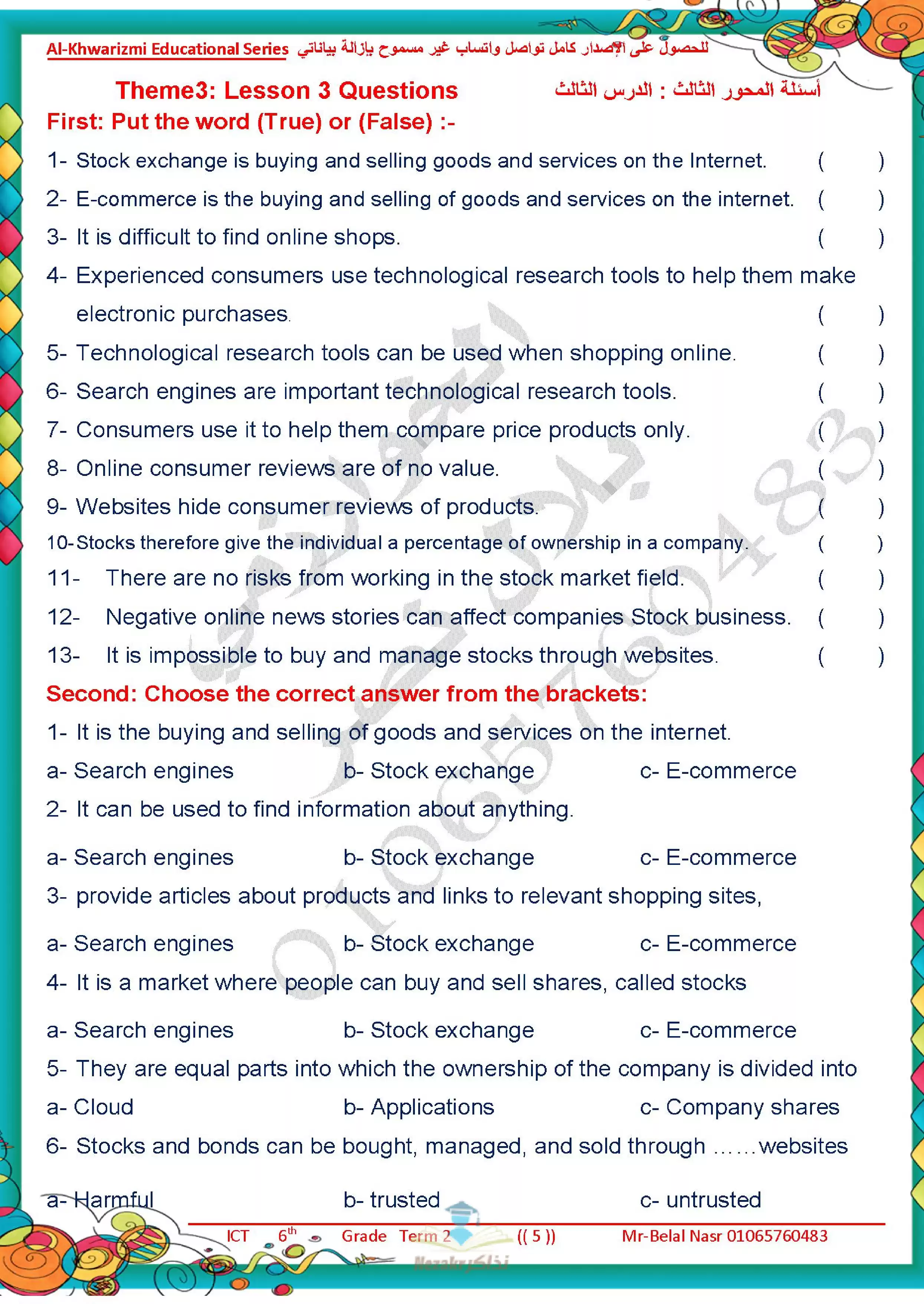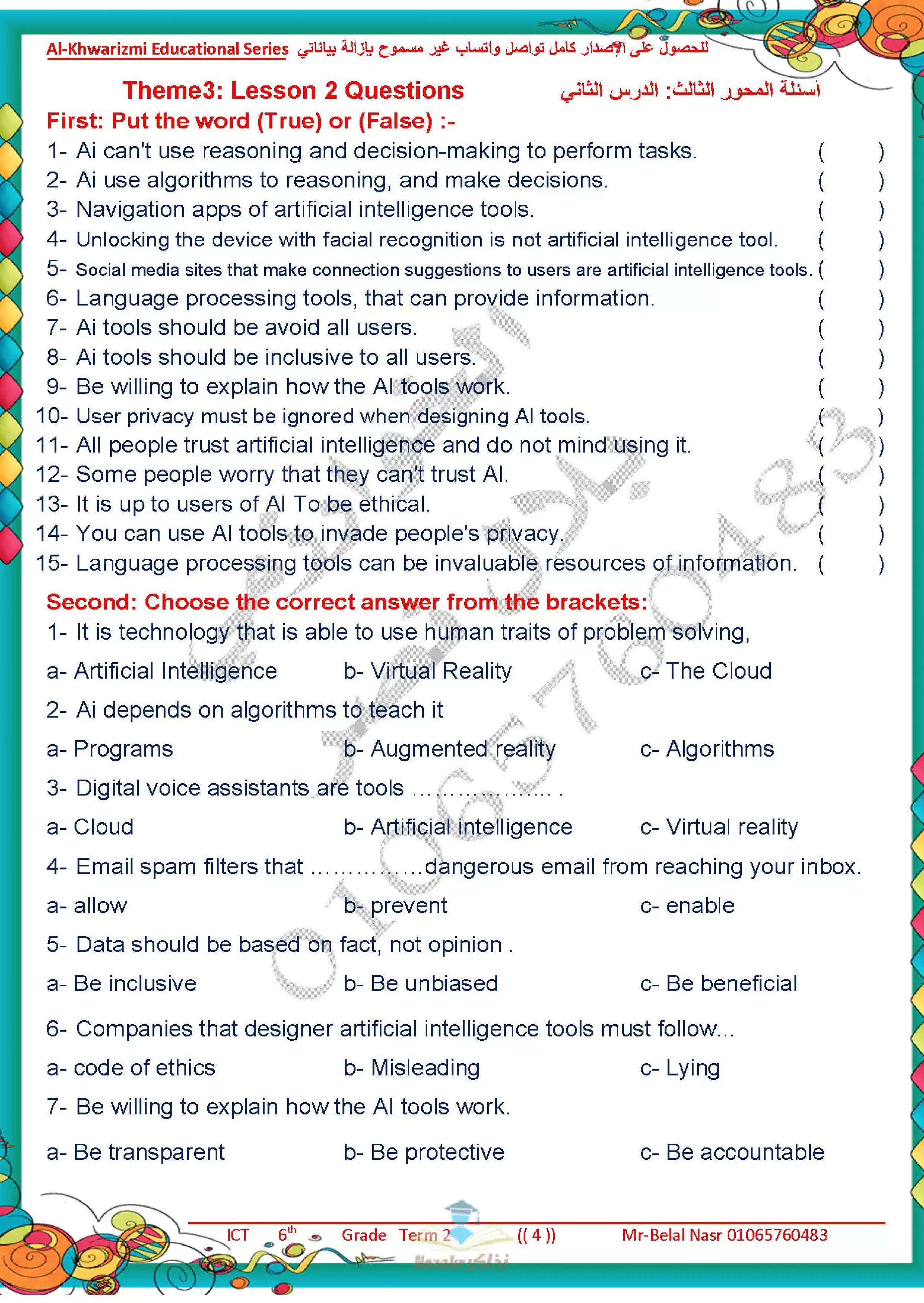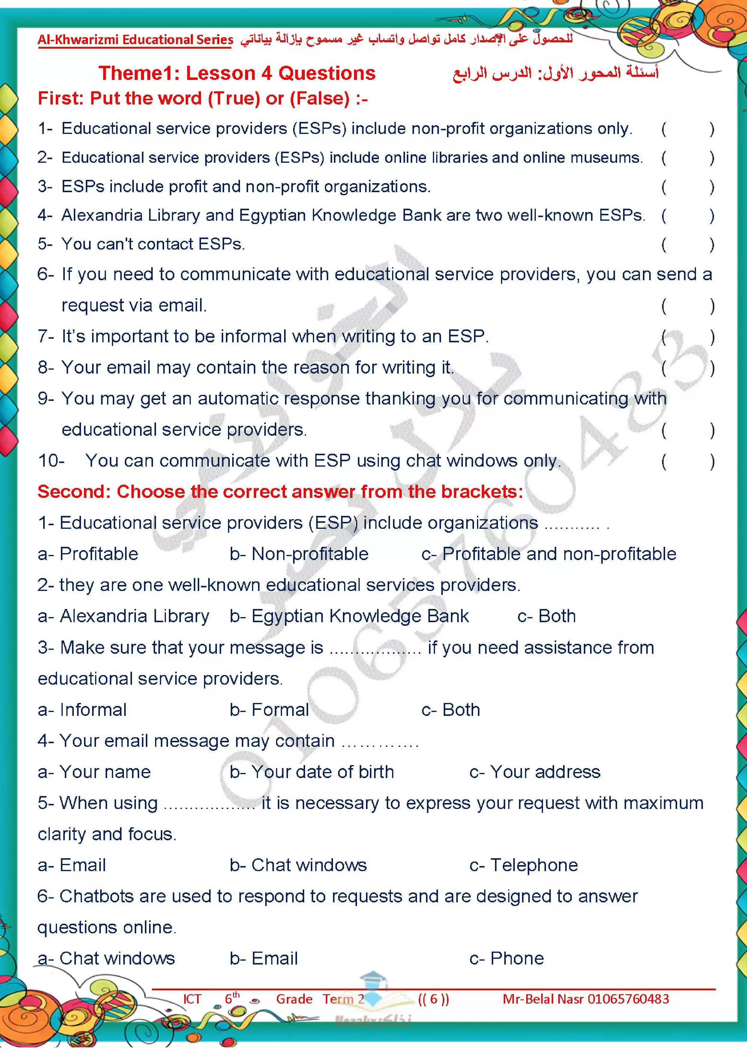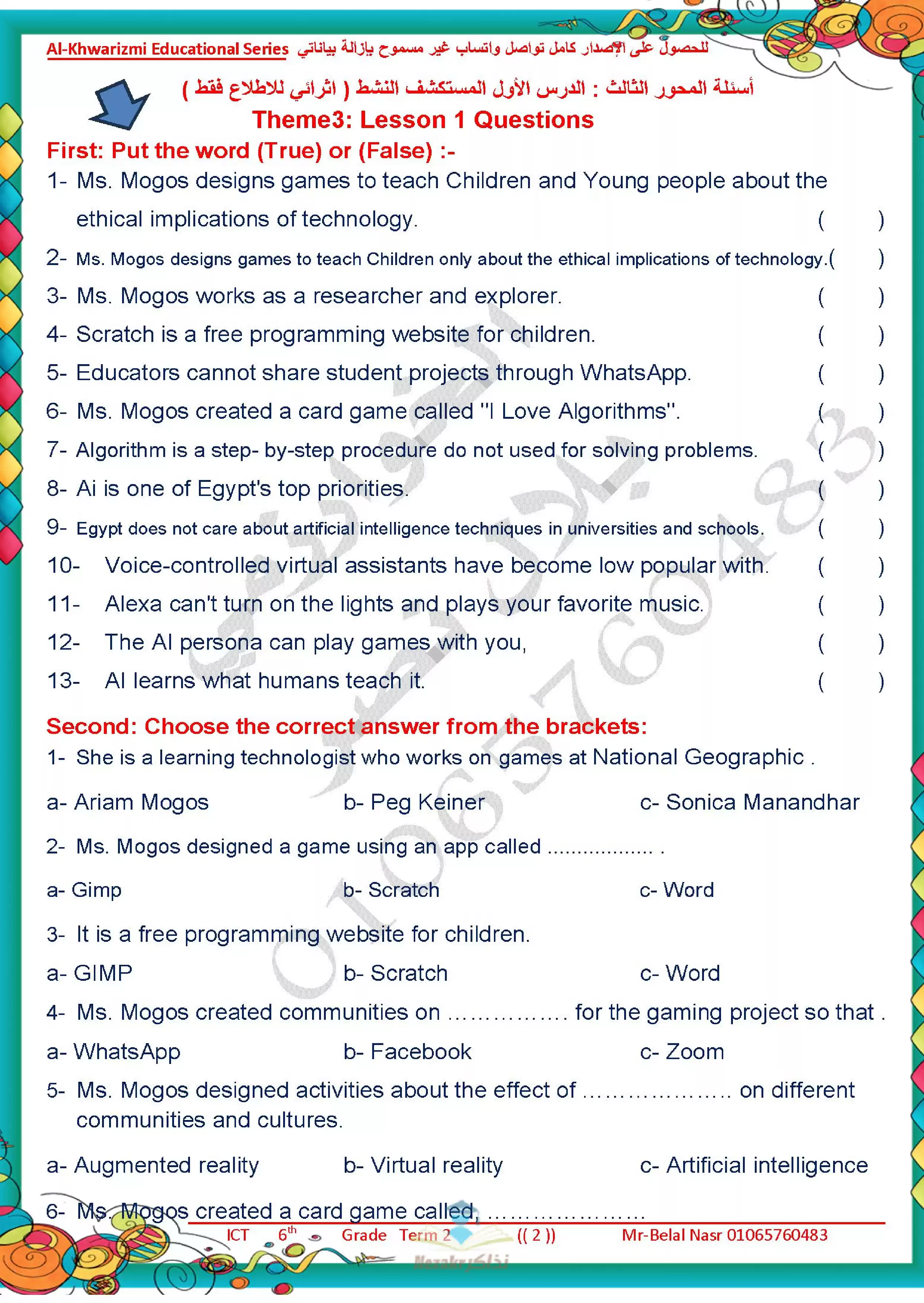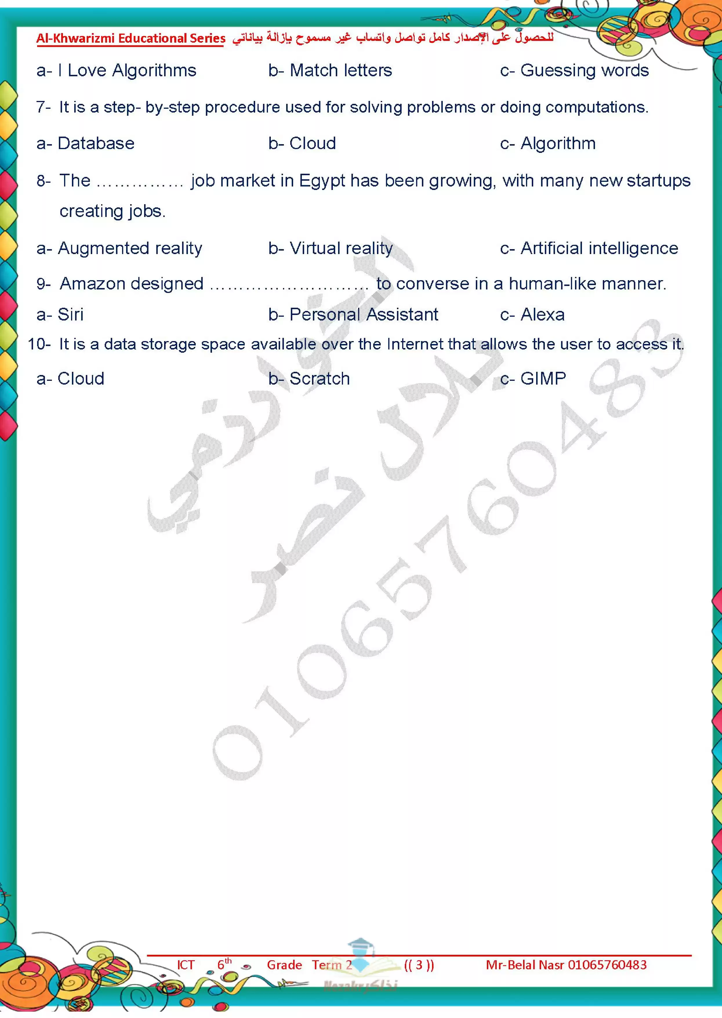 | بيانات الملف: (مراجعة آخر العام في تكنولوجيا المعلومات للغات ICT للصف السادس الابتدائي من سلسلة الخوارزمي - Nezakr) | |